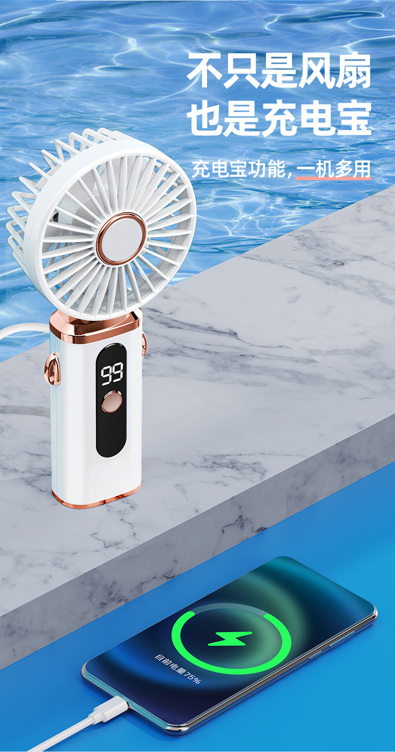 志高手持小风扇便携式随身小型迷你充电款办公室桌上折叠挂脖手拿电动小电扇辅食usb消音桌面学生宿舍电风扇