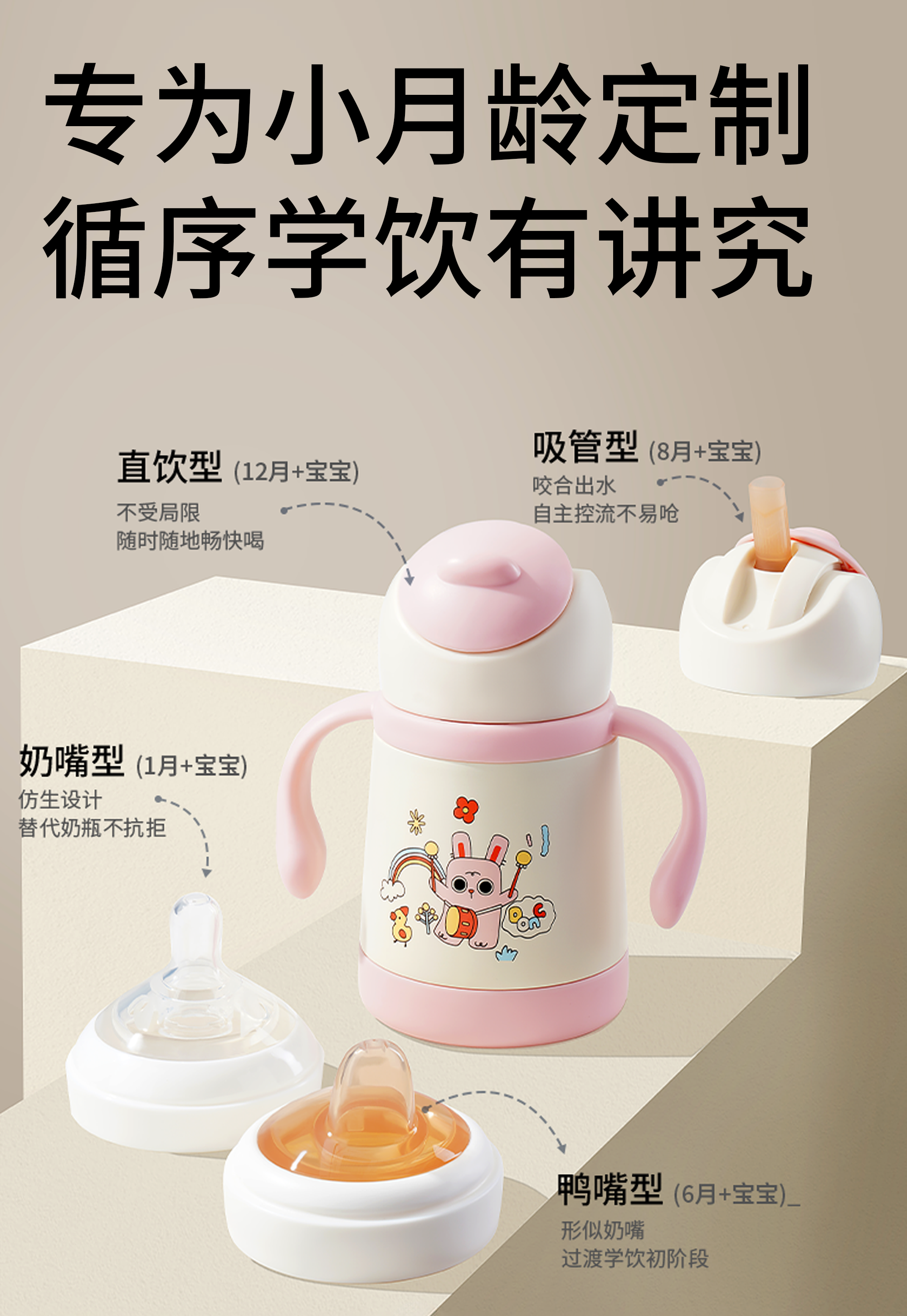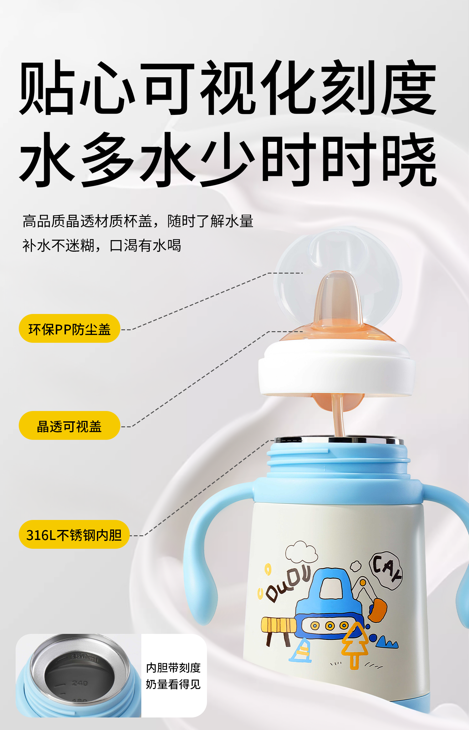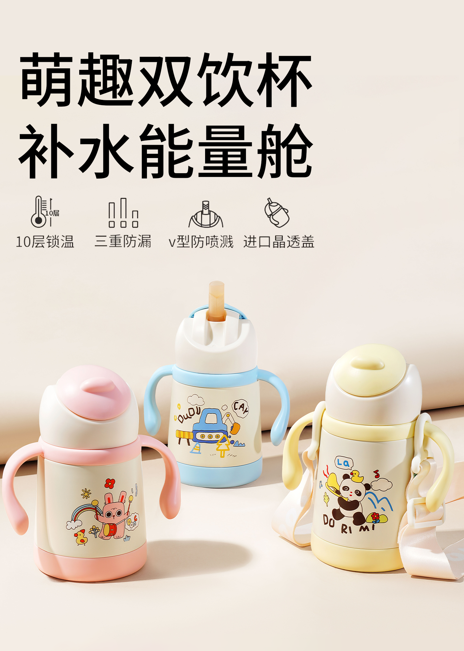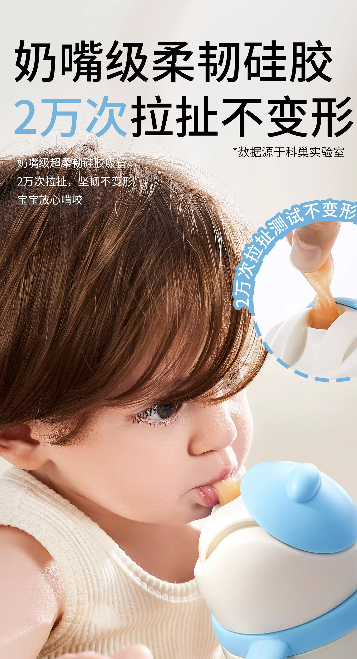 科巢儿童保温杯带吸管两用宝宝鸭嘴杯婴幼儿学饮杯奶瓶喝水杯子壶