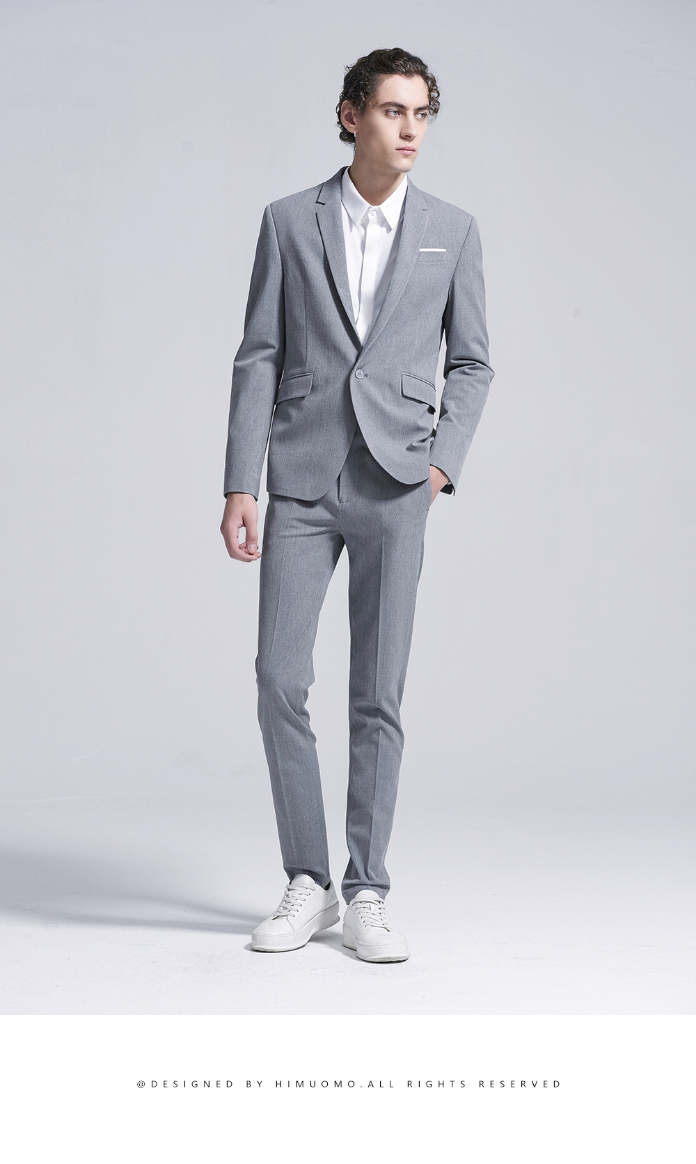 HIM汉崇 套装西装 男士修身高级感时尚商务正装宴会婚礼斯文西服