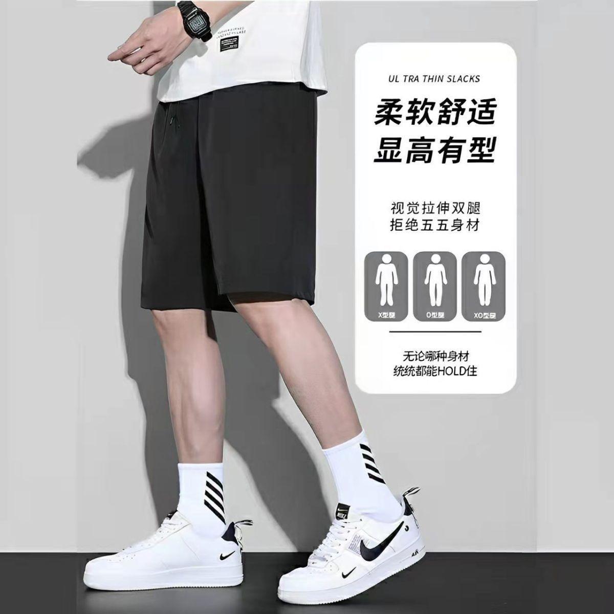 冰丝短裤男夏季透气五分裤百搭潮牌宽松大码男生运动休闲沙滩裤子