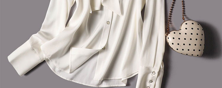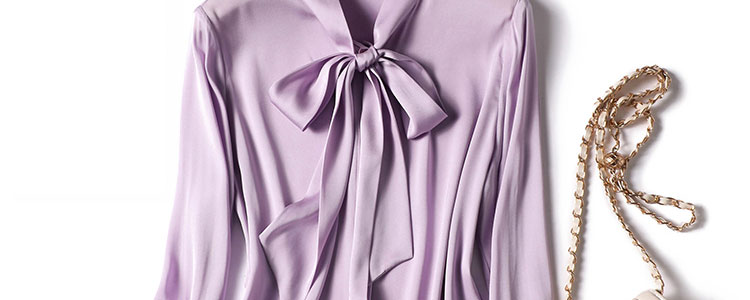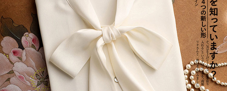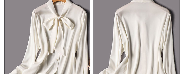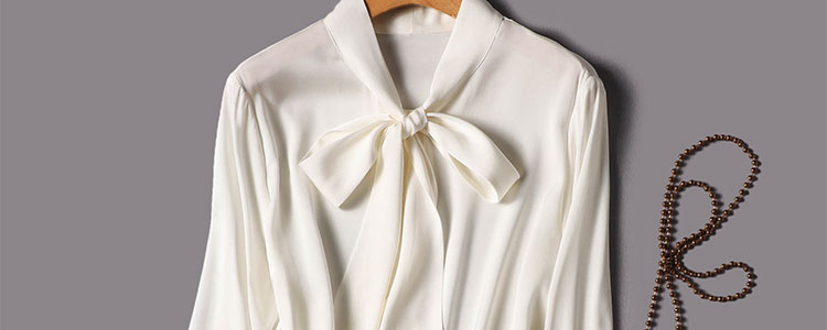 桑蚕丝真丝衬衫女法式高级设计感长袖气质上衣法式蝴蝶结飘带衬衣