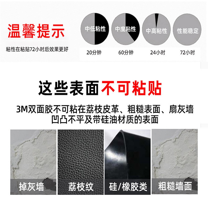 3M强力双面胶家用加厚泡沫海绵无痕固定胶粘墙面瓷砖贴片泡棉胶带