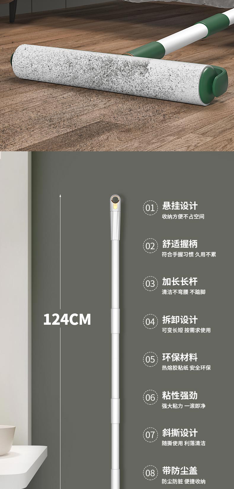 粘毛器滚筒长杆吸头发神器床上强力清理滚刷卷纸替换可撕式粘毛纸