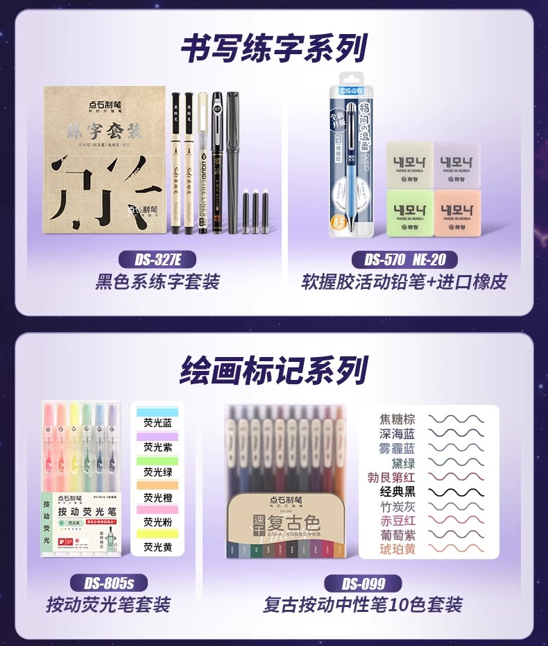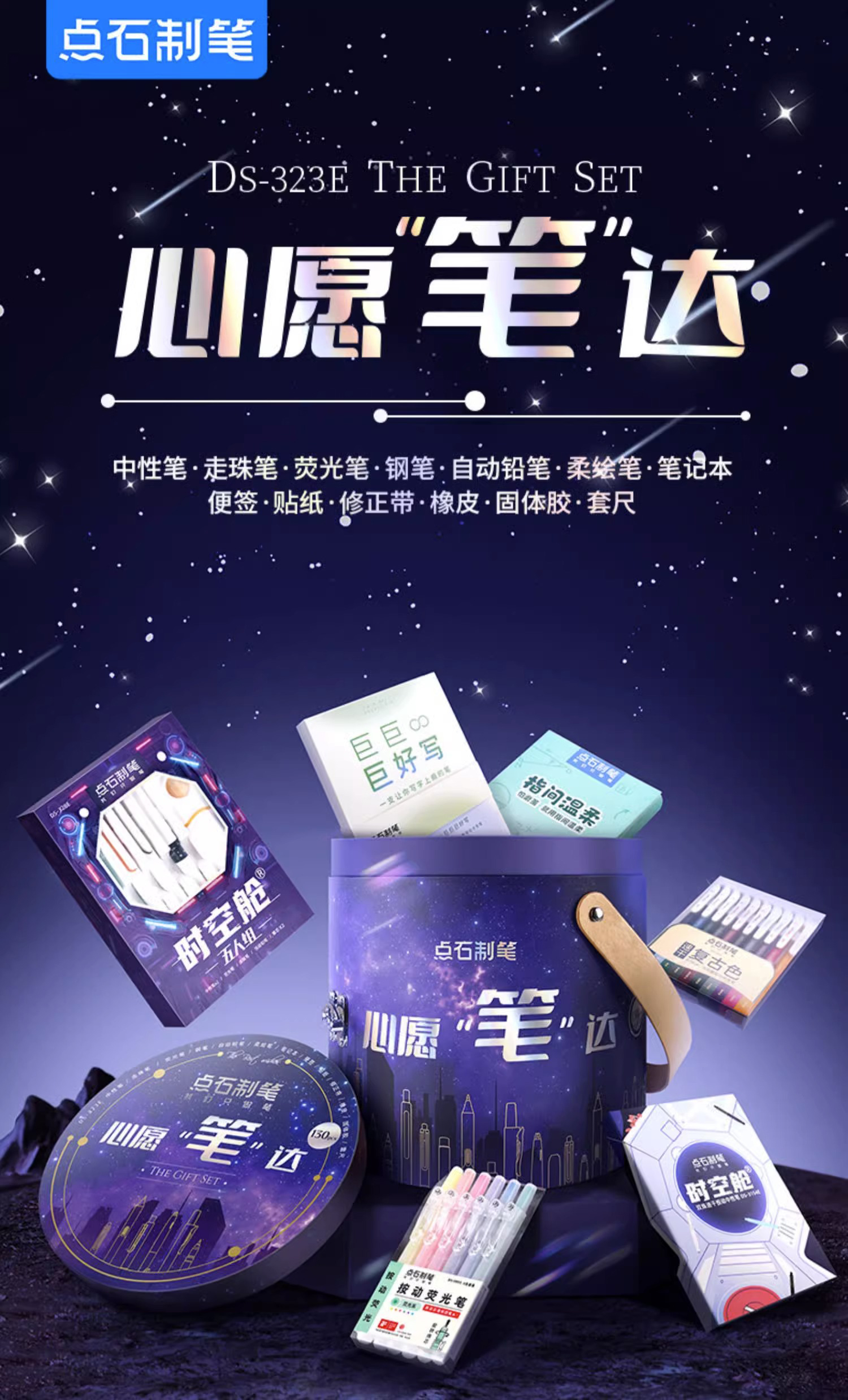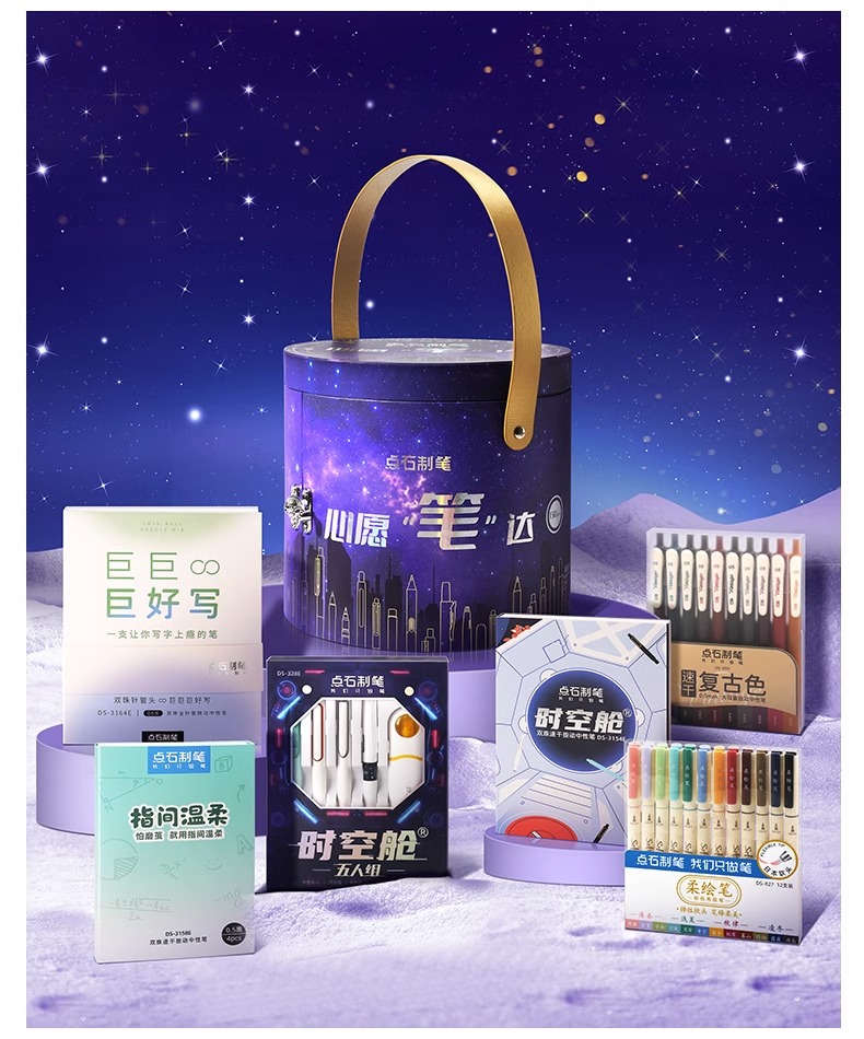 点石笔时空舱心愿礼盒中性笔节日送礼文具套装荧光笔马克笔柔绘笔软头笔复古色手账笔绘画笔学生太空舱笔323E