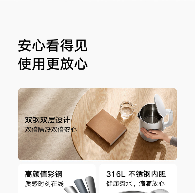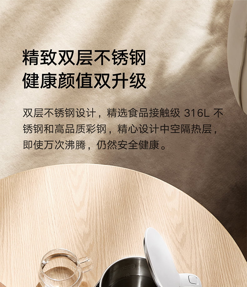 小米官旗米家电热水壶S1家用双钢烧水壶1.7L大容量316L不锈钢
