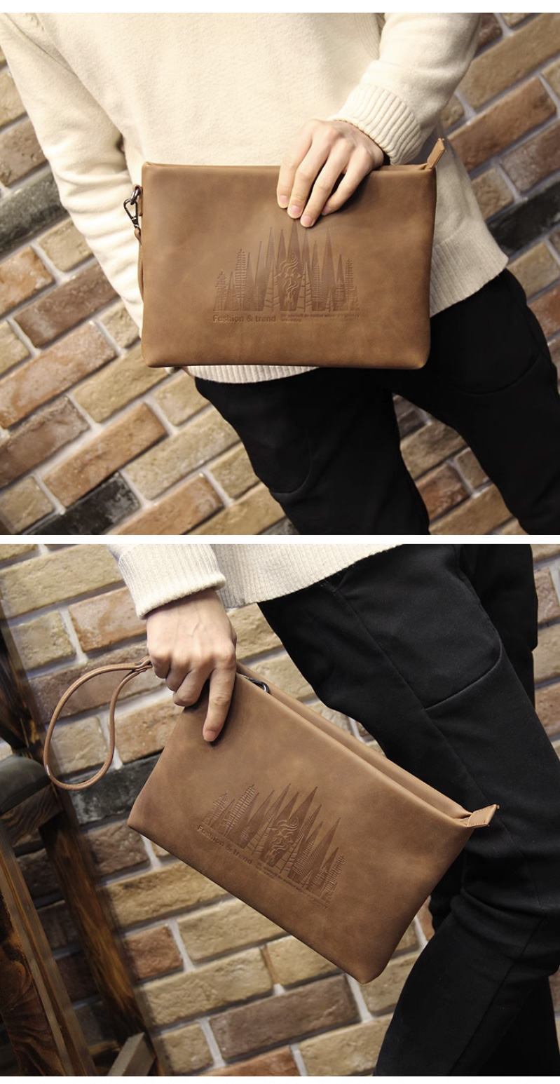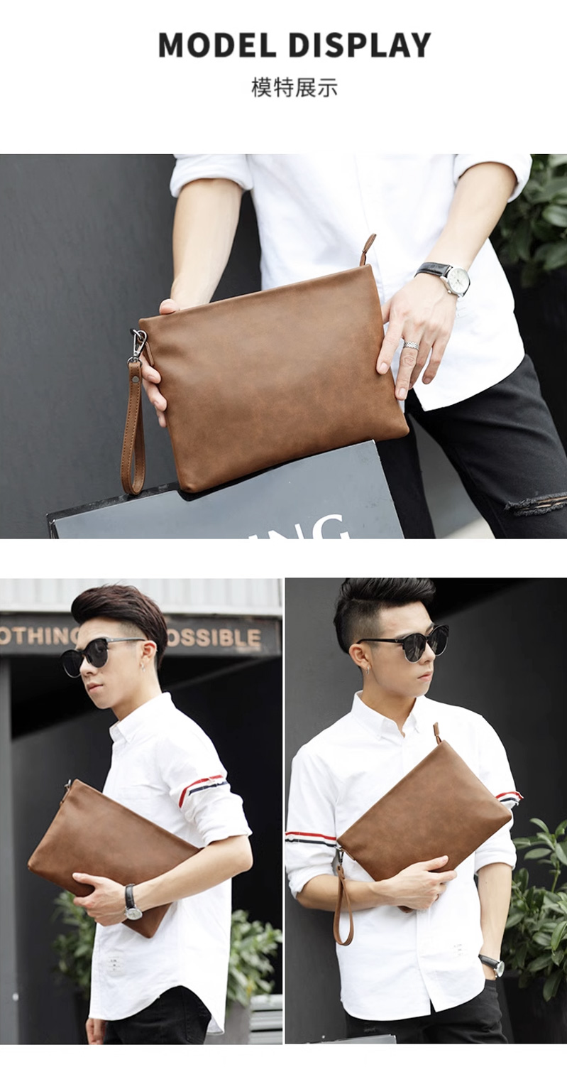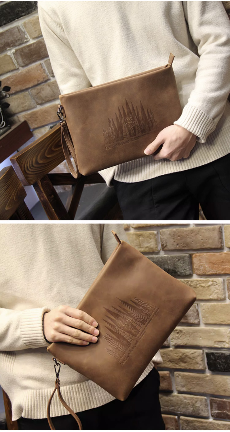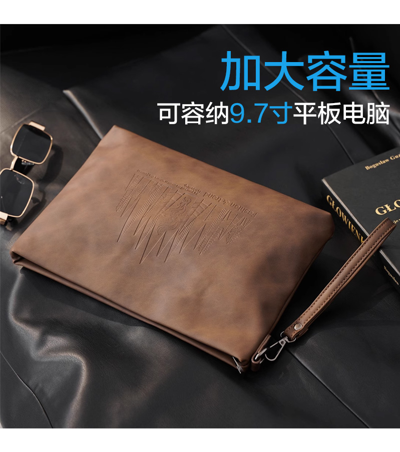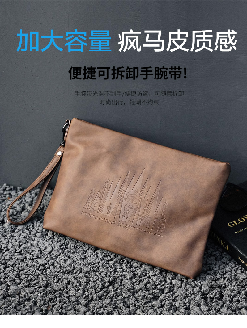仕图驰手包男信封包高档男士疯马皮手拿包10寸大容量商务男包包
