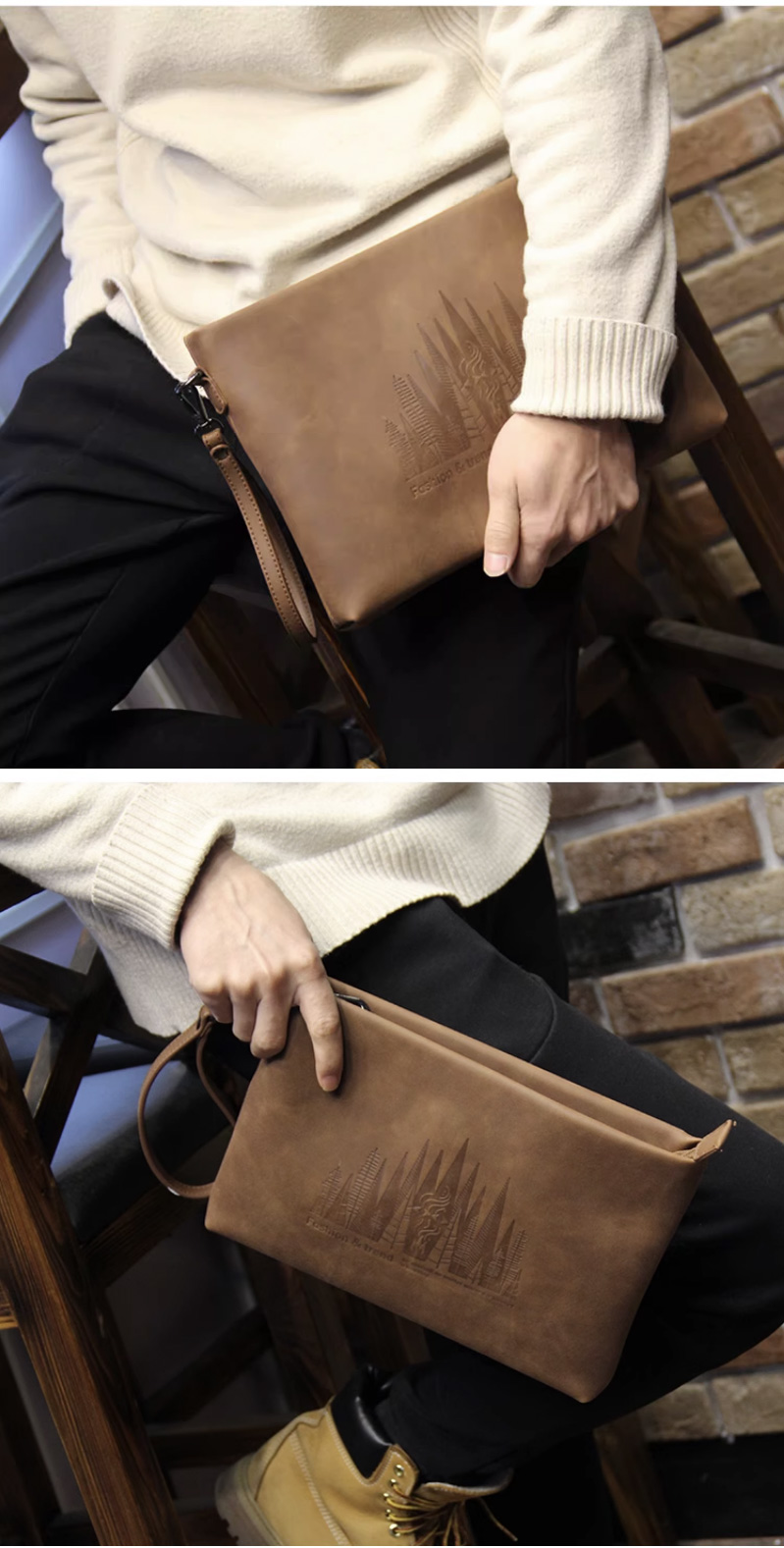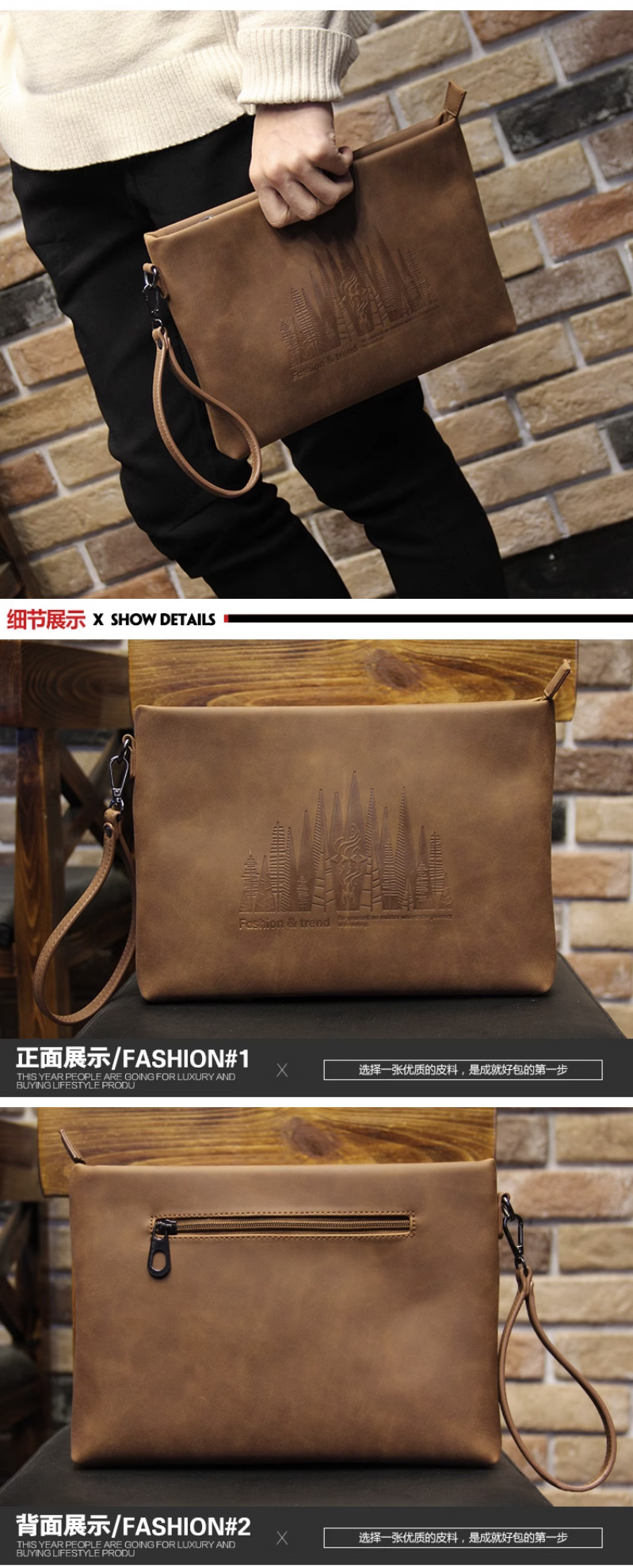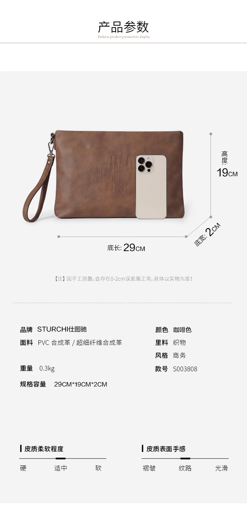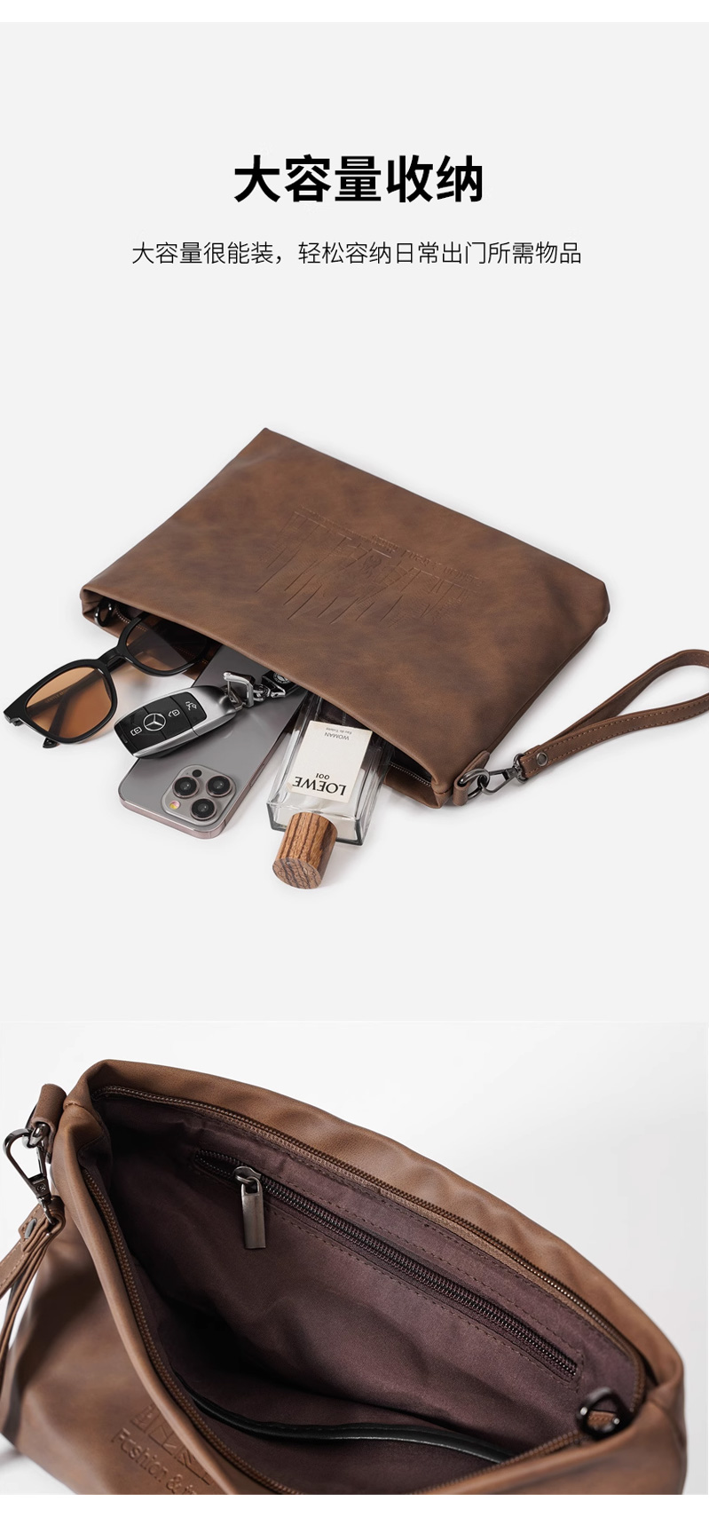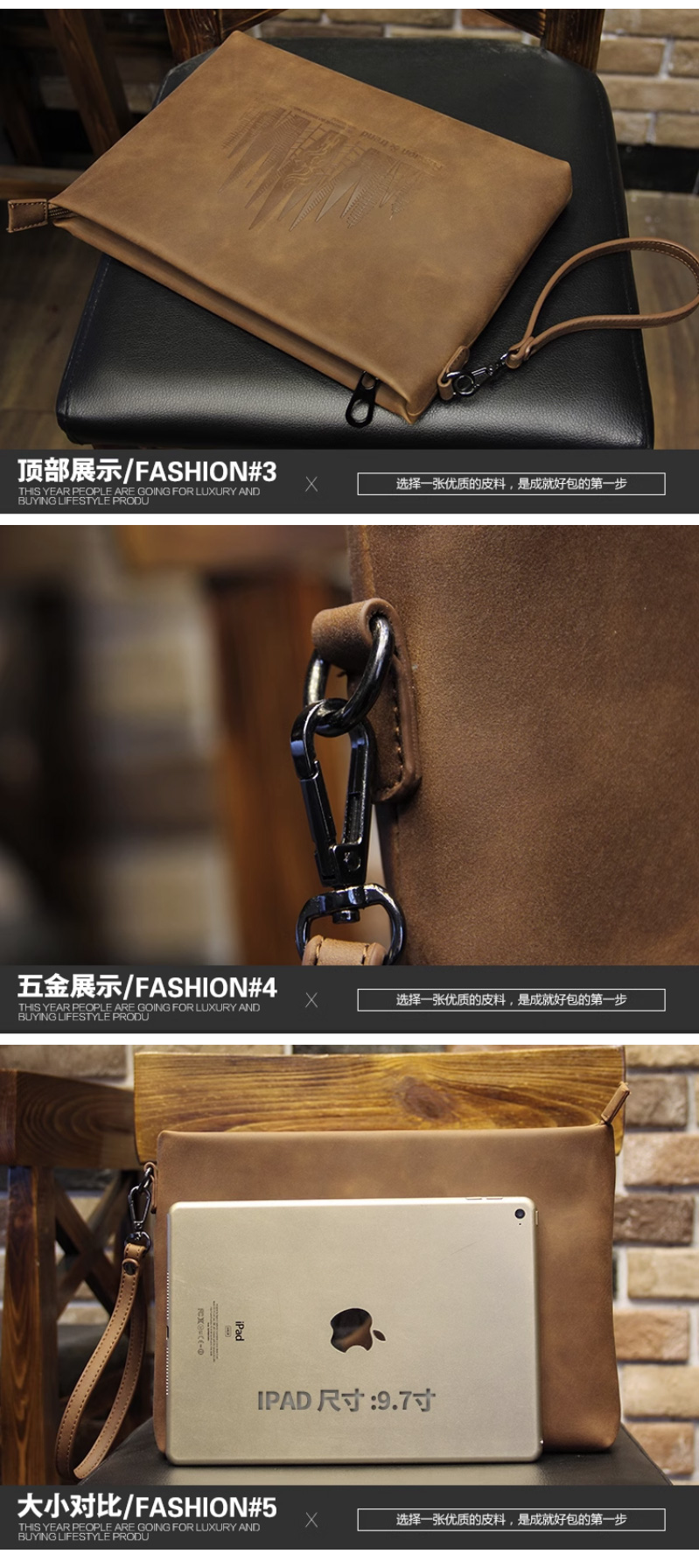 仕图驰手包男信封包高档男士疯马皮手拿包10寸大容量商务男包包