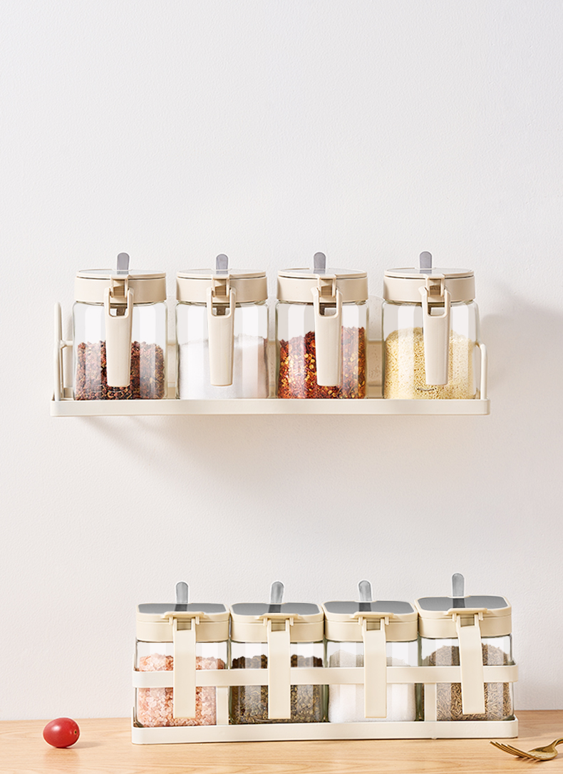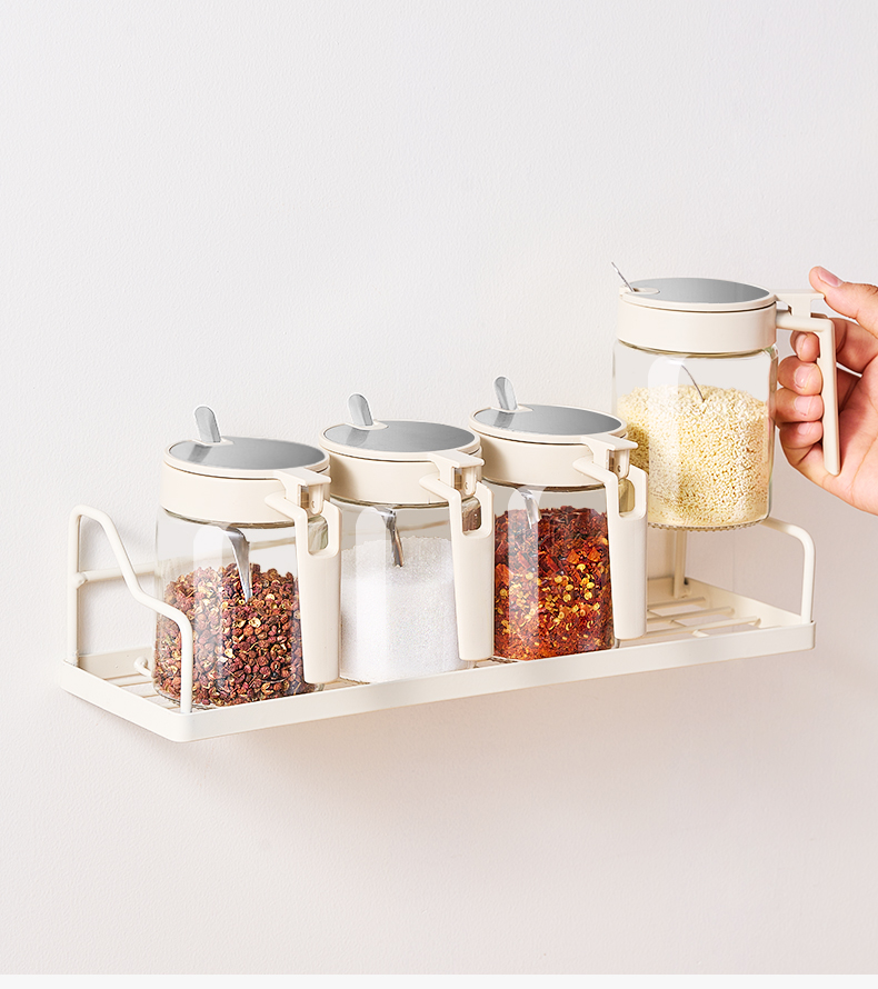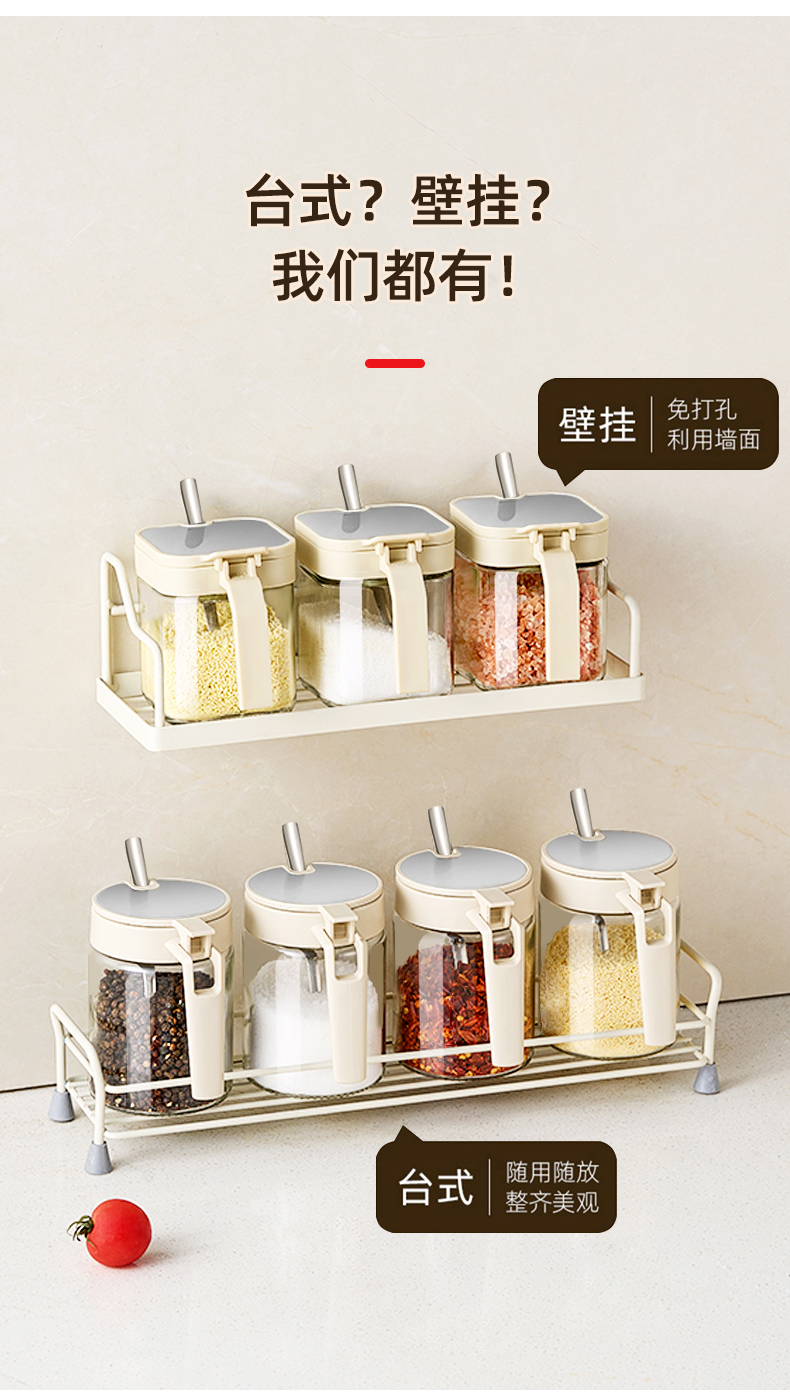 厨房调料瓶置物架白色铁线架子台式墙壁挂式免打孔瓶罐多用收纳架