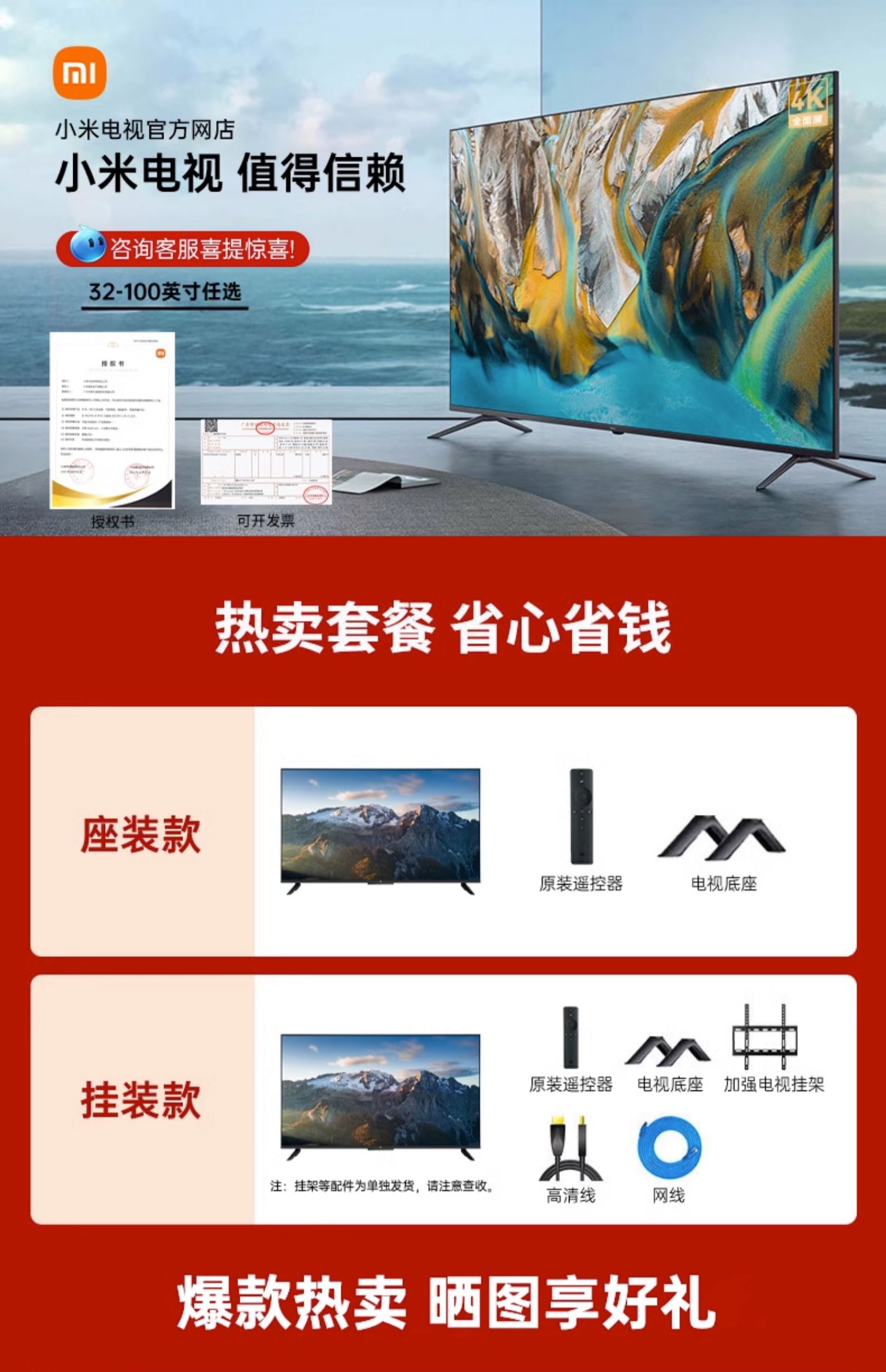小米电视EA65英寸4K超高清全面屏智能语音家用网络液晶平板556075