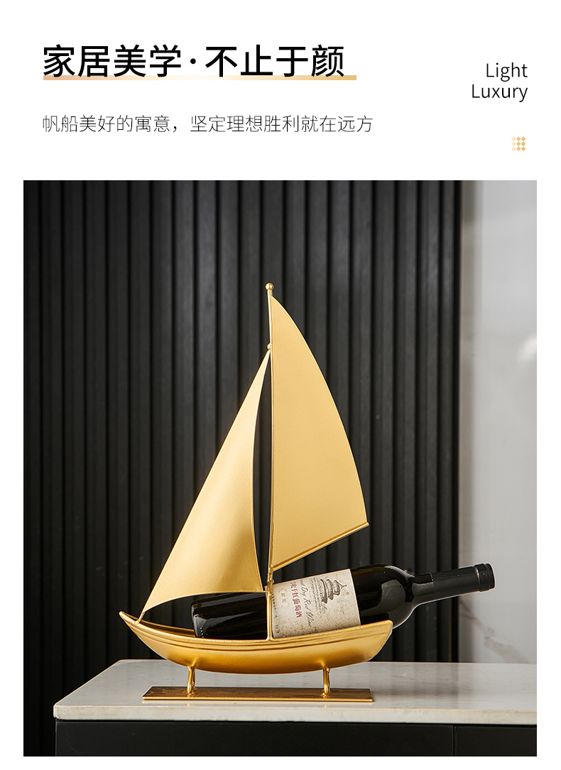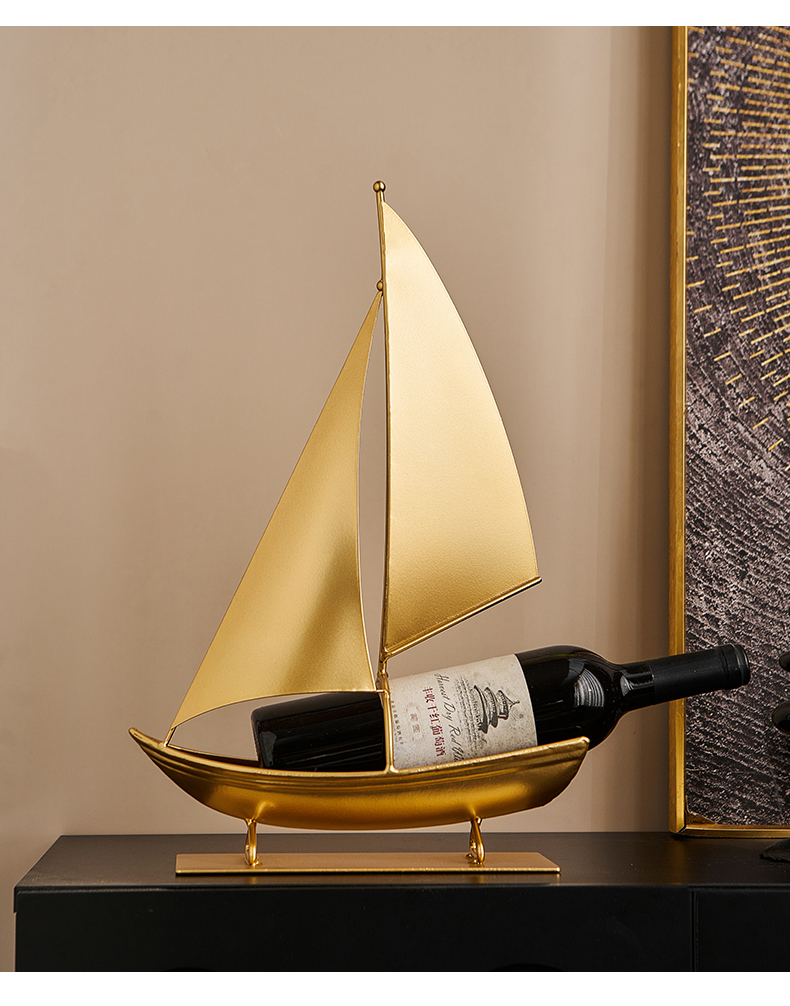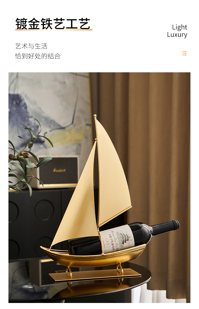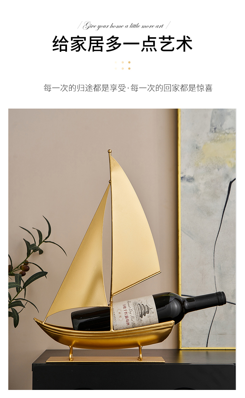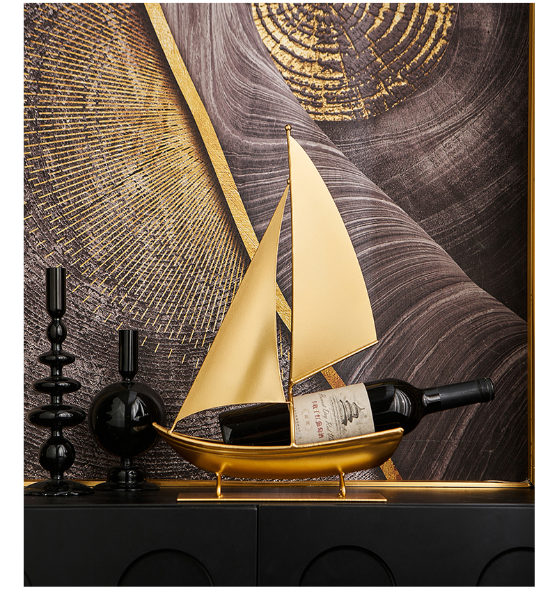一帆风顺红酒架复古铁艺帆船摆件轻奢高档酒柜电视柜家居软装饰品
