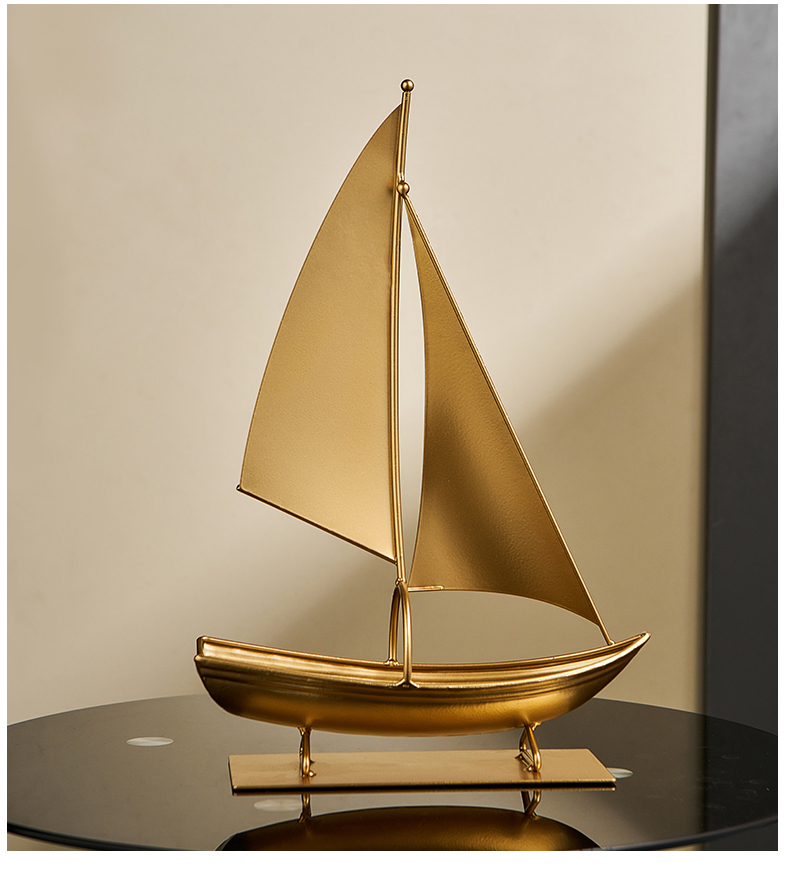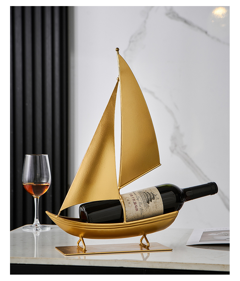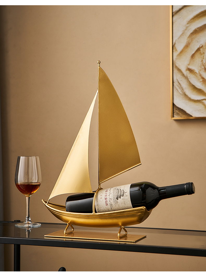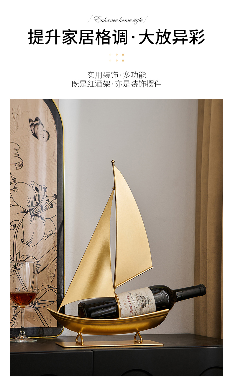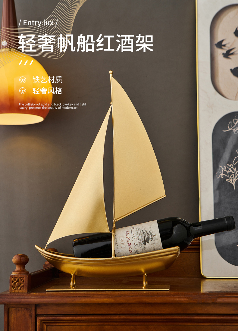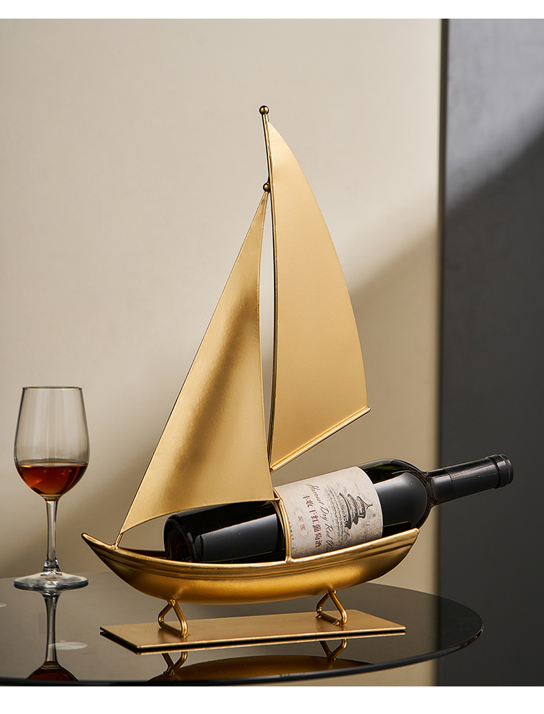 一帆风顺红酒架复古铁艺帆船摆件轻奢高档酒柜电视柜家居软装饰品