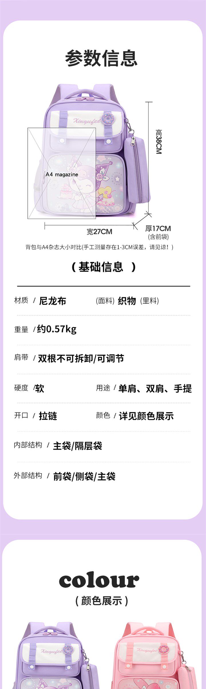 小学生书包女f孩一二三年级轻便减负护脊双肩包可爱库洛米儿童背