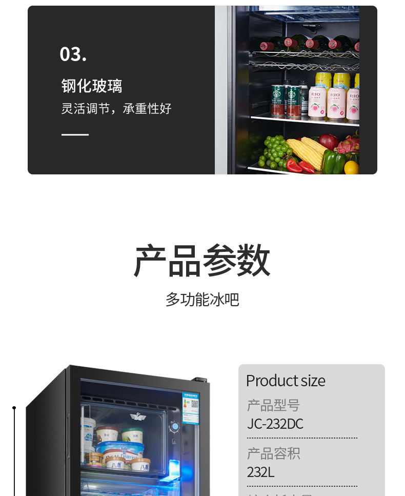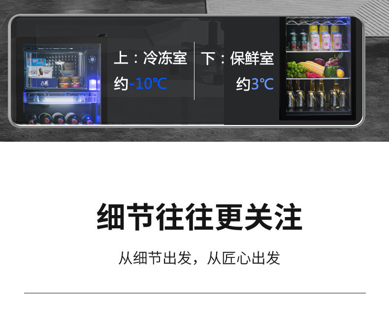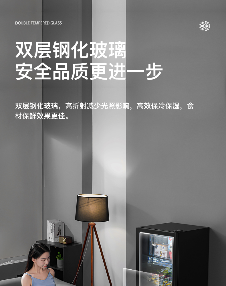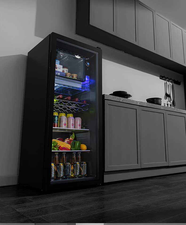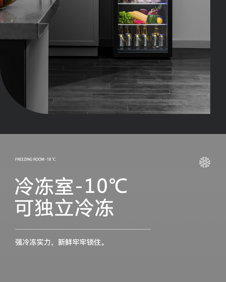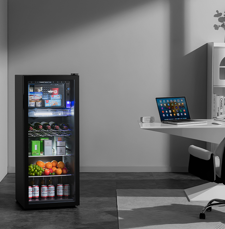 新飞冰吧家用小型冷藏保鲜柜茶叶饮料红酒办公室客厅透明玻璃冰箱