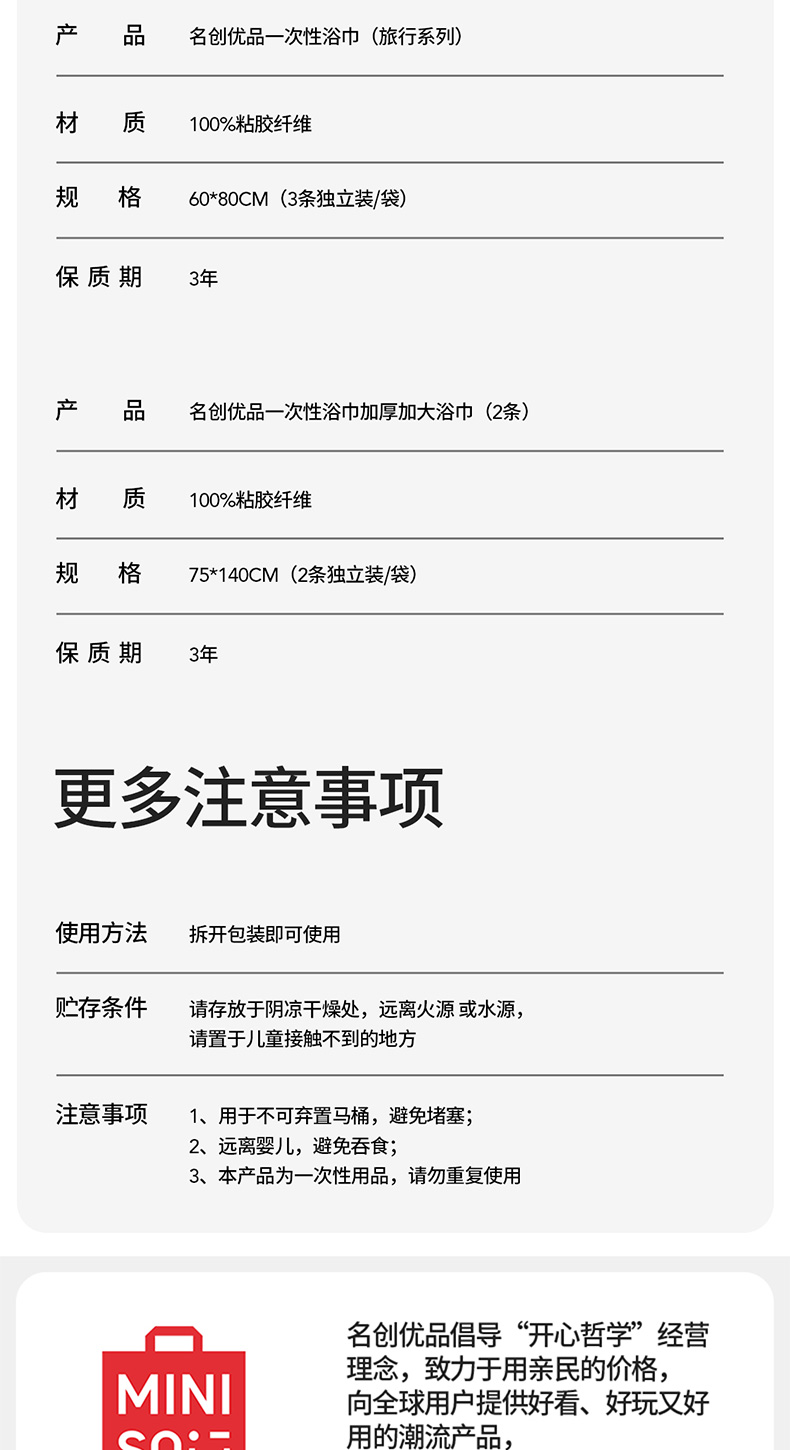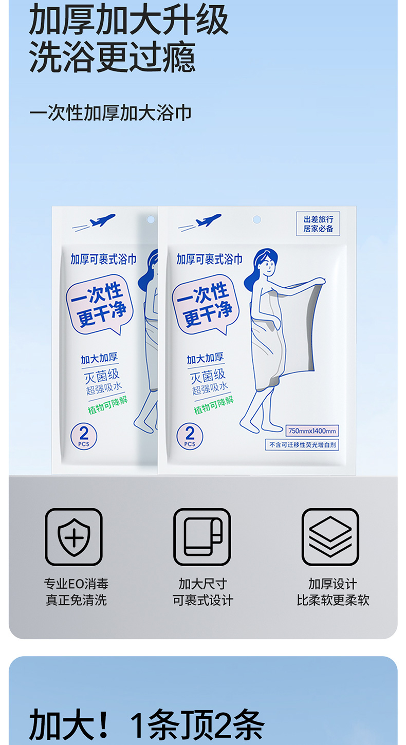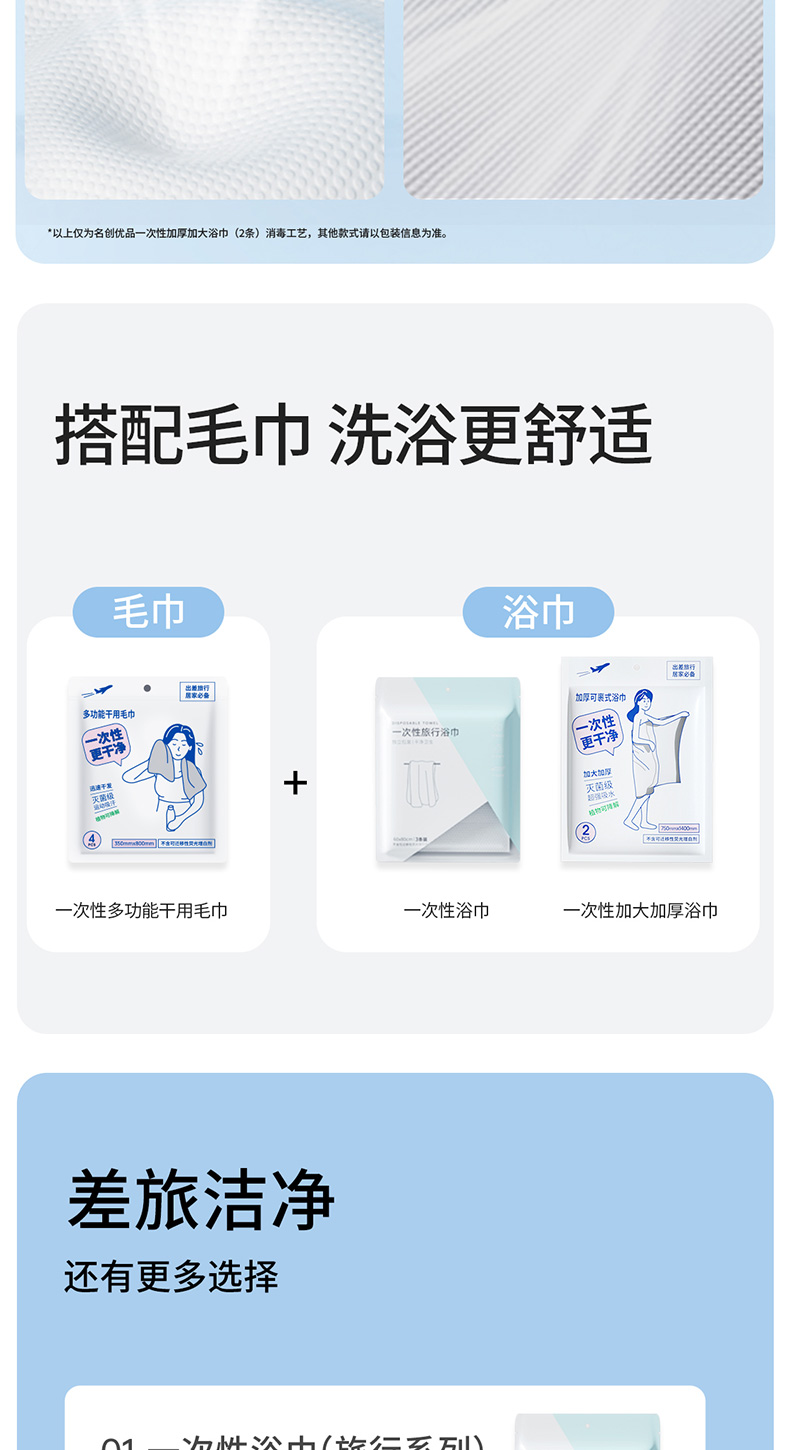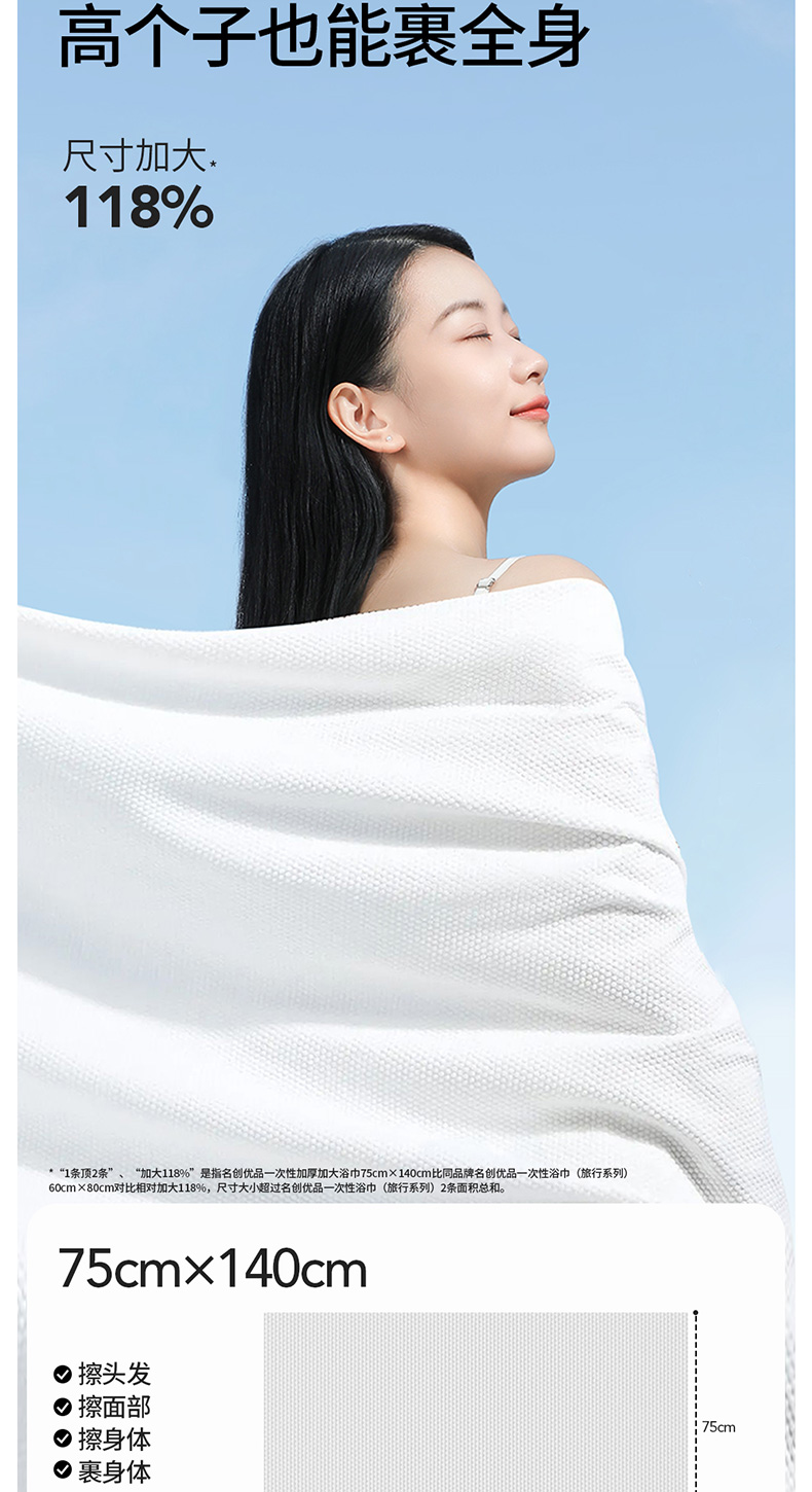 名创优品一次性浴巾干湿两用旅行用品出差便携浴巾单独包装3条1包