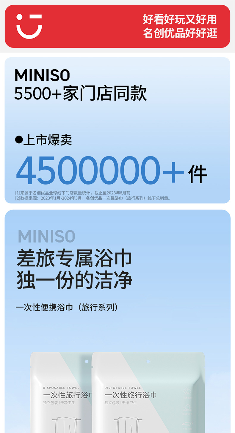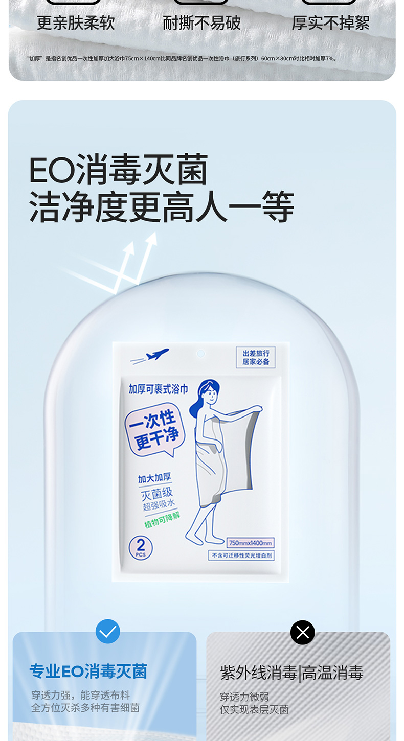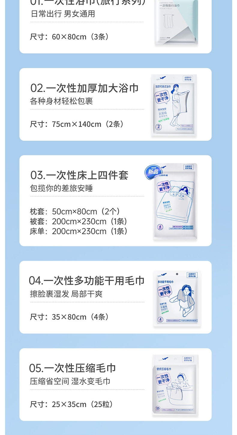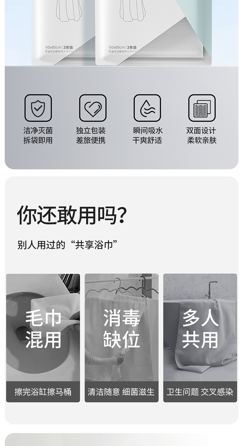 名创优品一次性浴巾干湿两用旅行用品出差便携浴巾单独包装3条1包