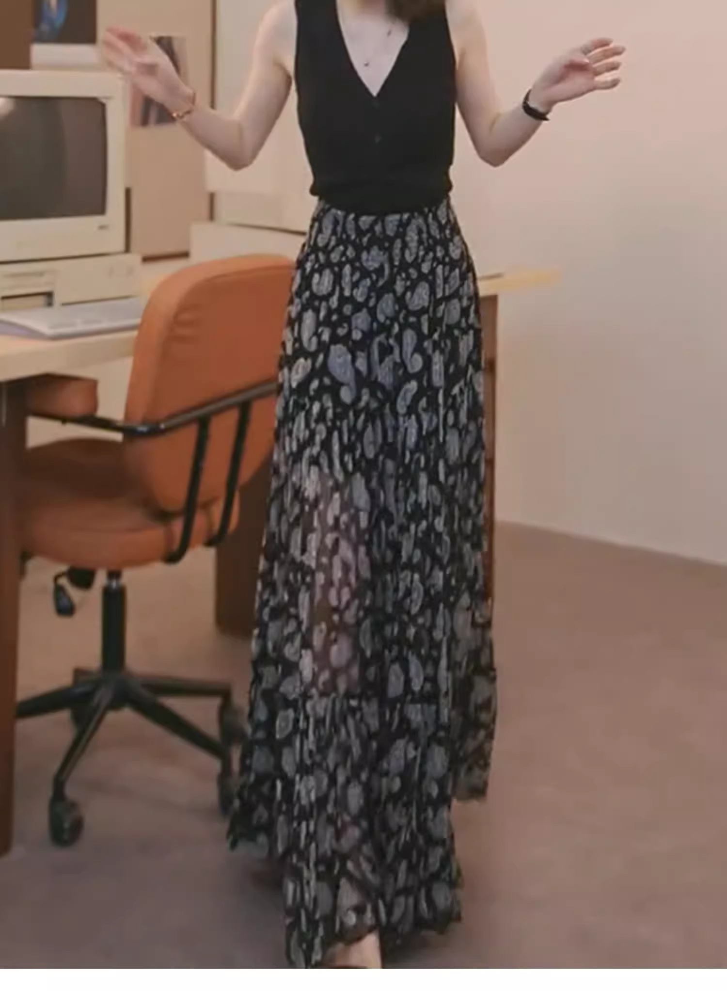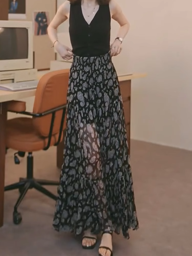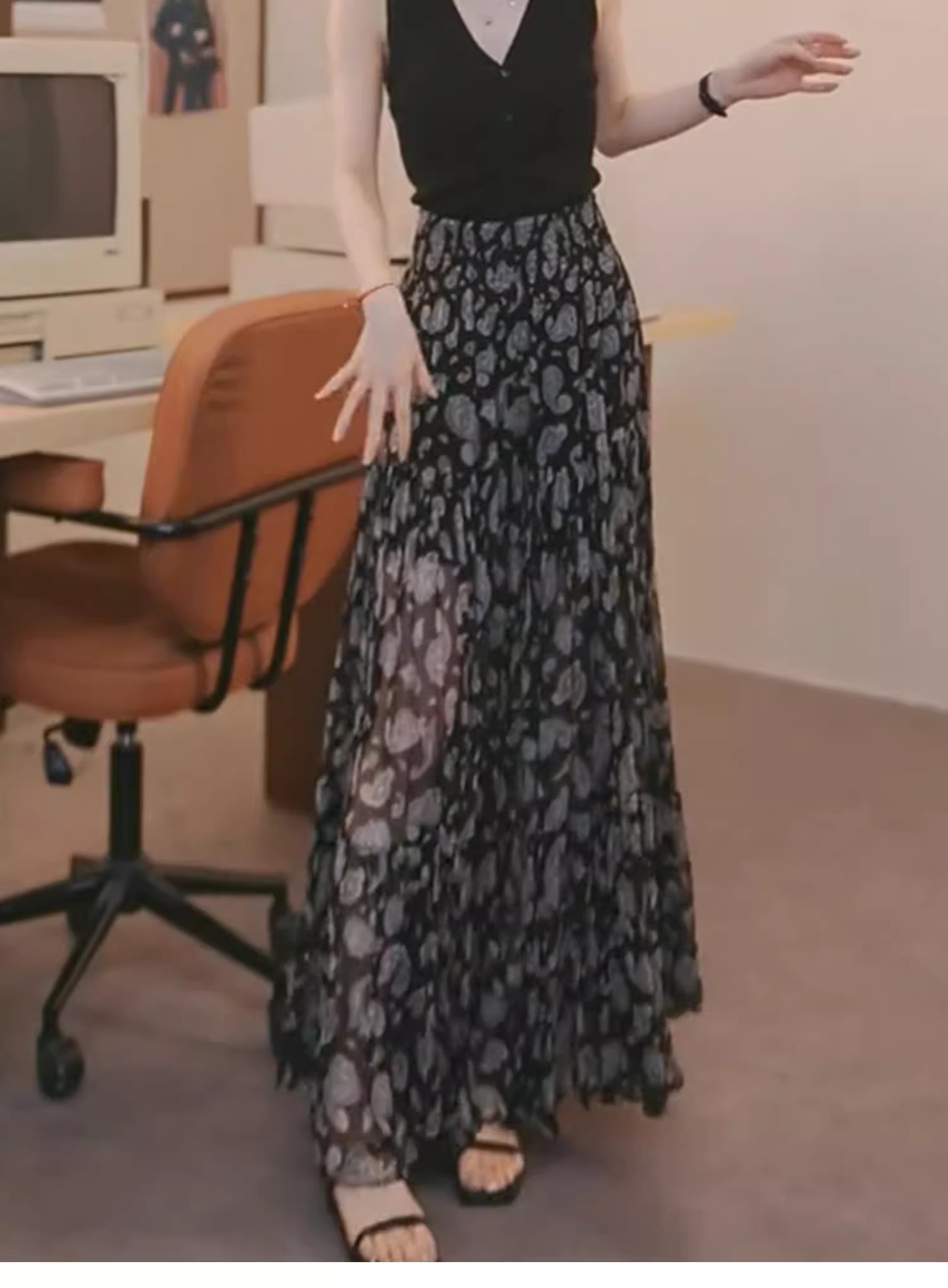 韩版时尚飘逸独特花纹休闲半身裙2025年春夏新款潮流减龄百搭长裙