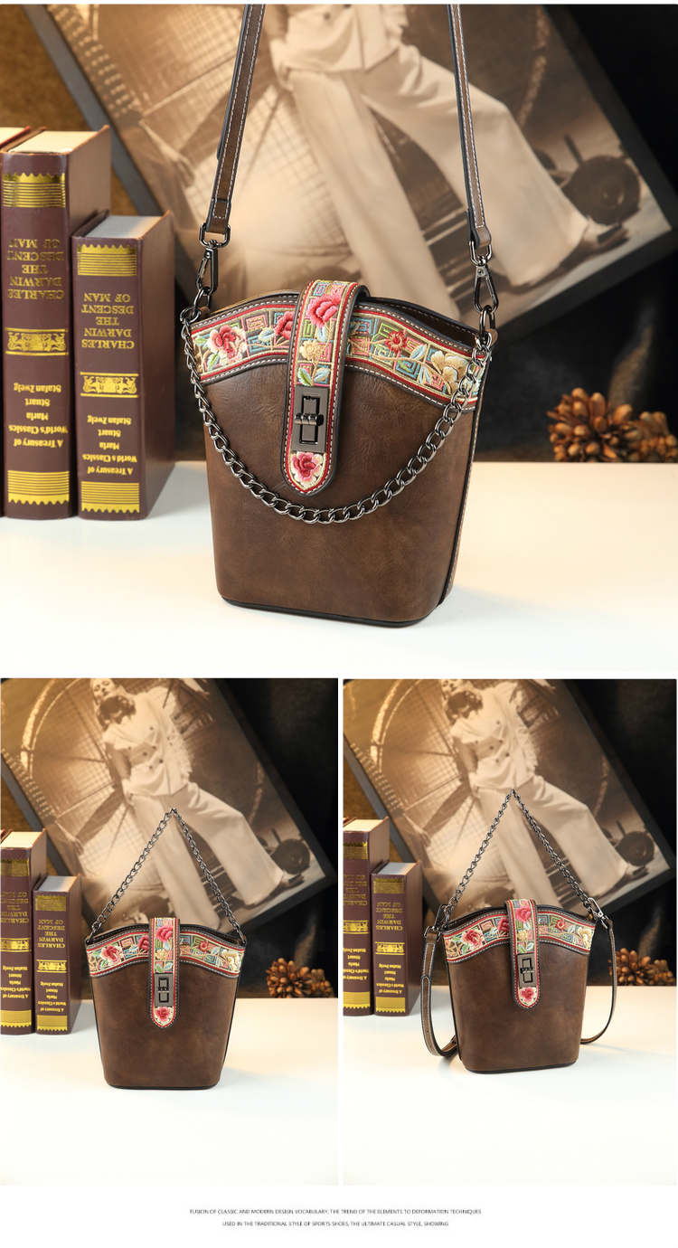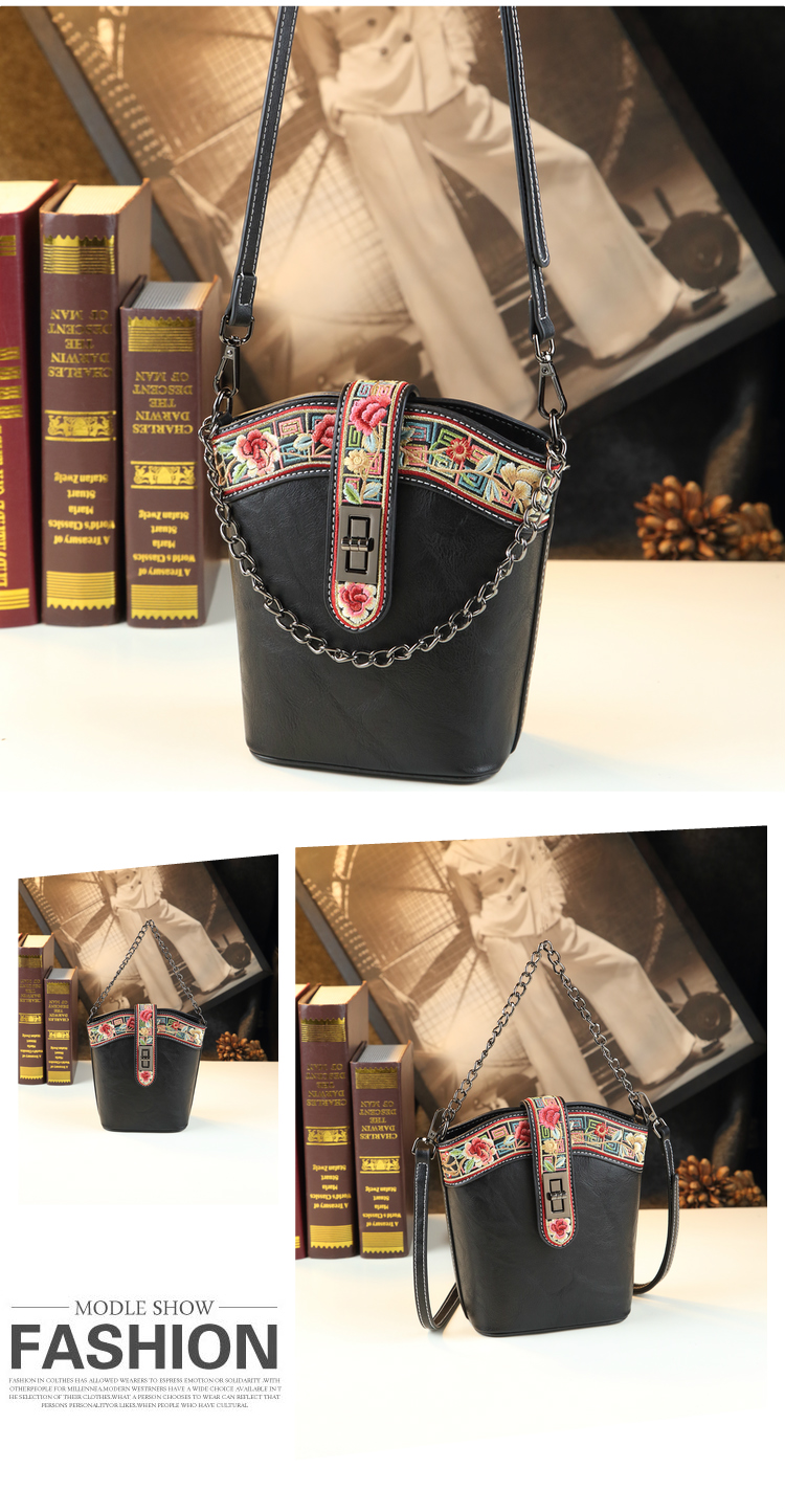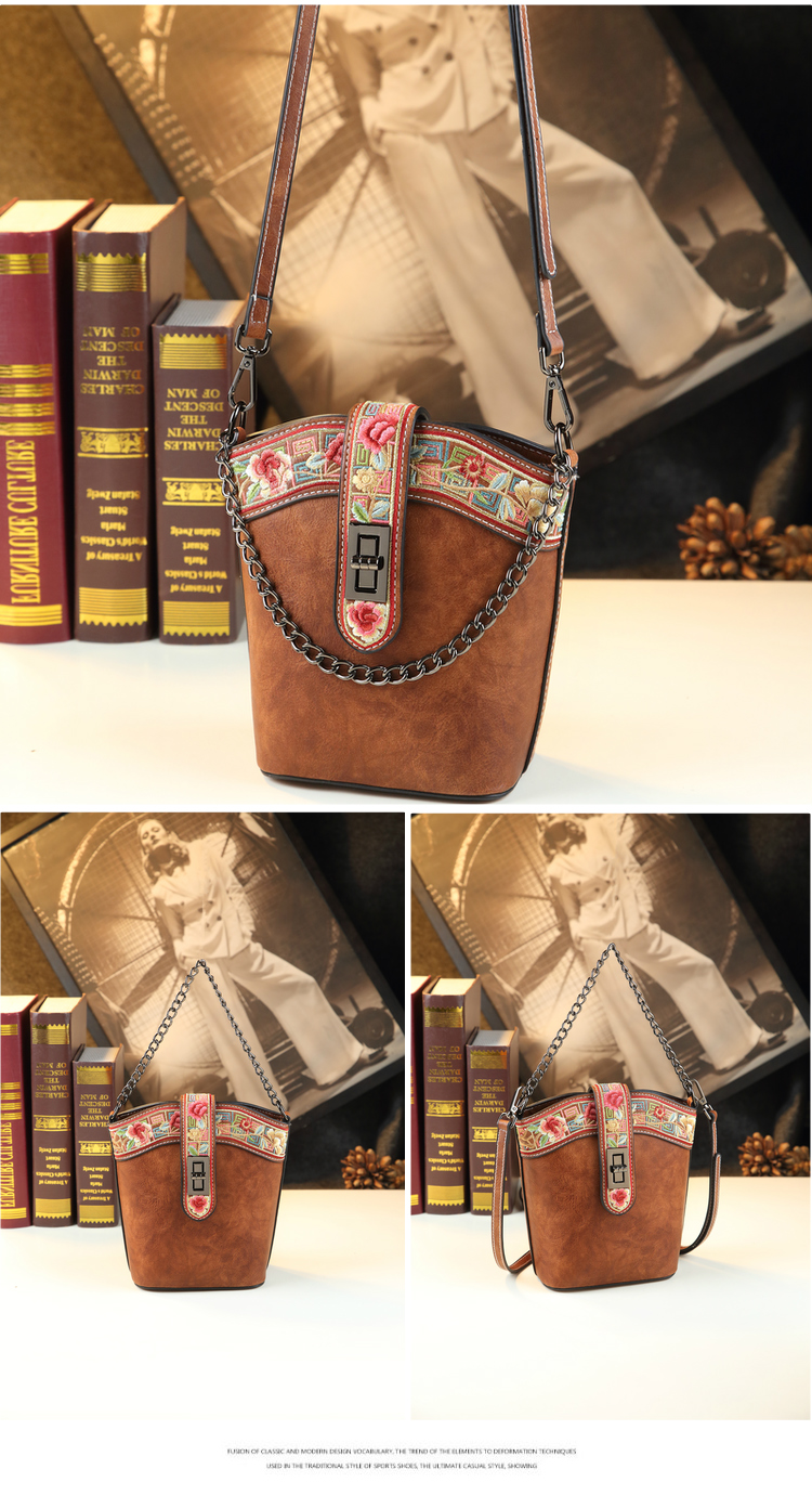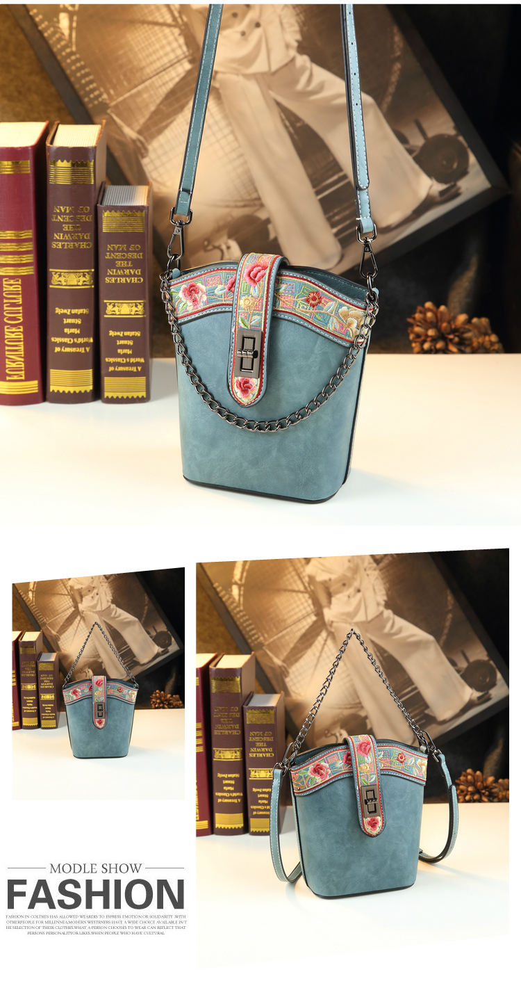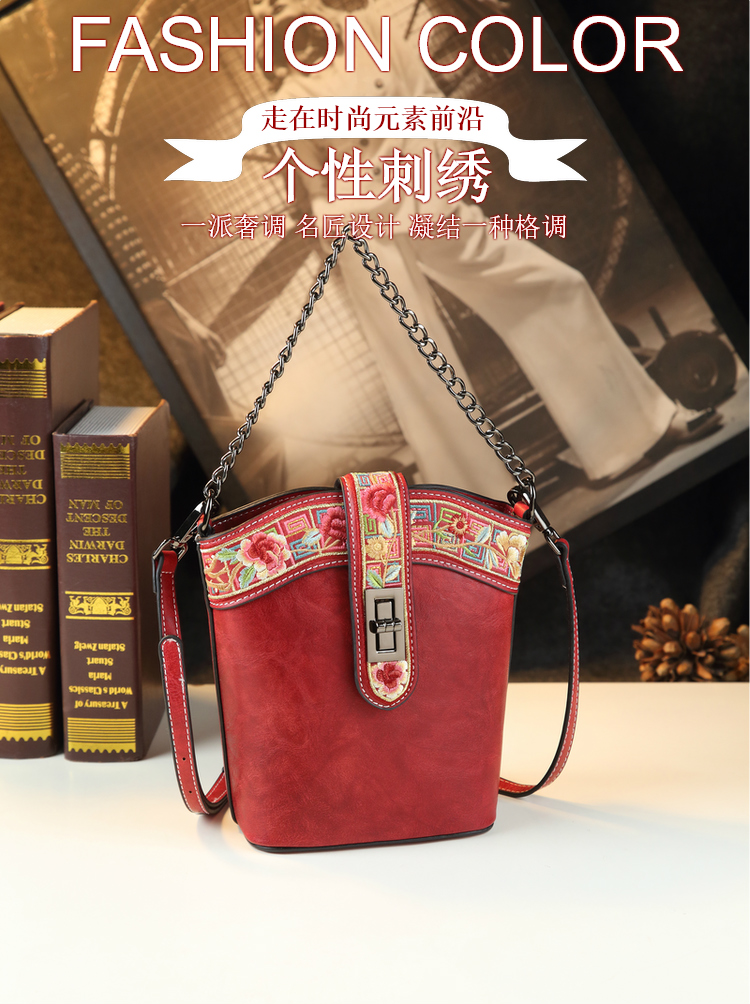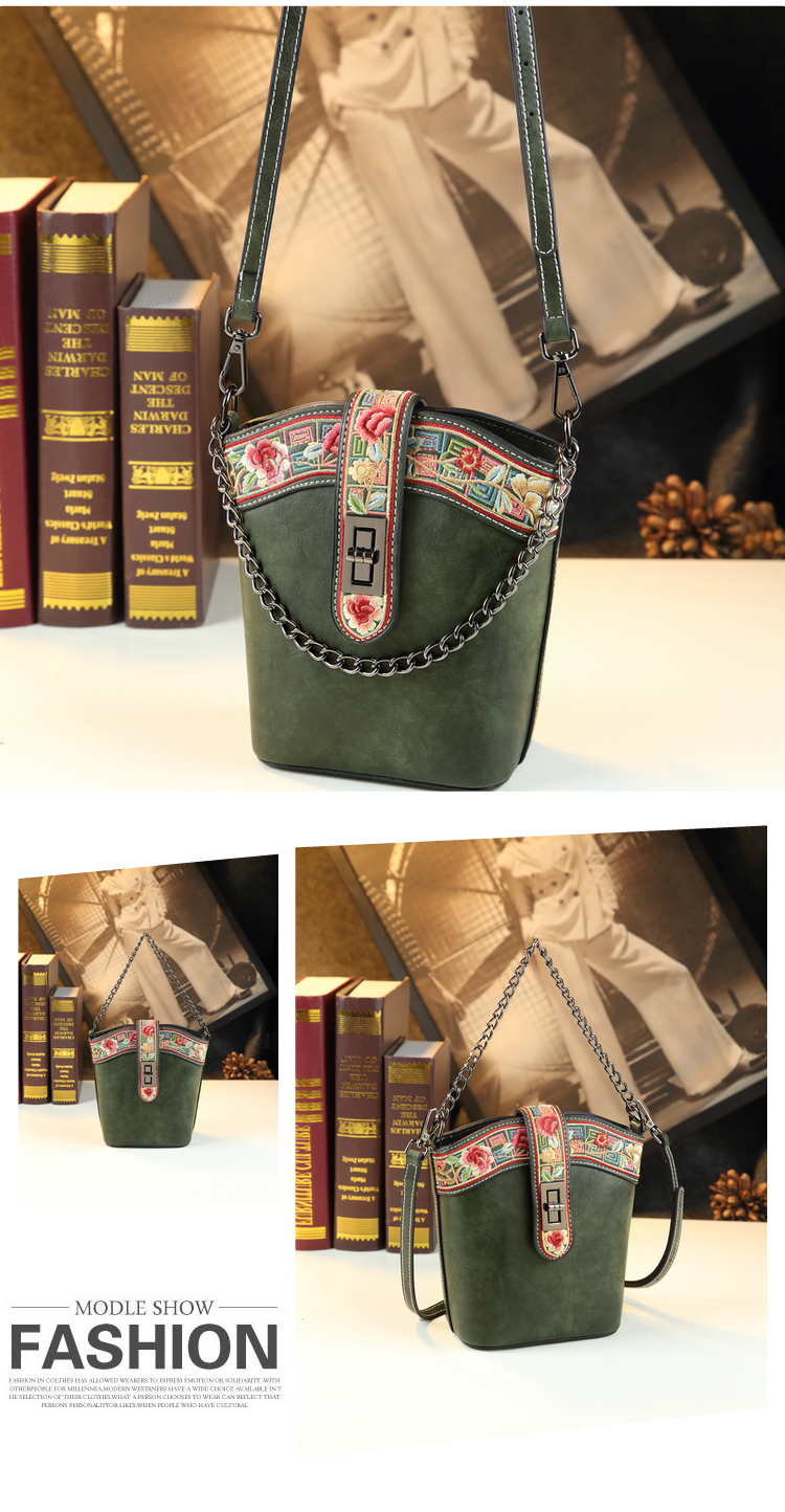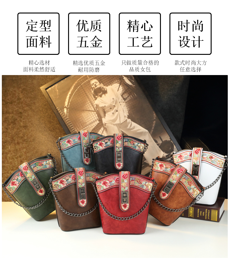 2024大牌高级感流浪包水桶包2023新款刺绣复古真皮手提单肩斜挎包