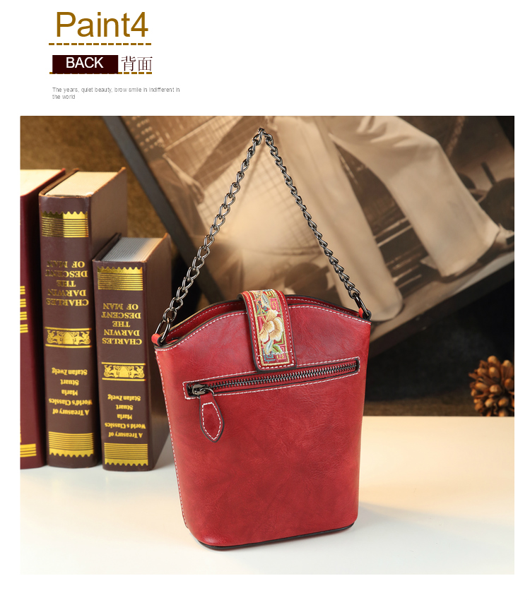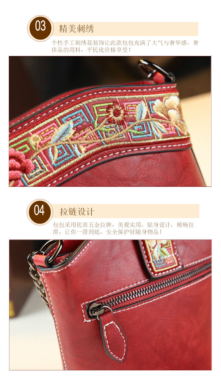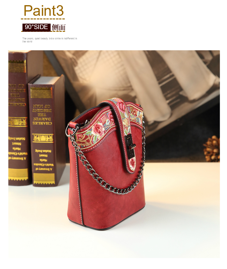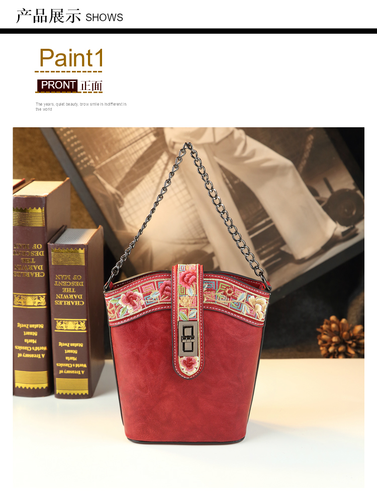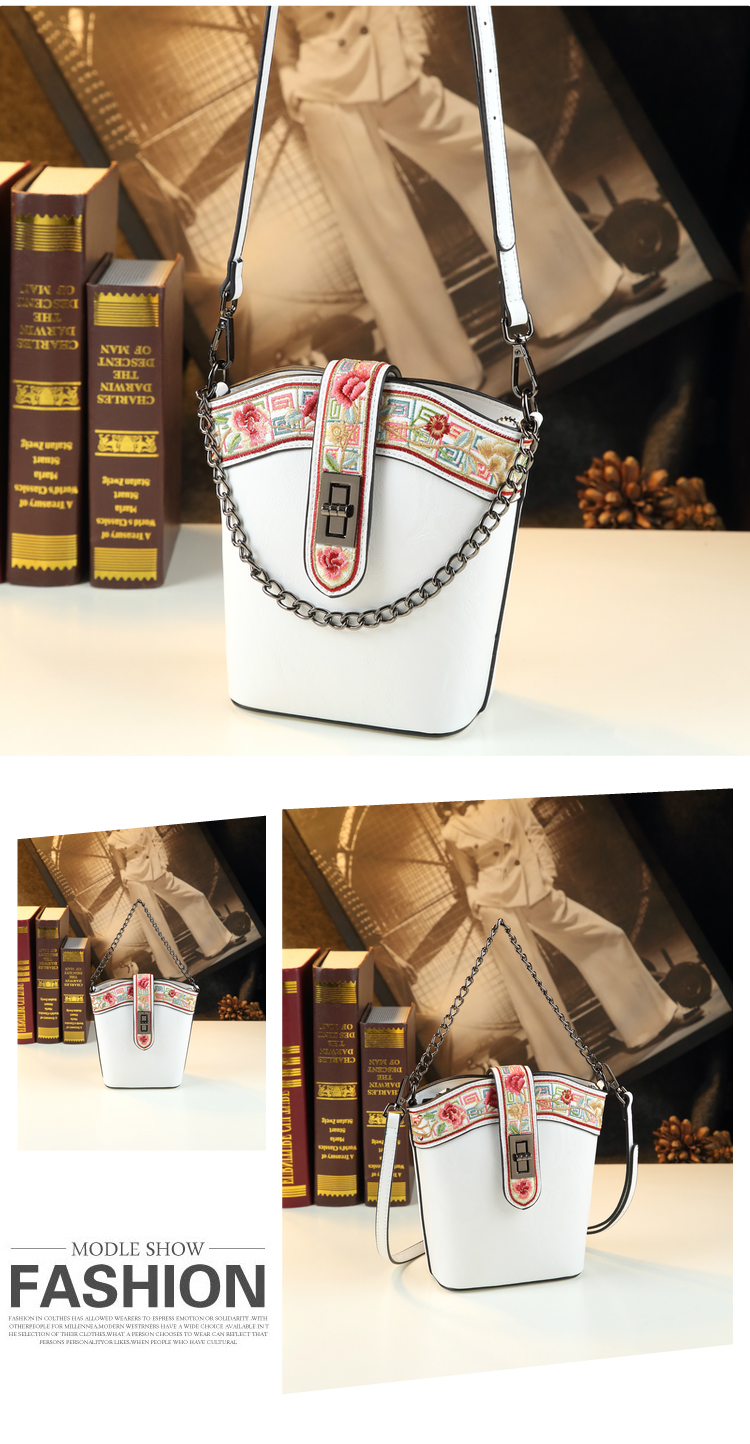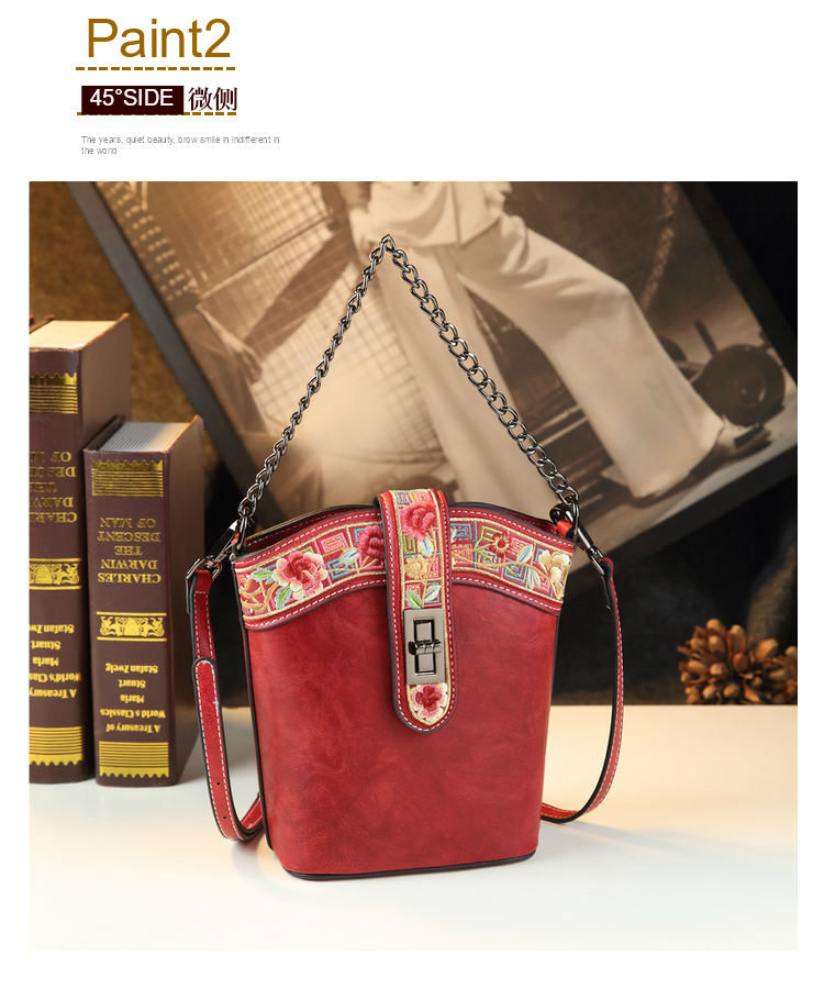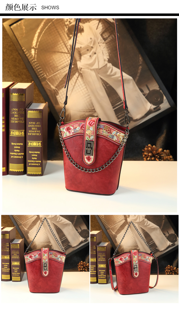 2024大牌高级感流浪包水桶包2023新款刺绣复古真皮手提单肩斜挎包