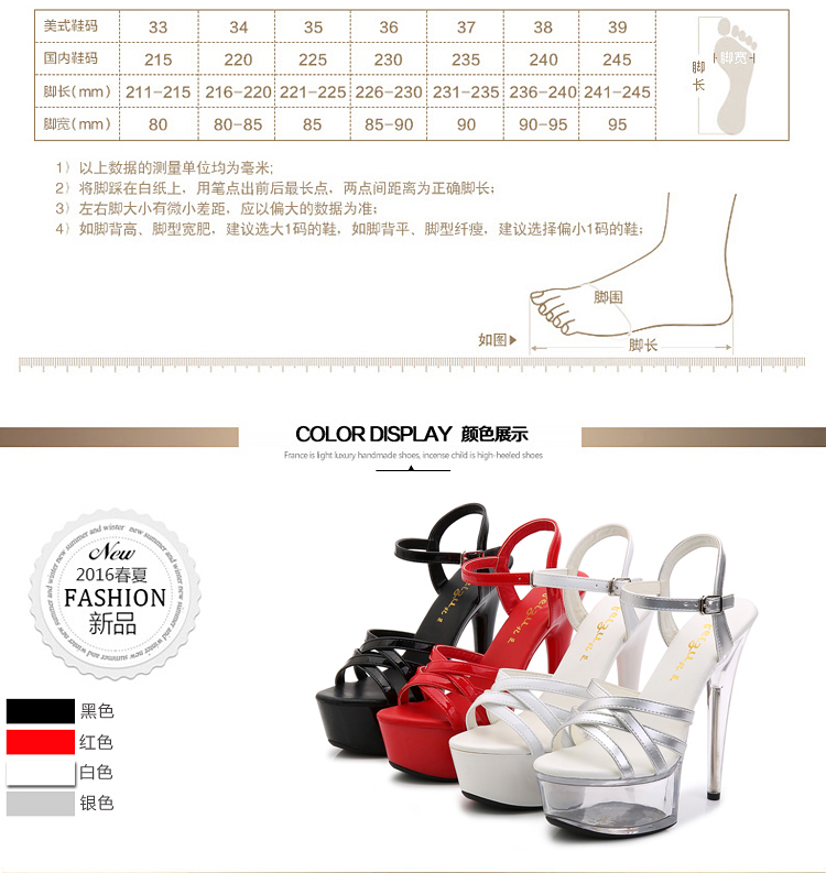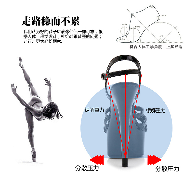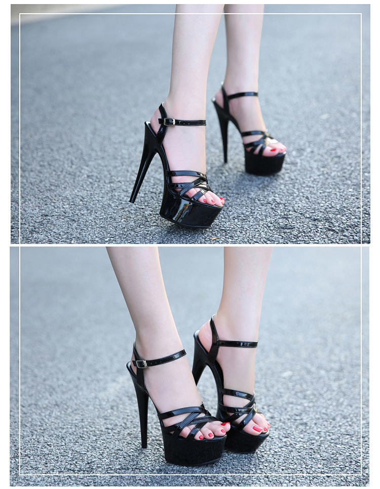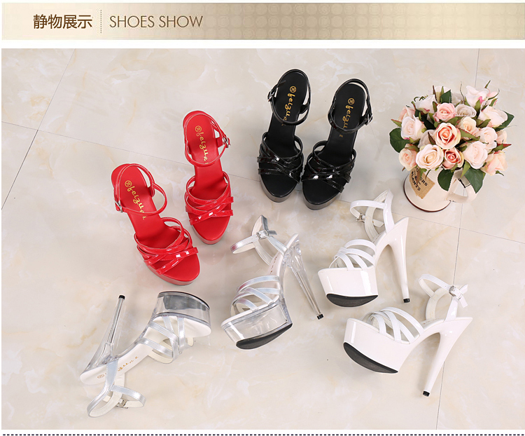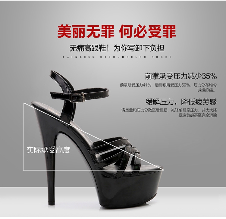 T台走秀鞋女模特礼服鞋 15cm/18厘米超高跟凉鞋 夜店细跟钢管舞鞋