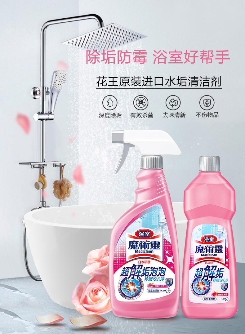 KAO花王浴室清洁剂花洒卫生间玻璃浴缸水垢瓷砖清洗剂浴室魔术灵