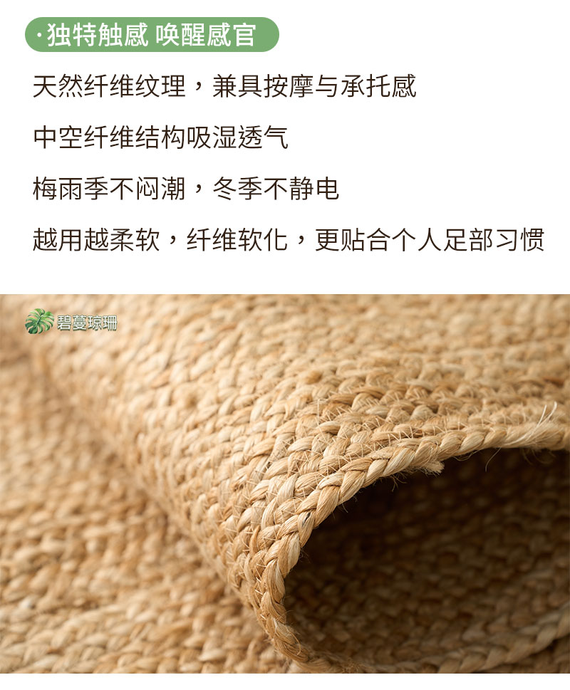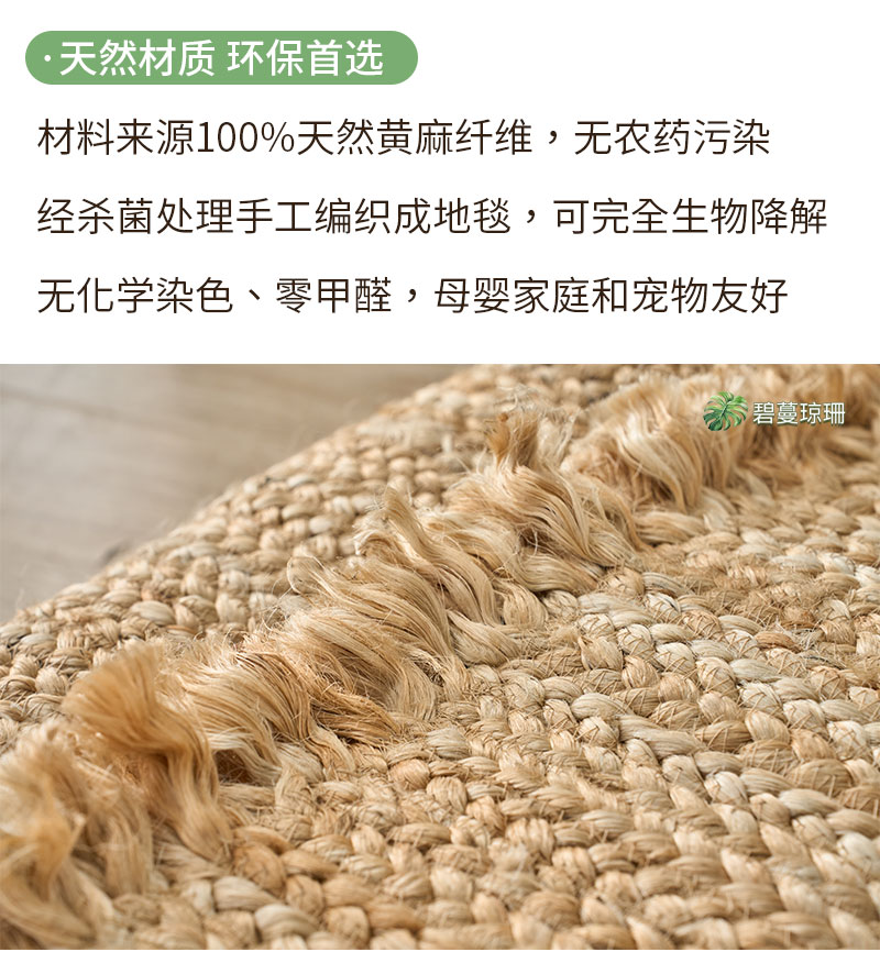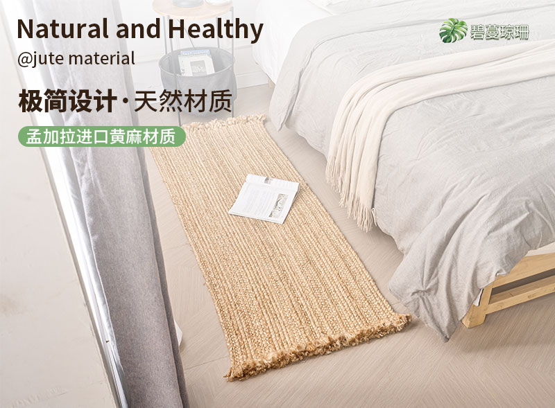 碧蔓琼珊天然黄麻床边毯孟加拉进口卧室地毯无甲醛简约床边毯