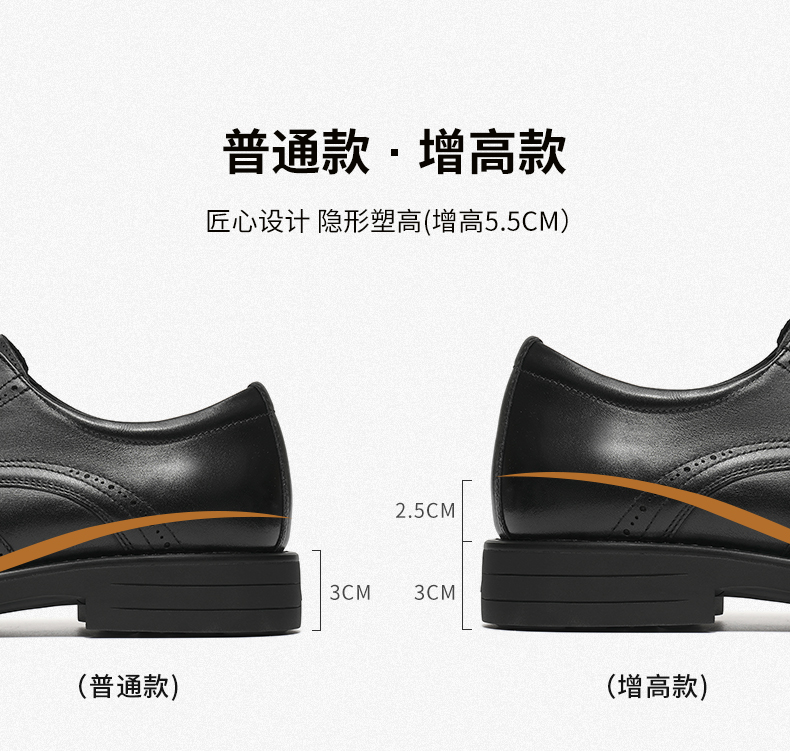 红蜻蜓皮鞋男正装商务鞋子雕花布洛克结婚棕色男鞋内增高真皮婚鞋