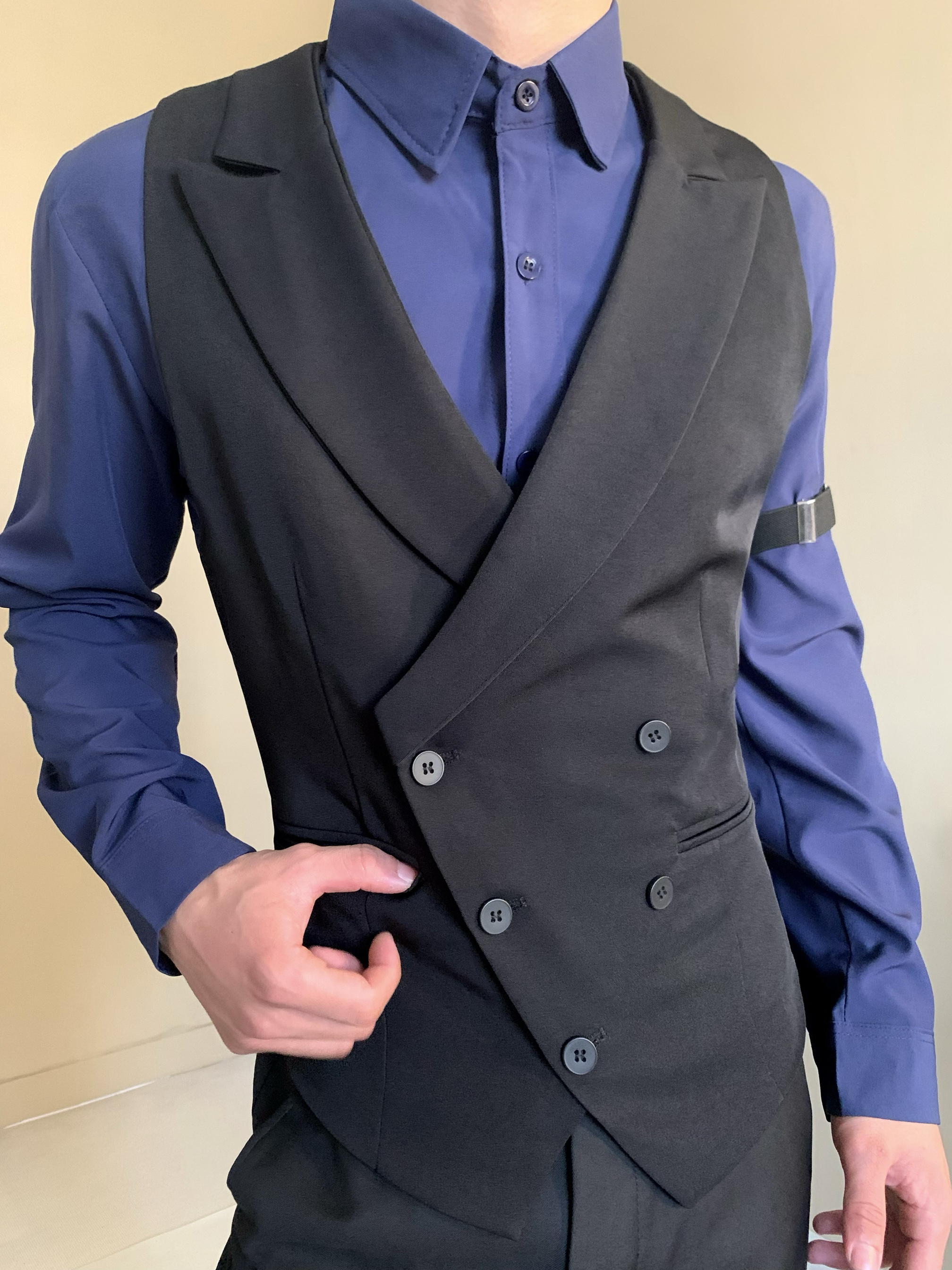 英伦风黑色西服马甲痞帅男女禁欲系高级感设计枪驳领修身背心马夹