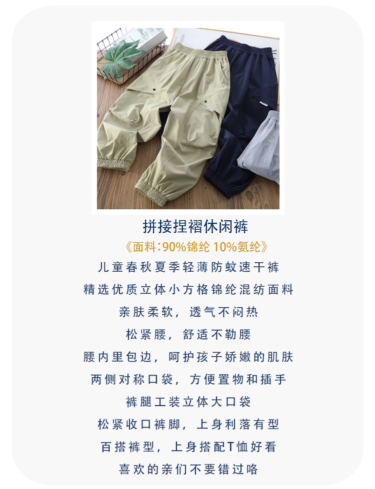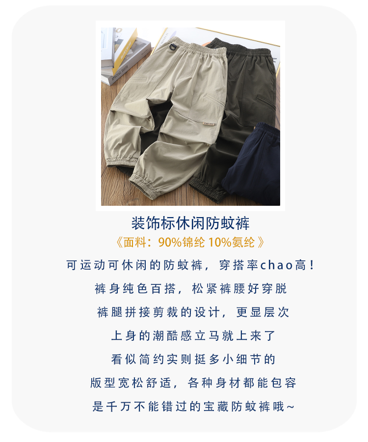 男童春夏防蚊虫裤子2025款中大童儿童装男孩帅气时髦偏薄休闲长裤
