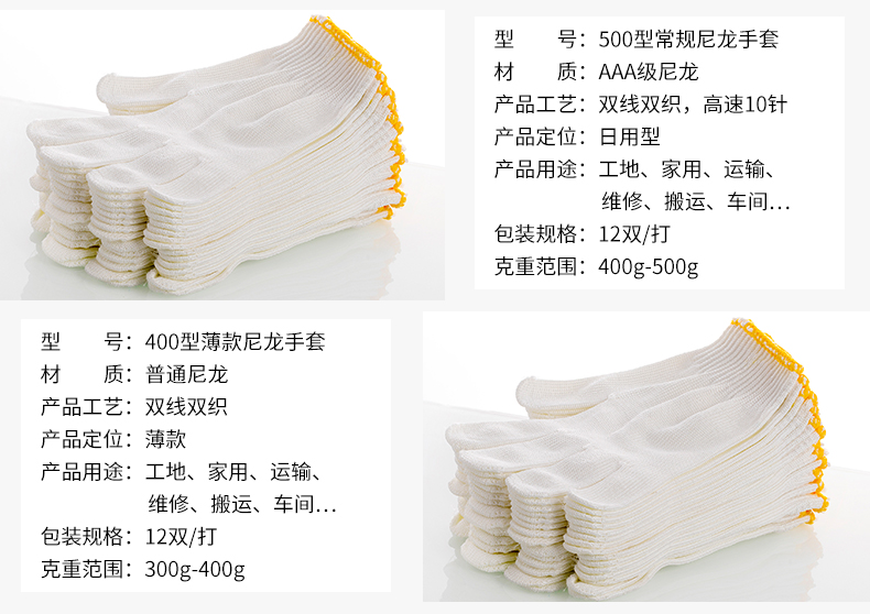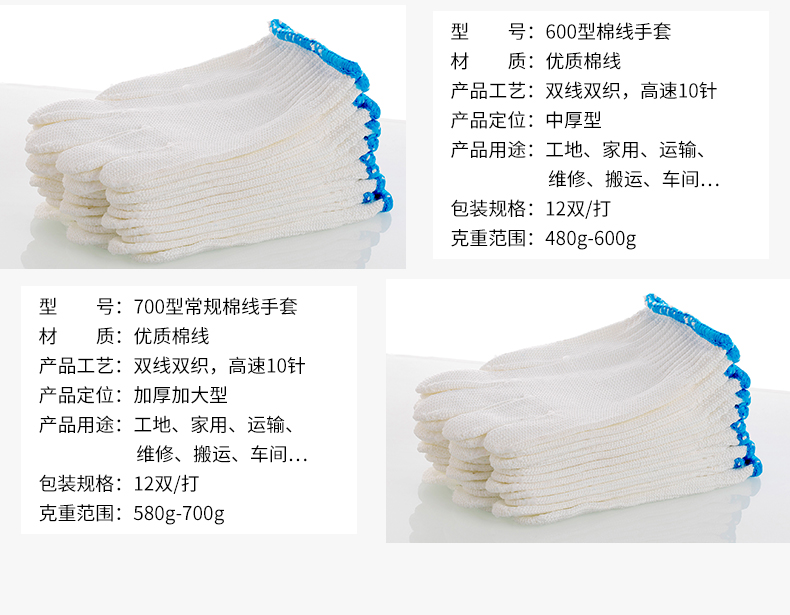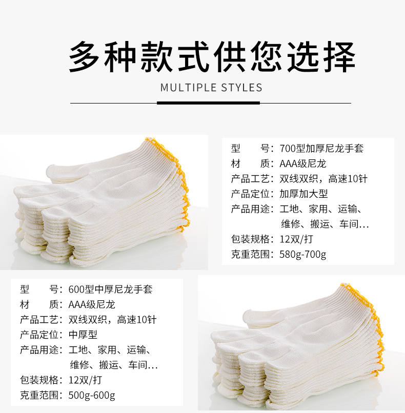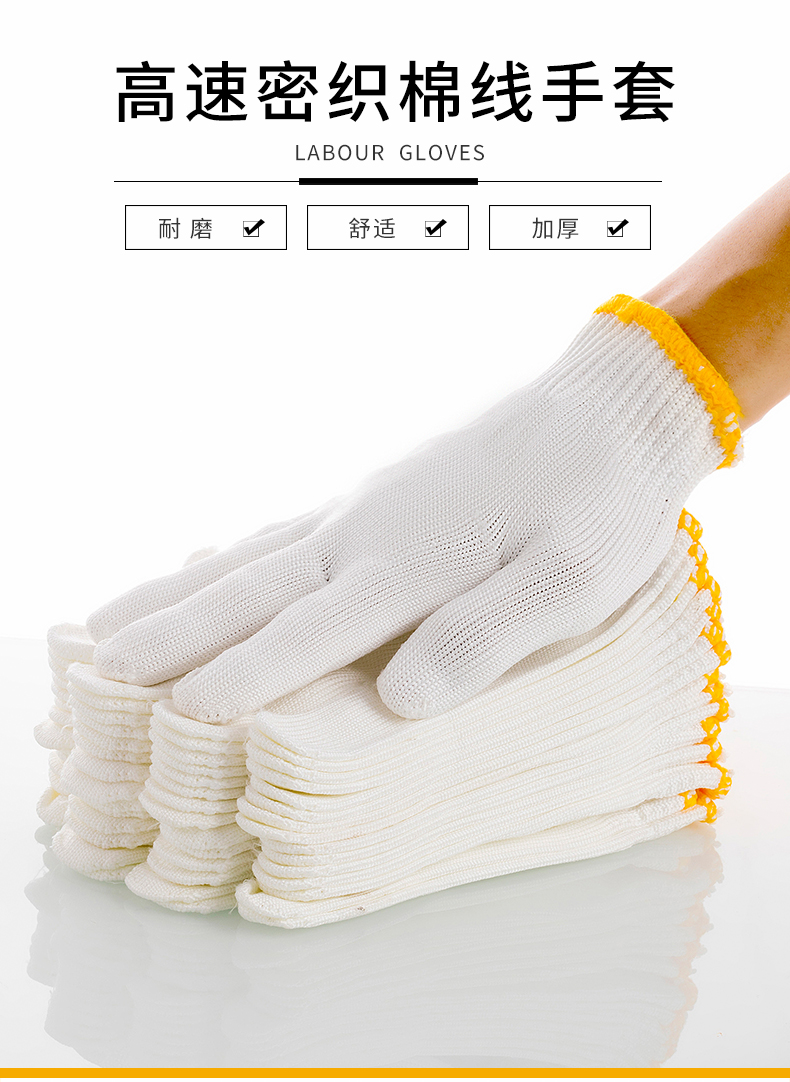 棉线手套劳保耐磨工作防滑纯棉加厚白棉纱尼龙劳工劳动男工地干活