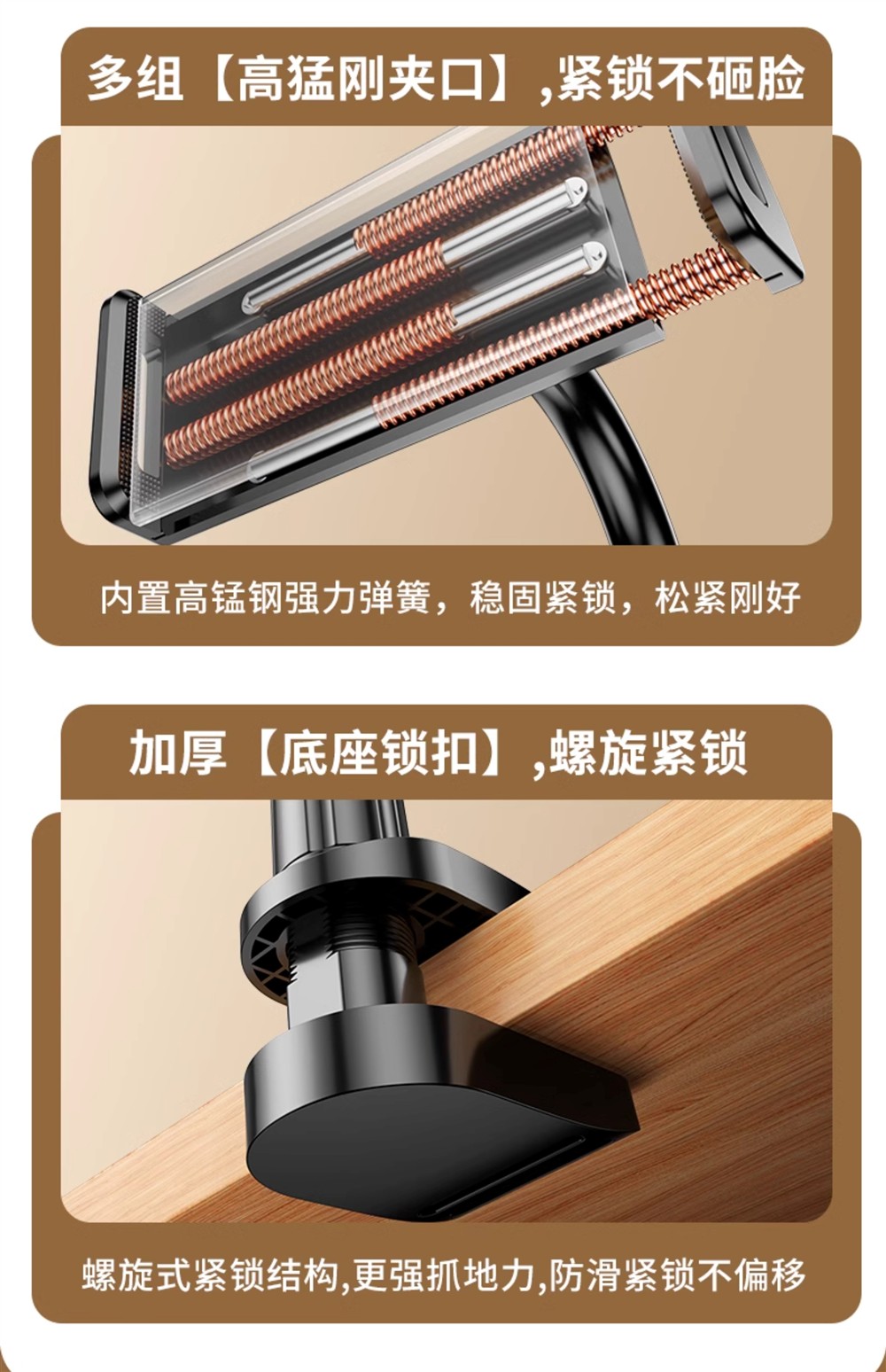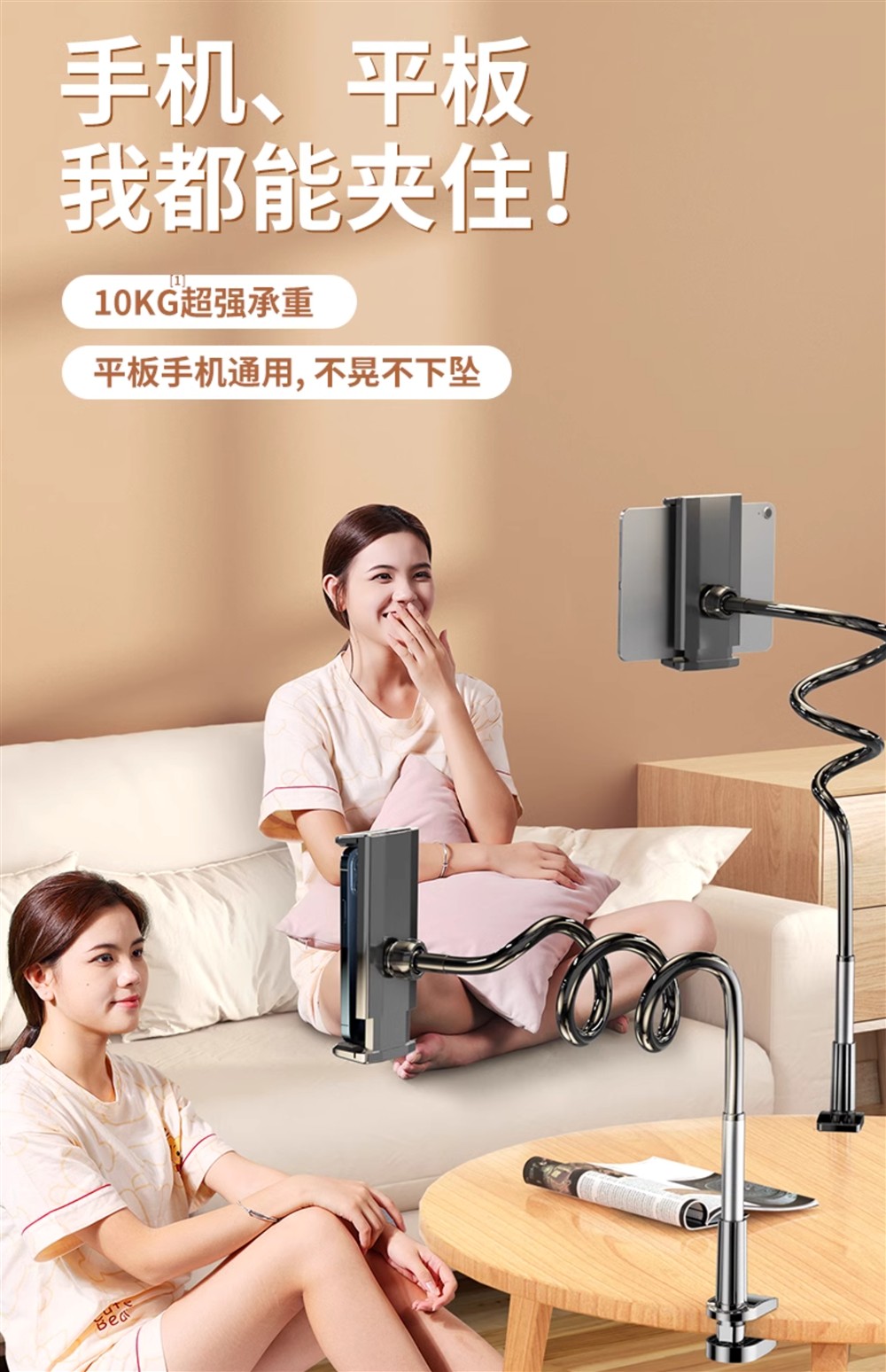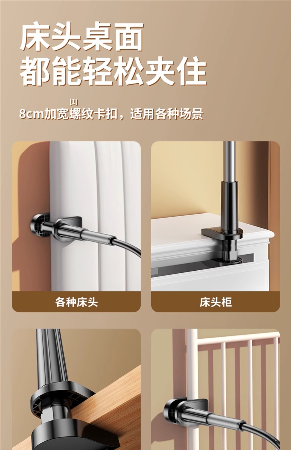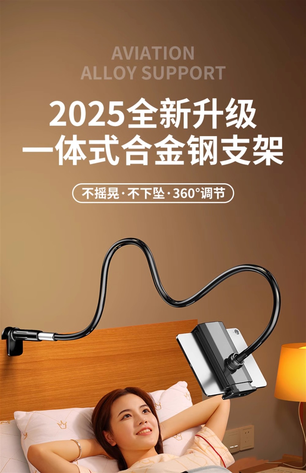 床头手机架懒人支架360度稳固不晃躺着看电视追剧神器2025新款万能通用平板支撑架桌面加长可伸缩直播夹子