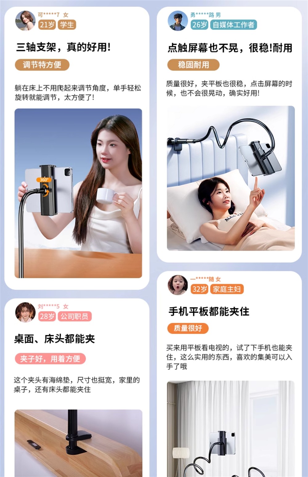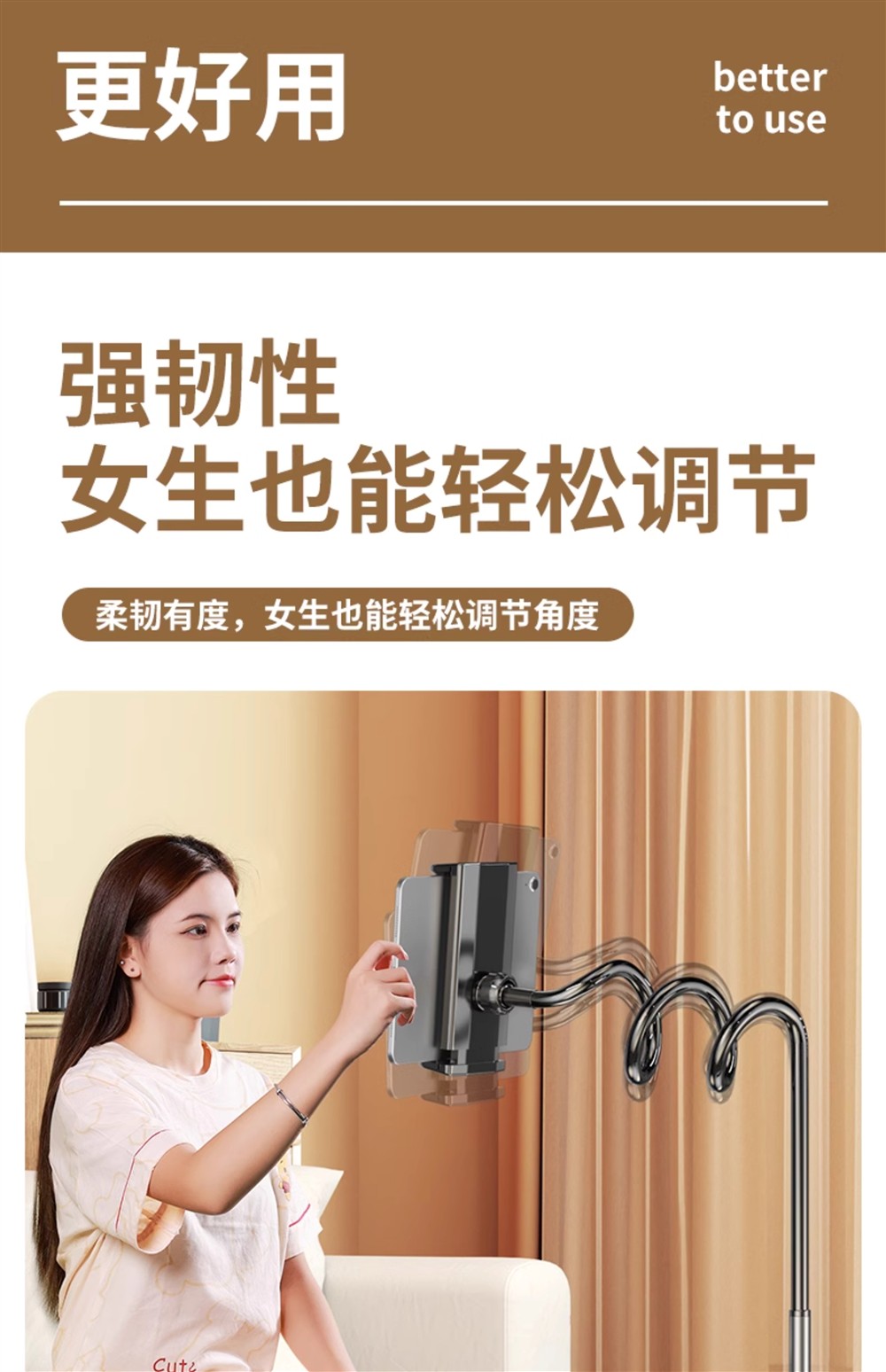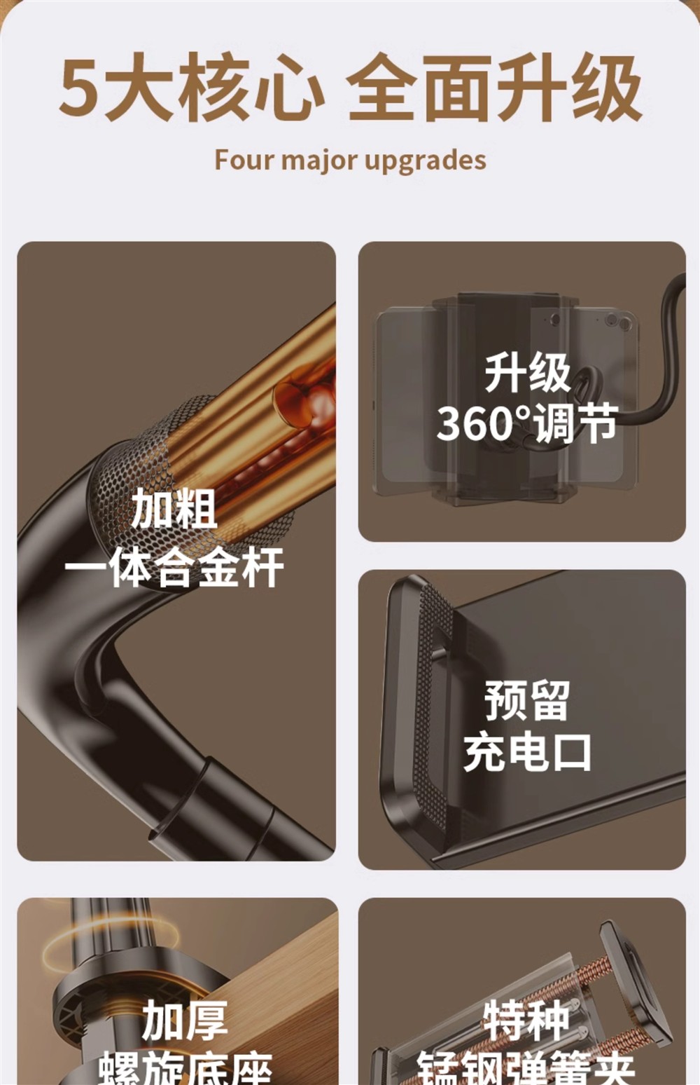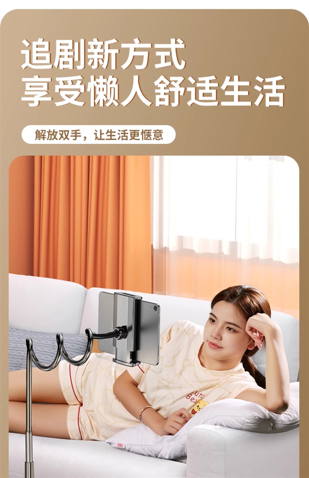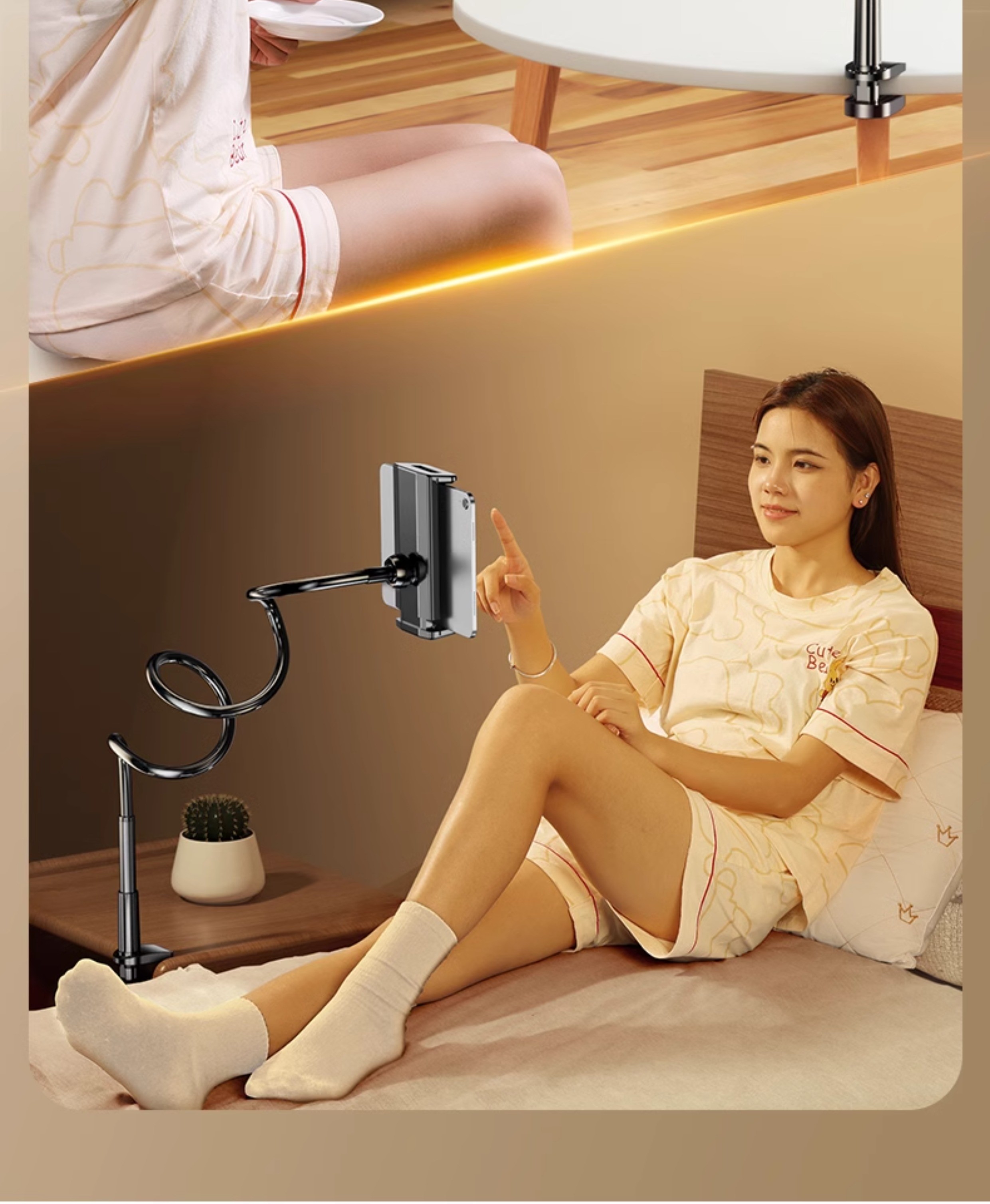 床头手机架懒人支架360度稳固不晃躺着看电视追剧神器2025新款万能通用平板支撑架桌面加长可伸缩直播夹子