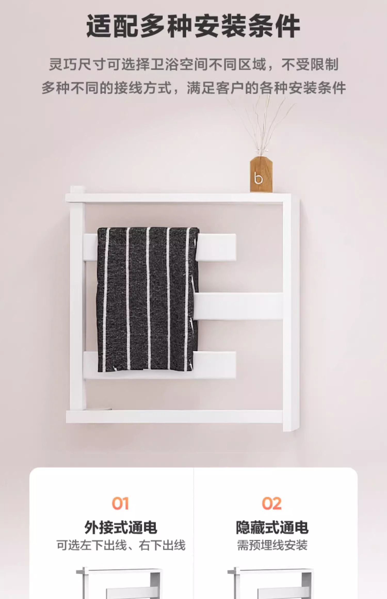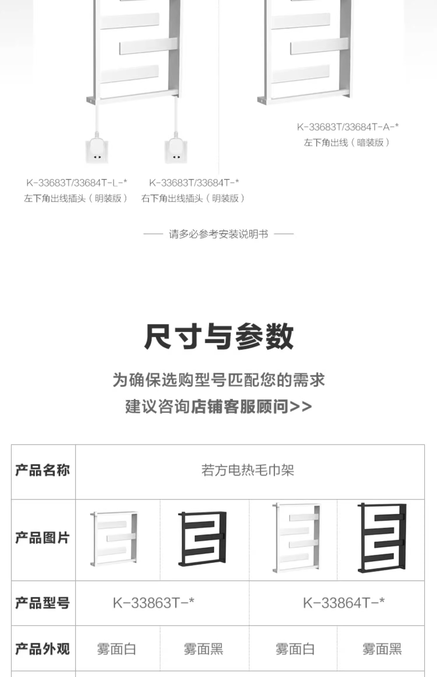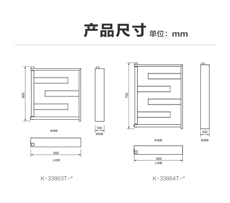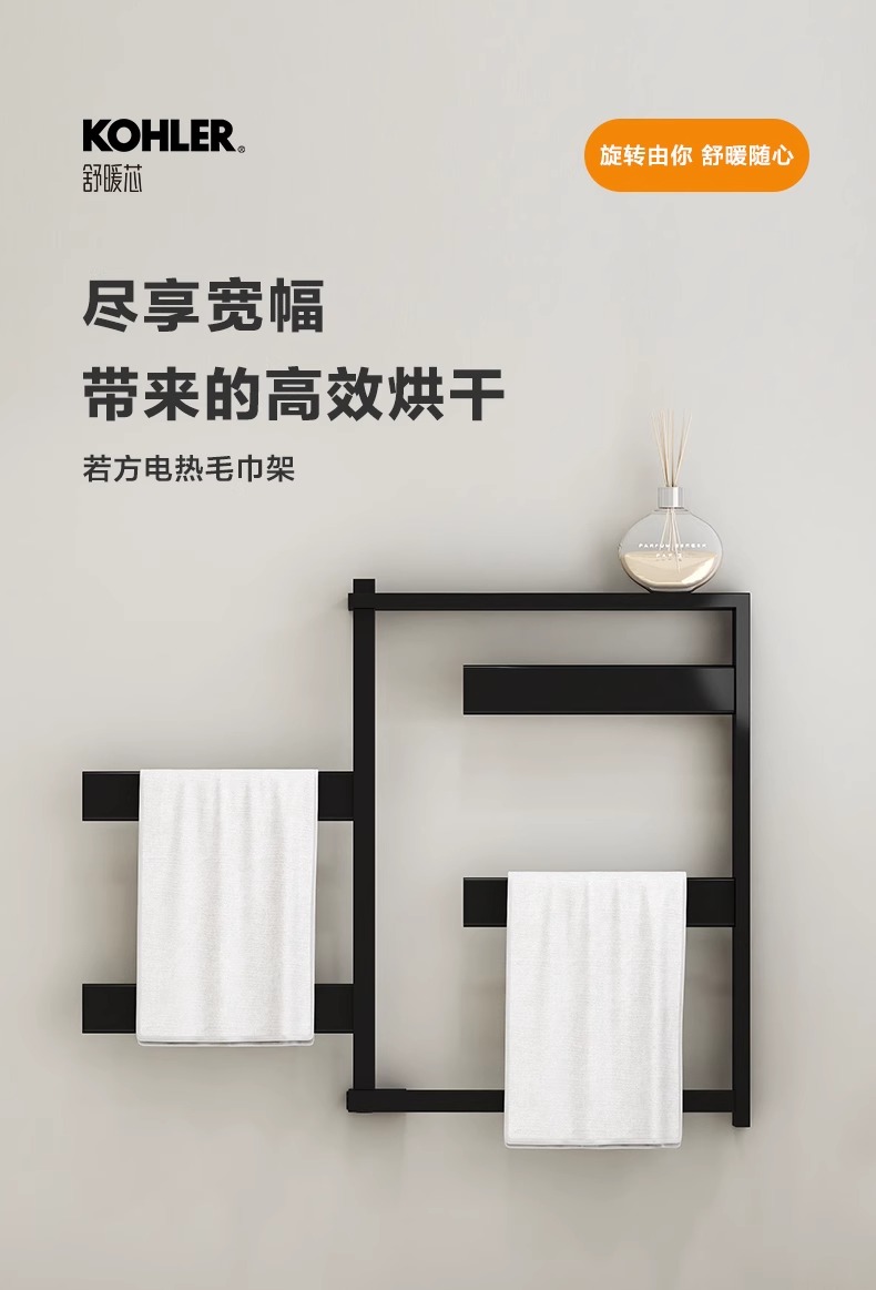 科勒电热毛巾架浴室卫生间加热烘干架可旋转不锈钢毛巾杆33864T