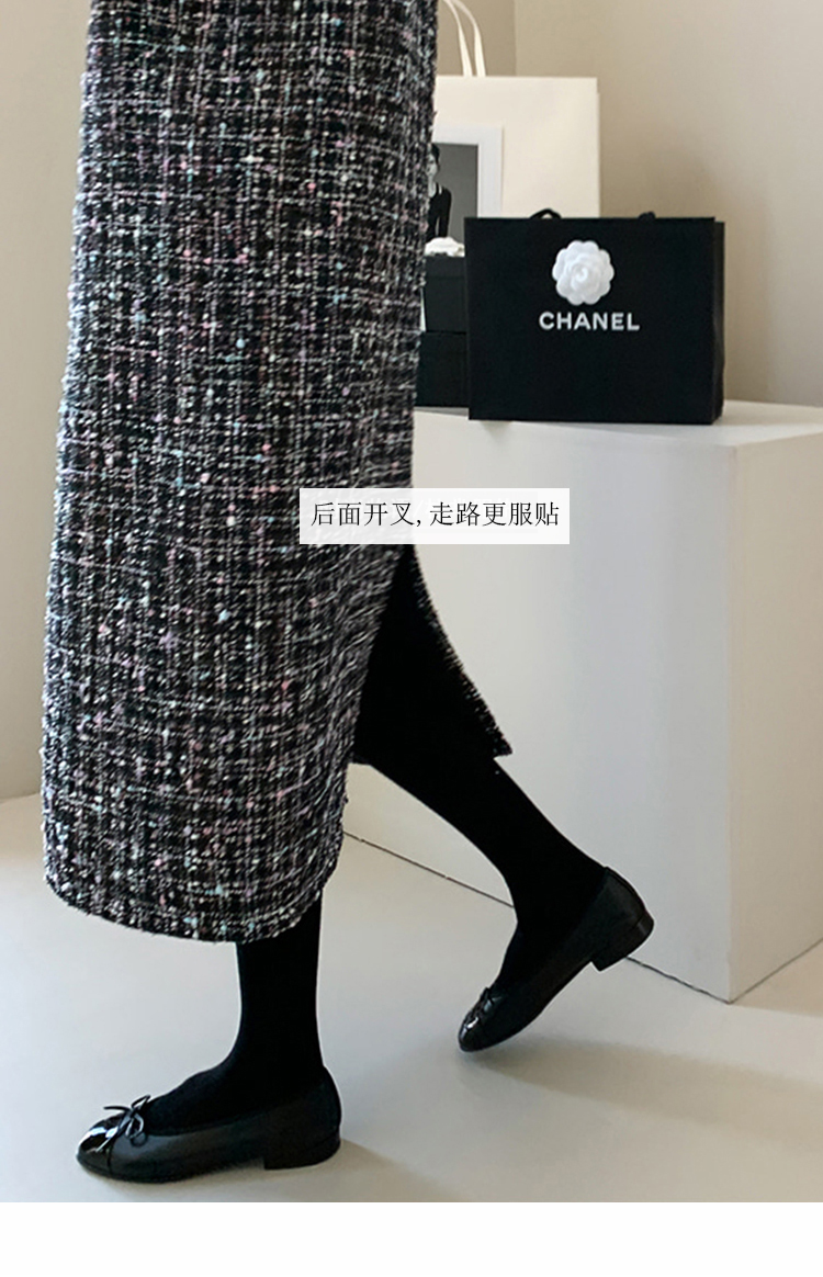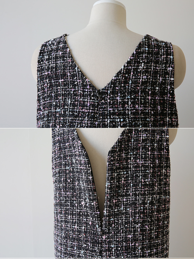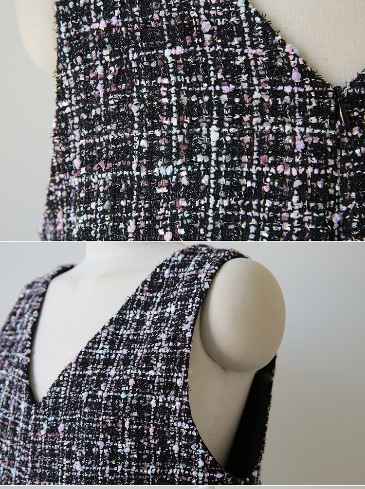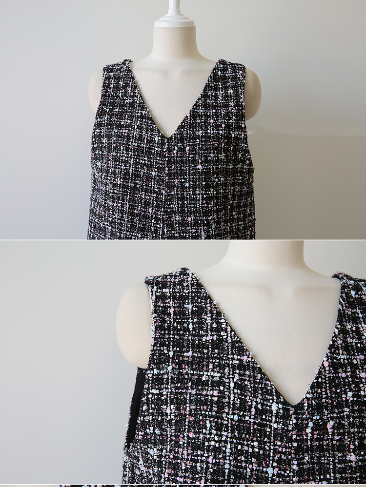 秋冬装大V领长裙小香风毛呢背心裙大码女装宽松中长款无袖连衣裙