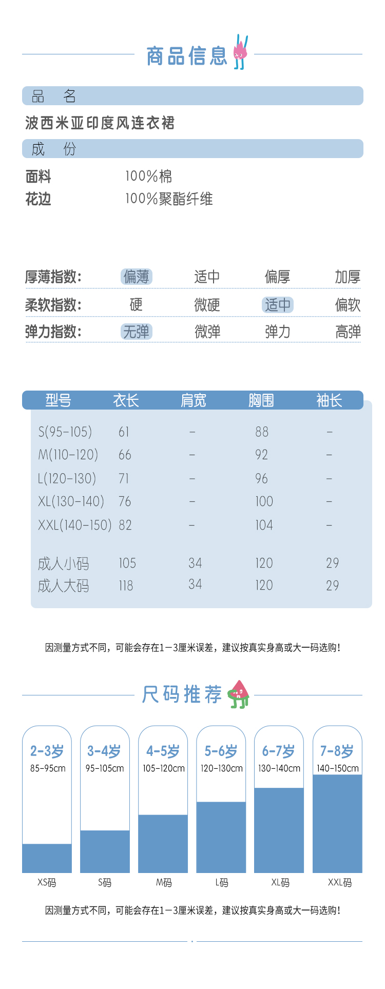 更牌童装夏季新款儿童亲子纯棉波西米亚连衣裙印度手工印刷棉布