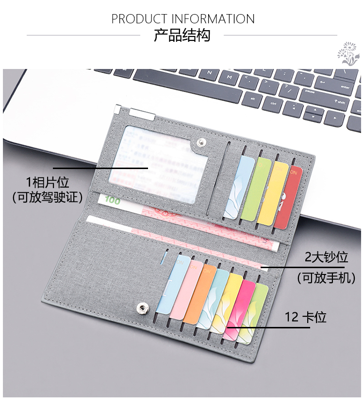 男士长款钱包超薄学生青年帆布皮夹年轻人多卡位男生钱包卡包一体