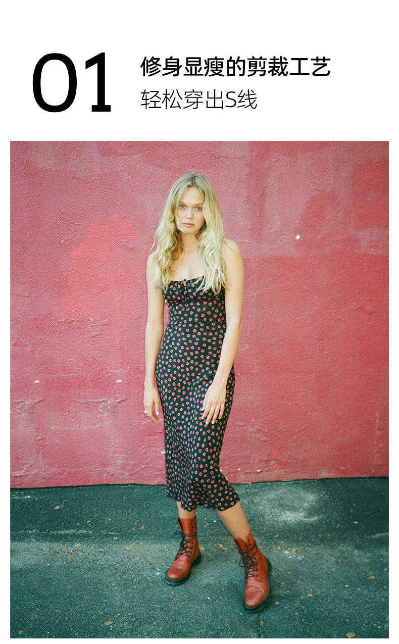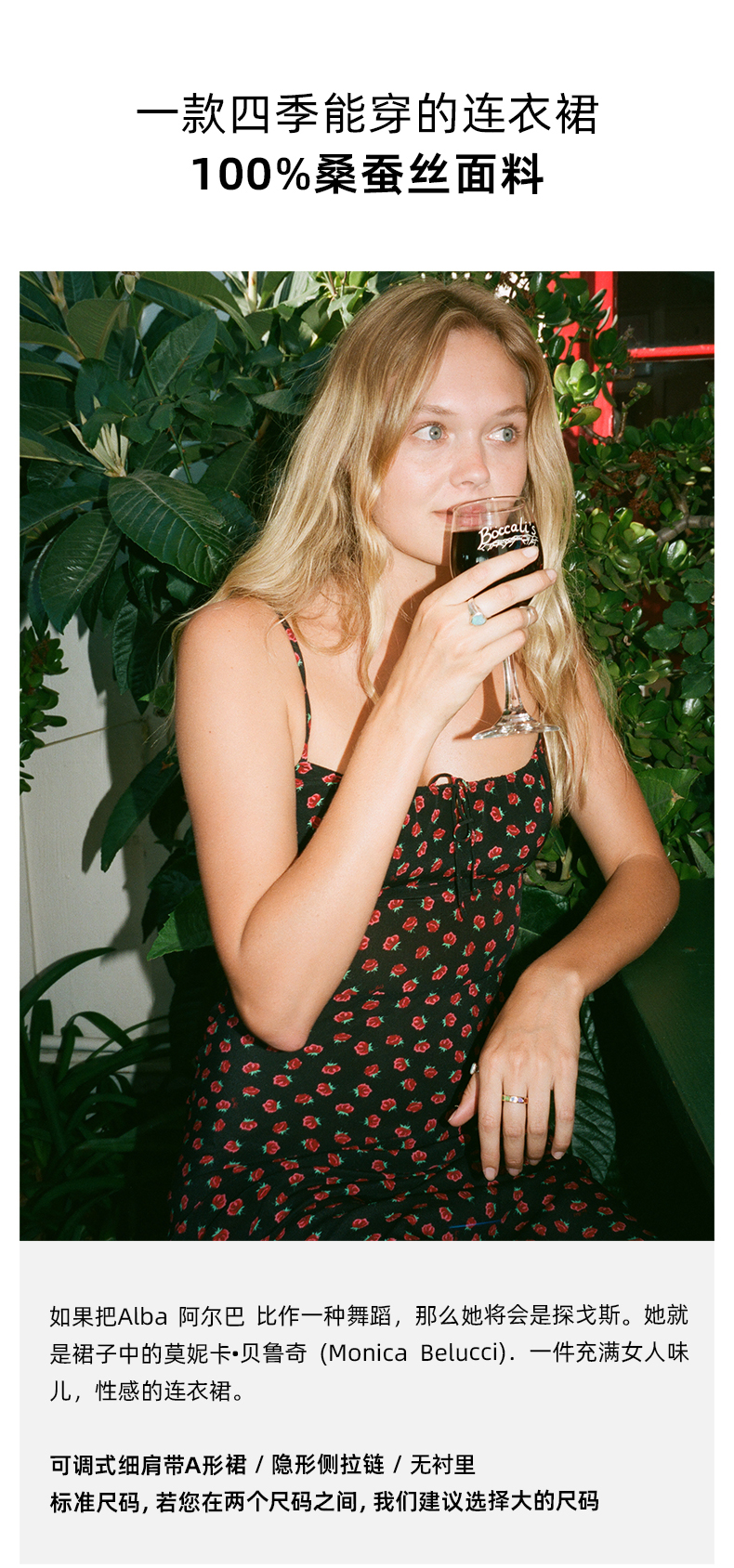RealisationPar 玫瑰碎花吊带复古真丝连衣裙The Alba