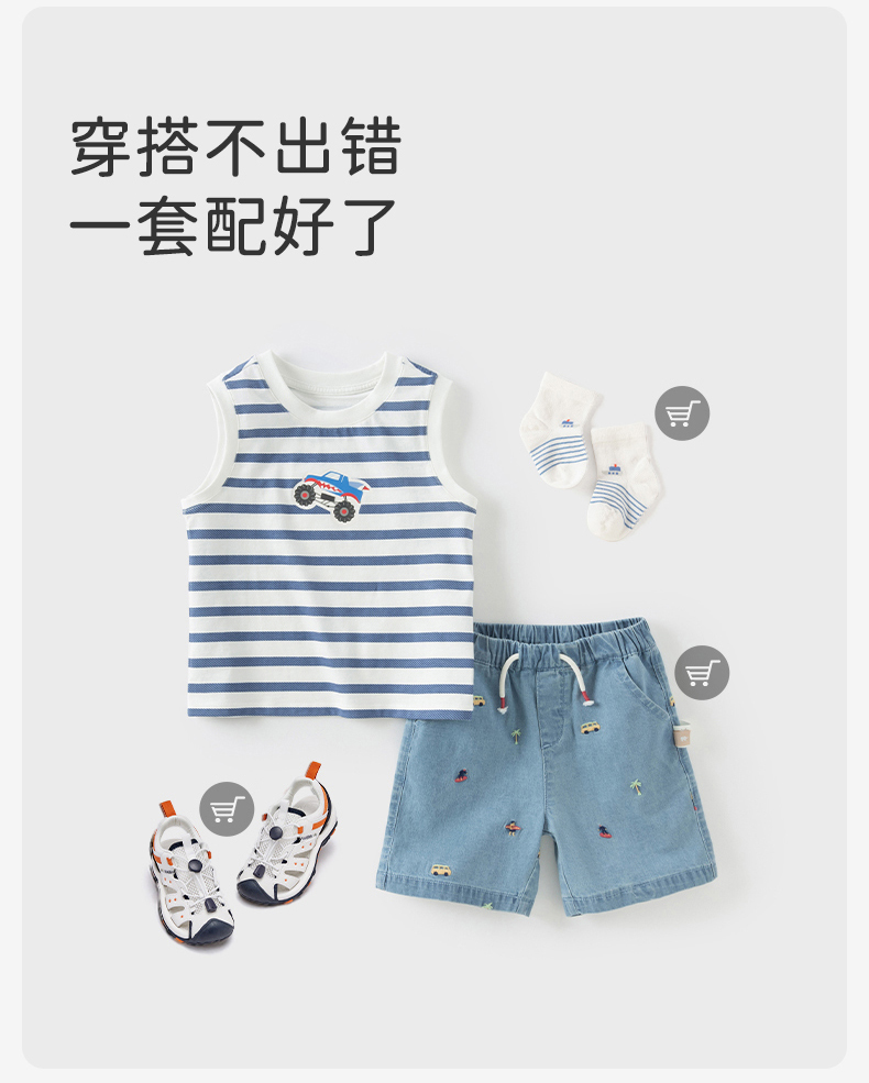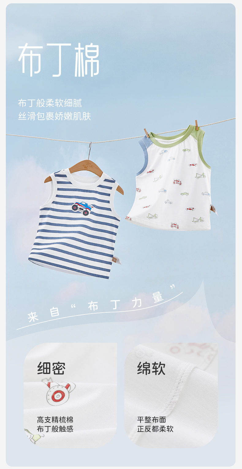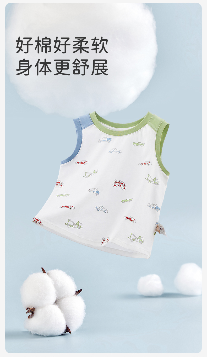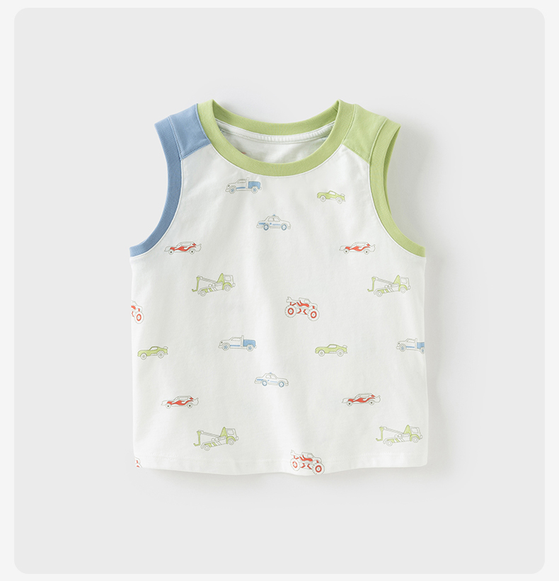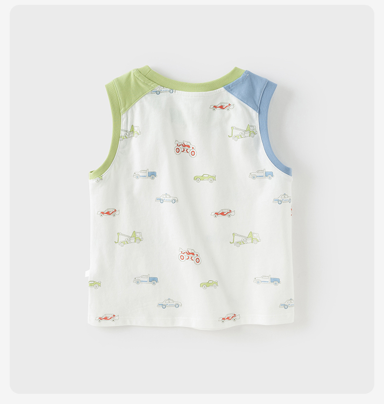 戴维贝拉男童背心2025新款夏装儿童纯棉T恤宝宝无袖打底上衣童装
