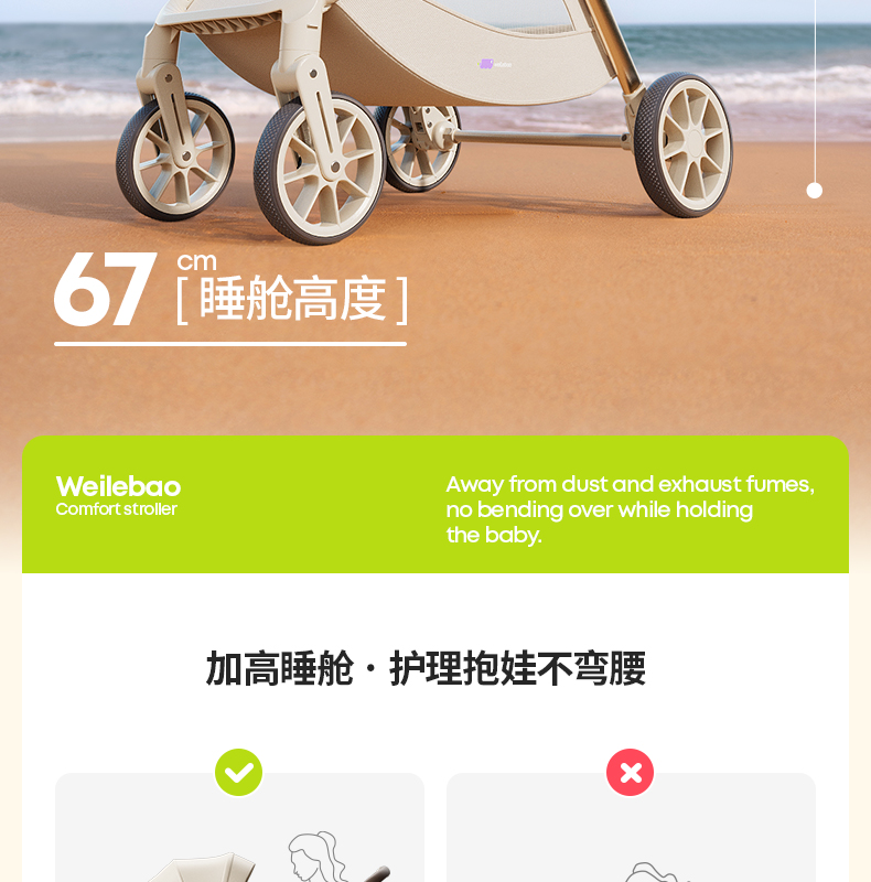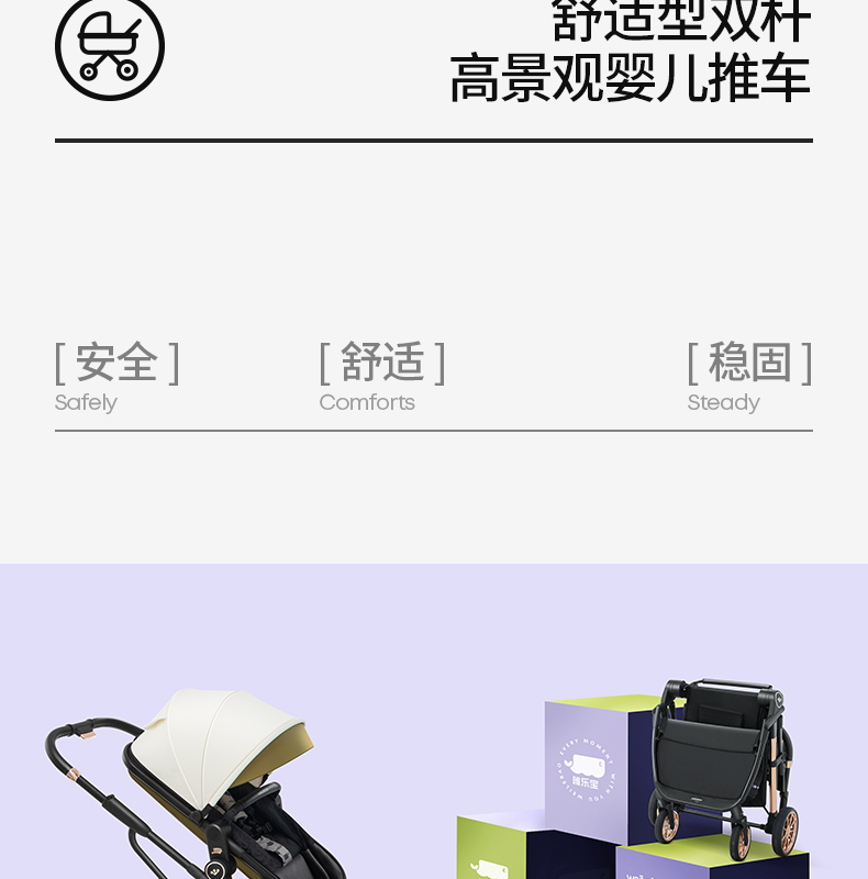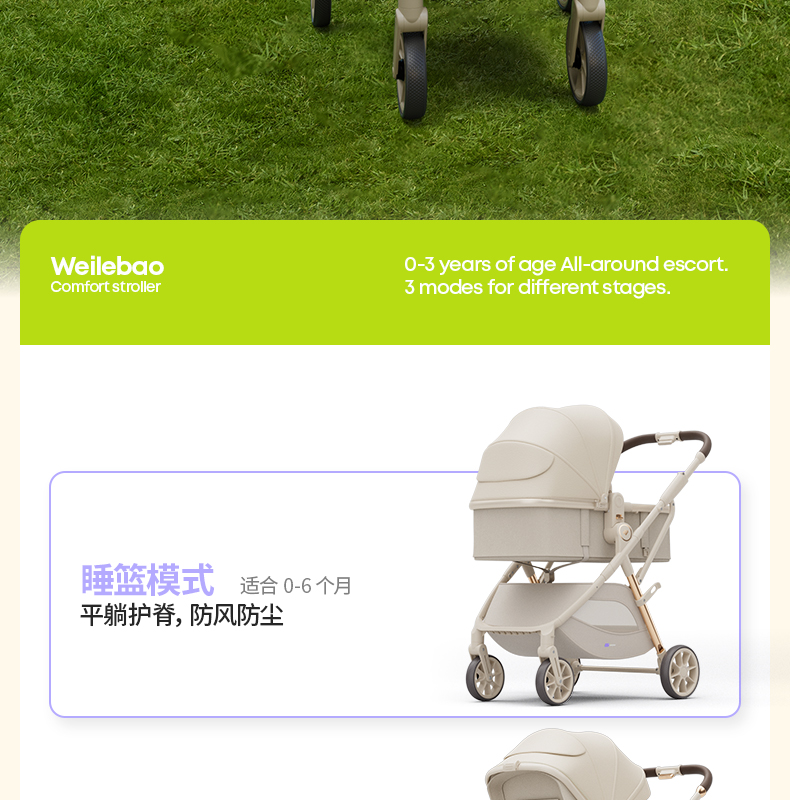 唯乐宝轻灵婴幼儿手推车高景观可坐可躺轻便护脊可折叠3到6岁宝宝