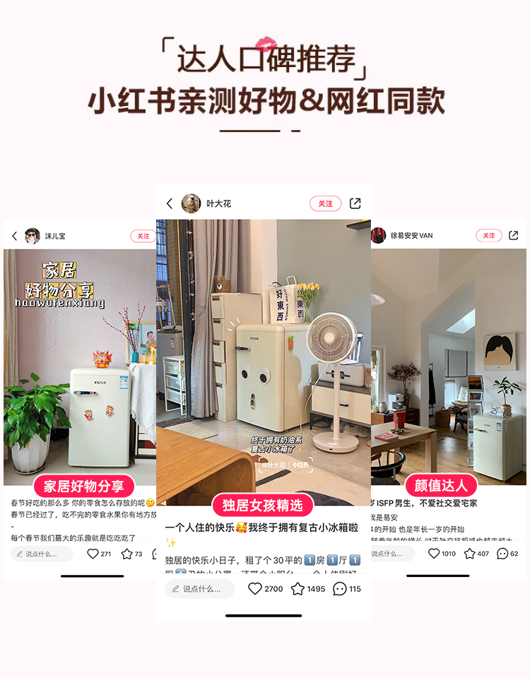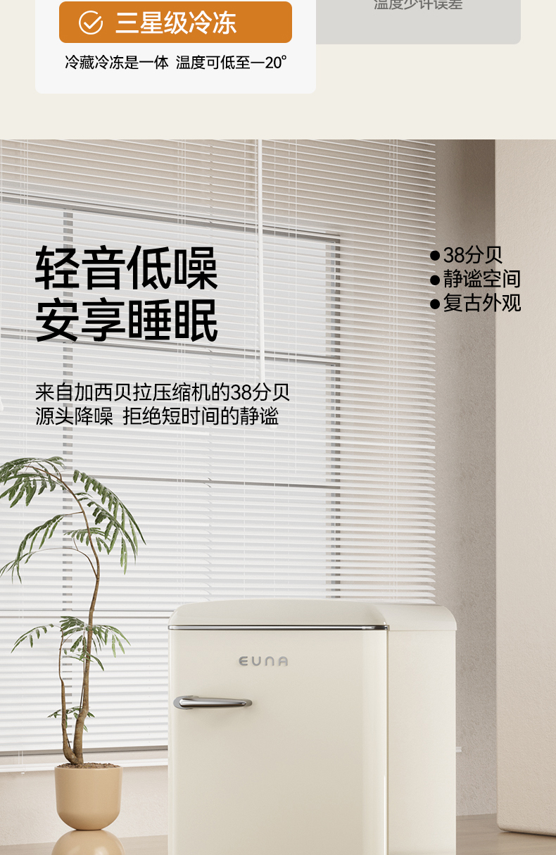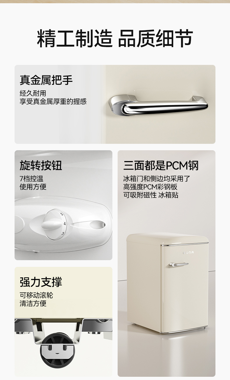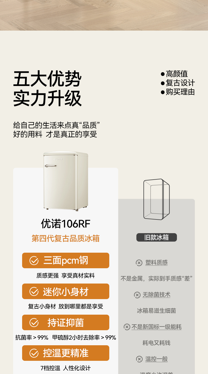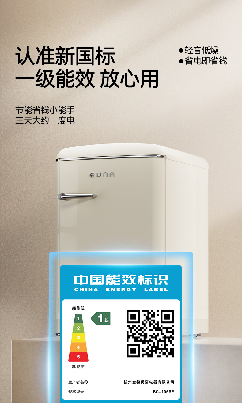 euna优诺106升迷你家用小型可爱冷藏冷冻一体高颜值复古饮料冰箱