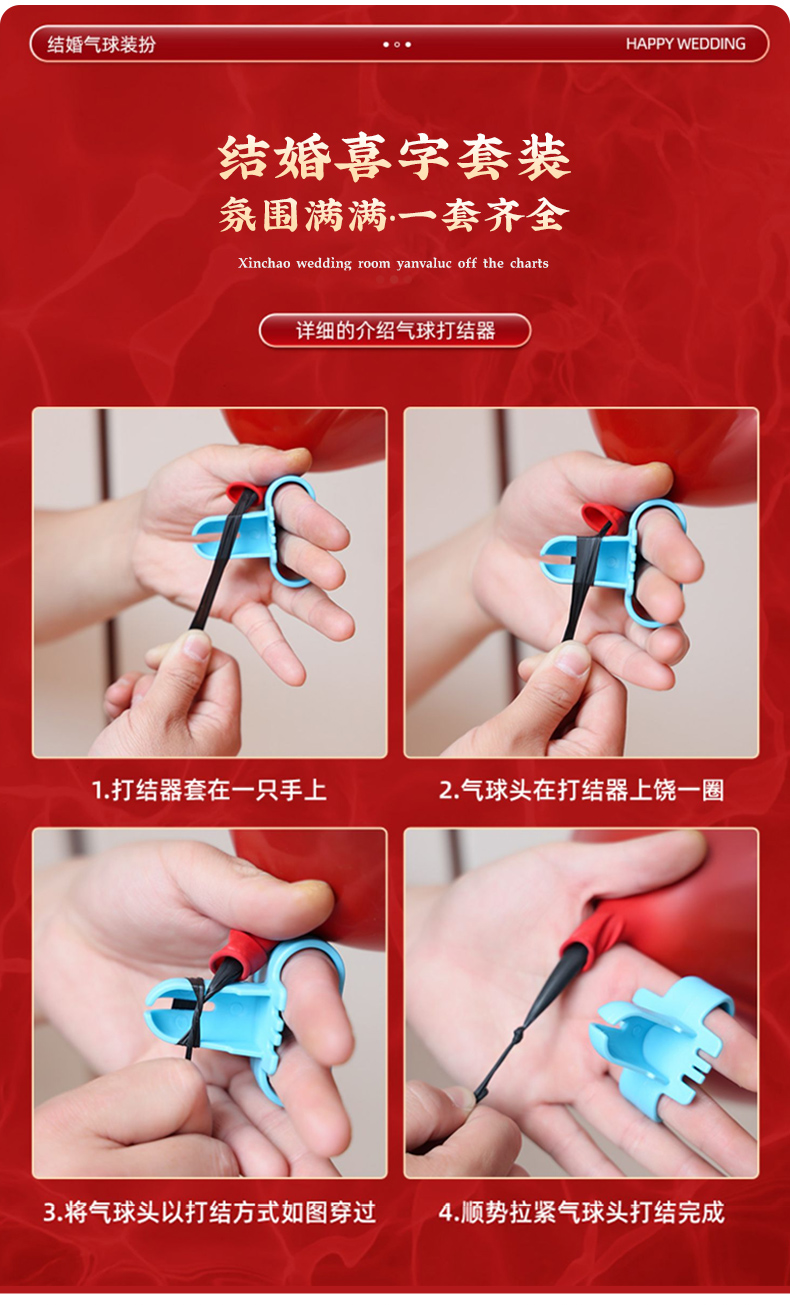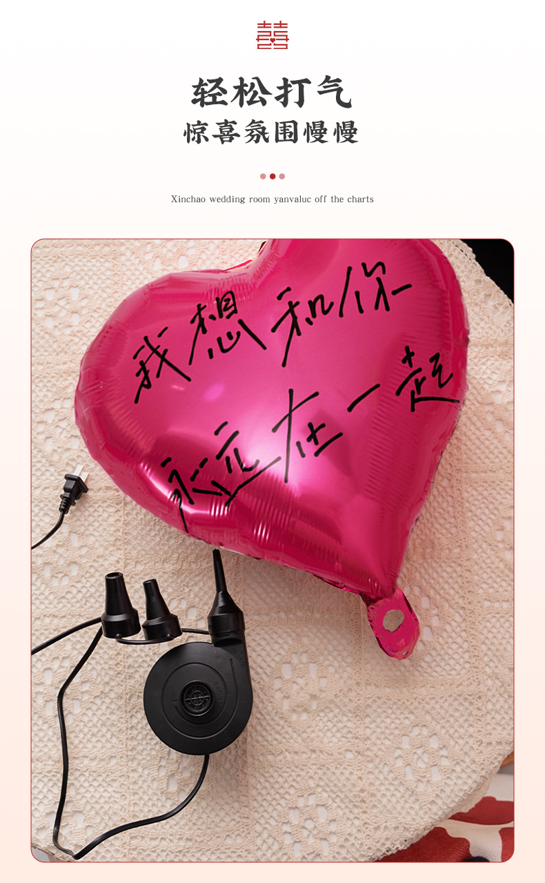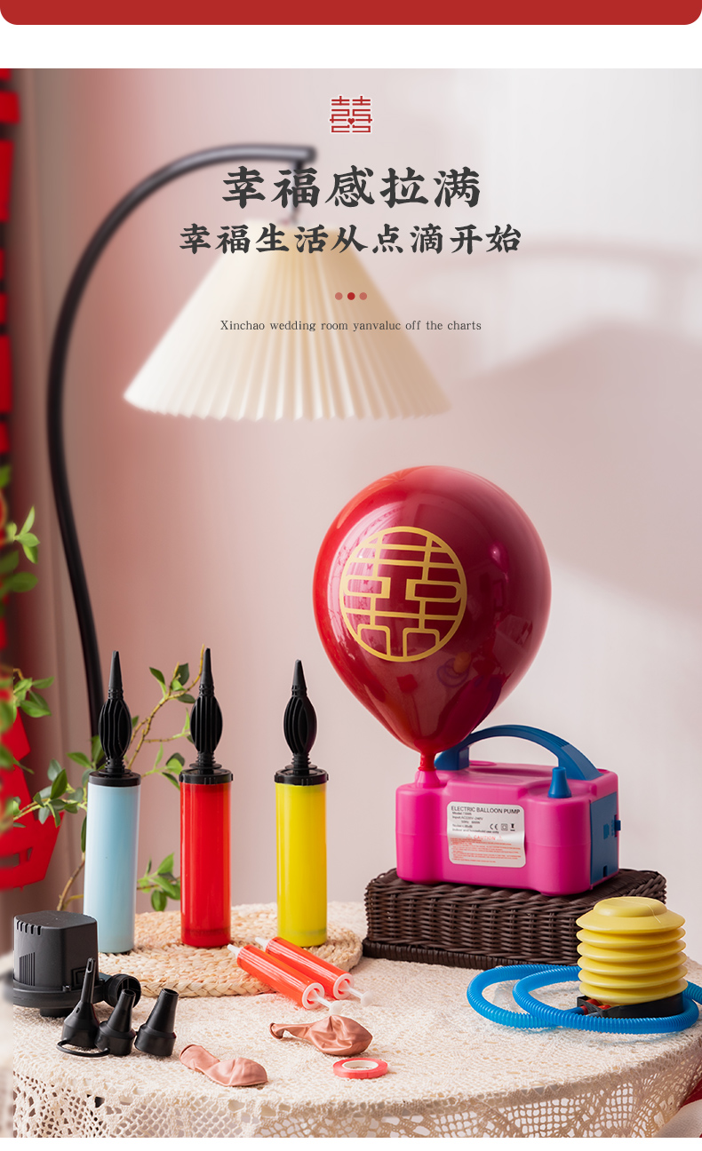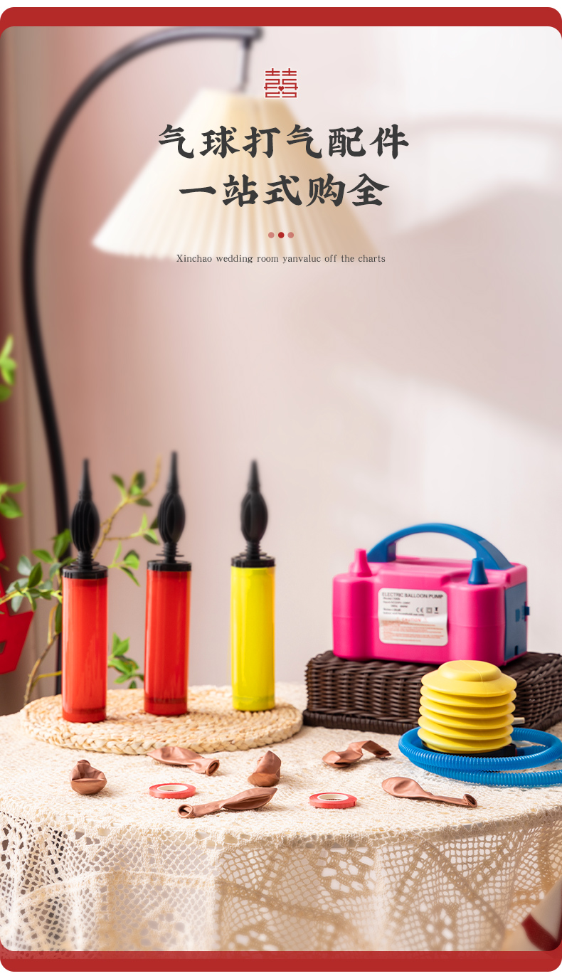 结婚布置场景装饰铝膜气球绑带打气筒电动充气机便携式心形打结器