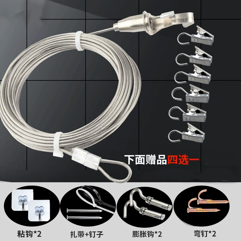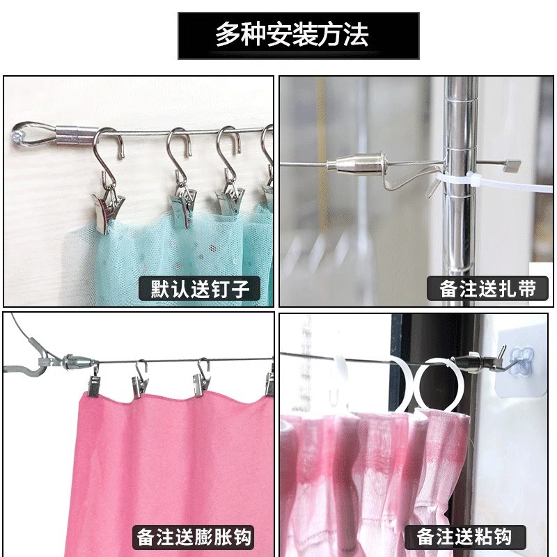 不锈钢窗帘绳子拉绳免打孔简易帘子轨道出租房挂窗帘的铁丝可伸缩