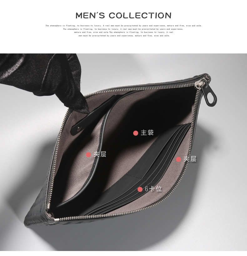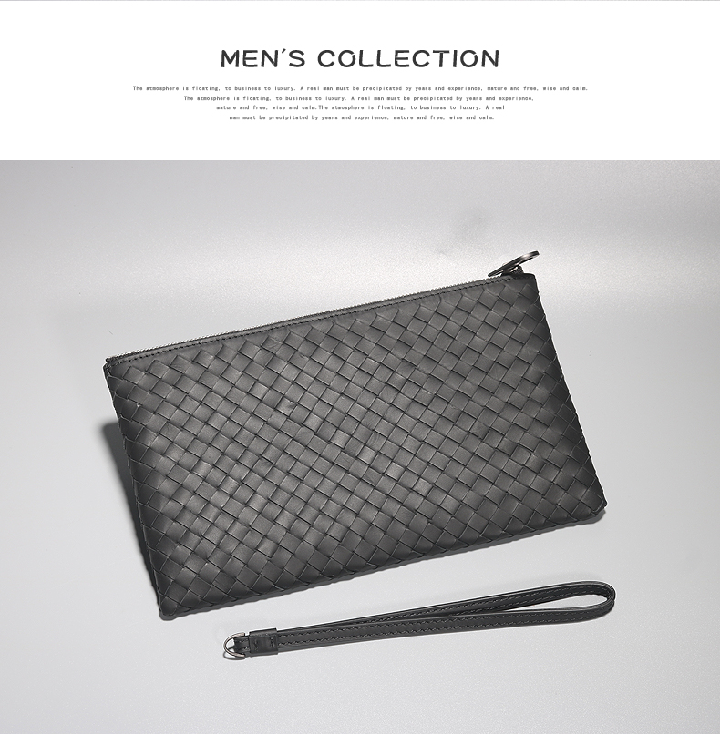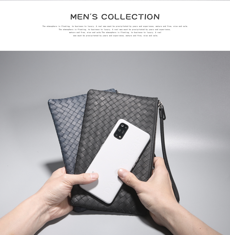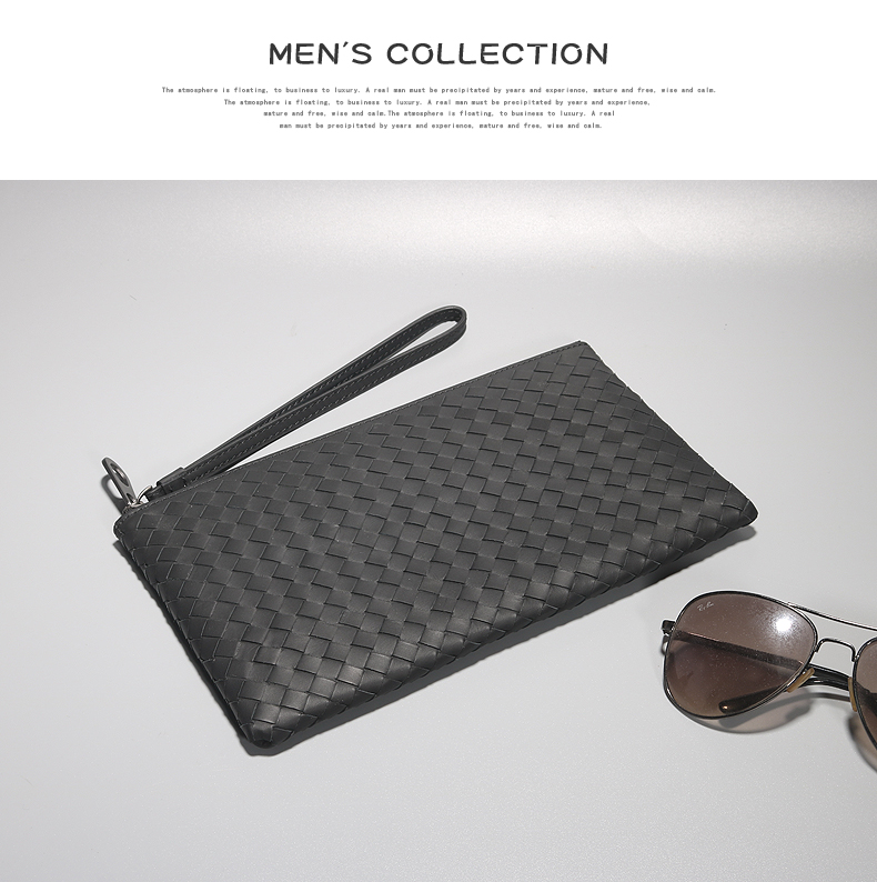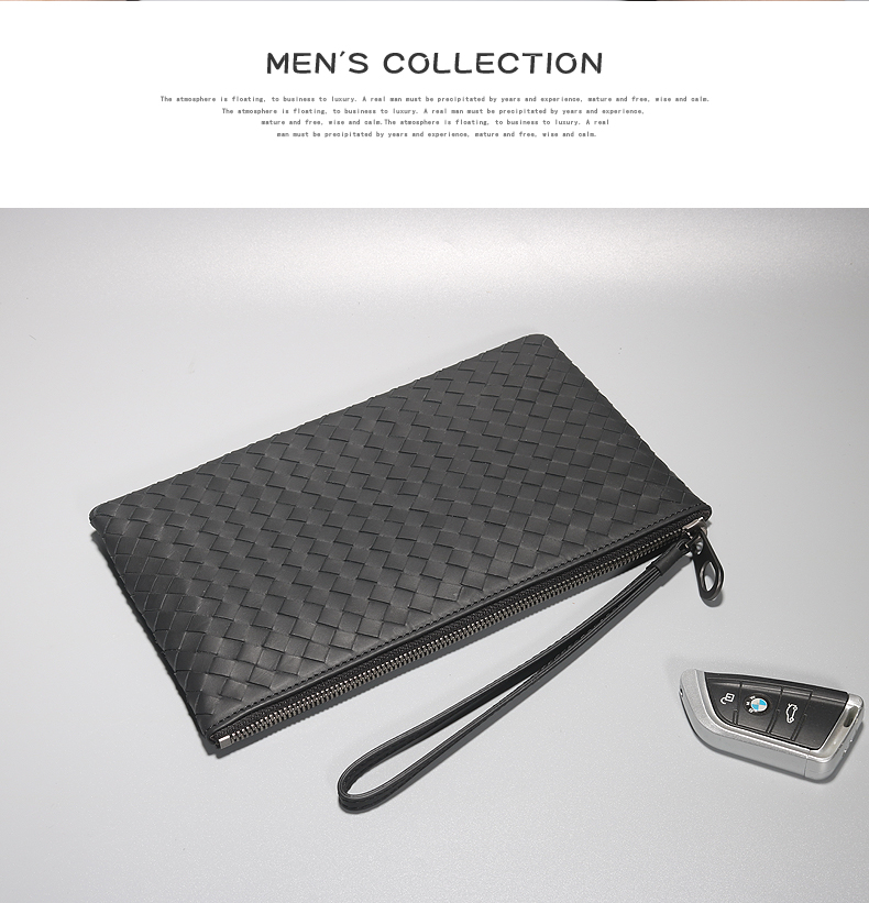 新款男士手拿包编织小手包真皮潮流信封包休闲青年手抓包时尚男包
