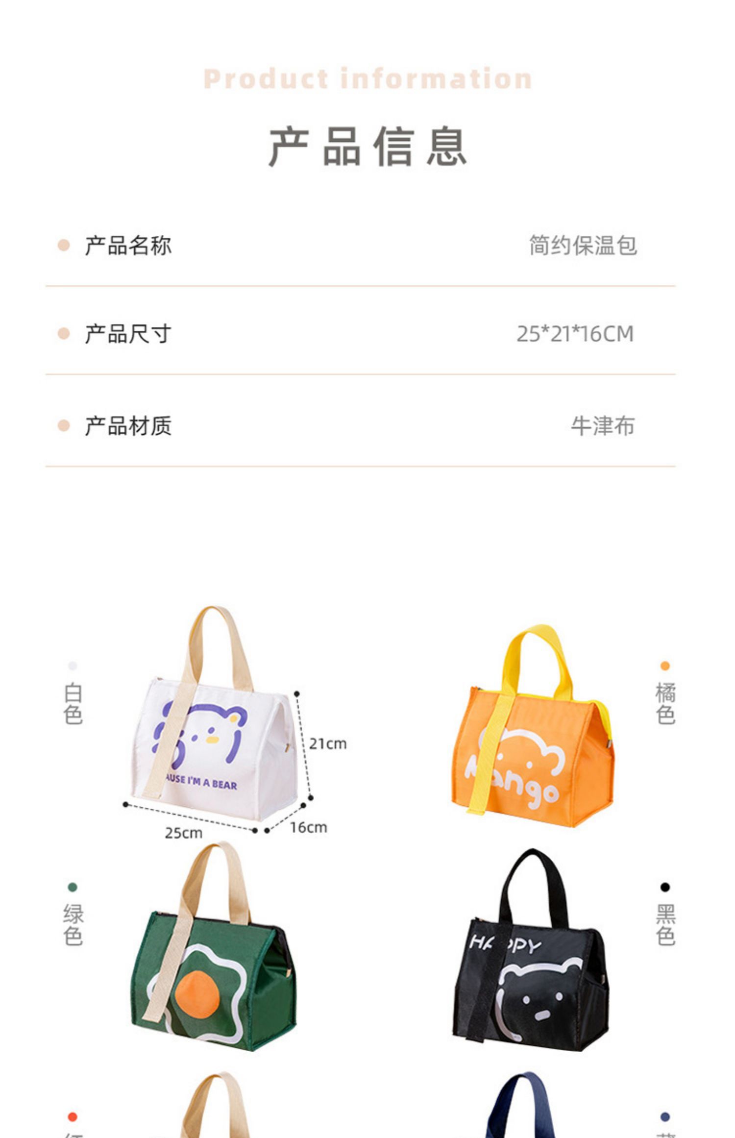饭盒袋手提便当包学生上班族带饭长织带加厚铝箔防水保温包午餐包