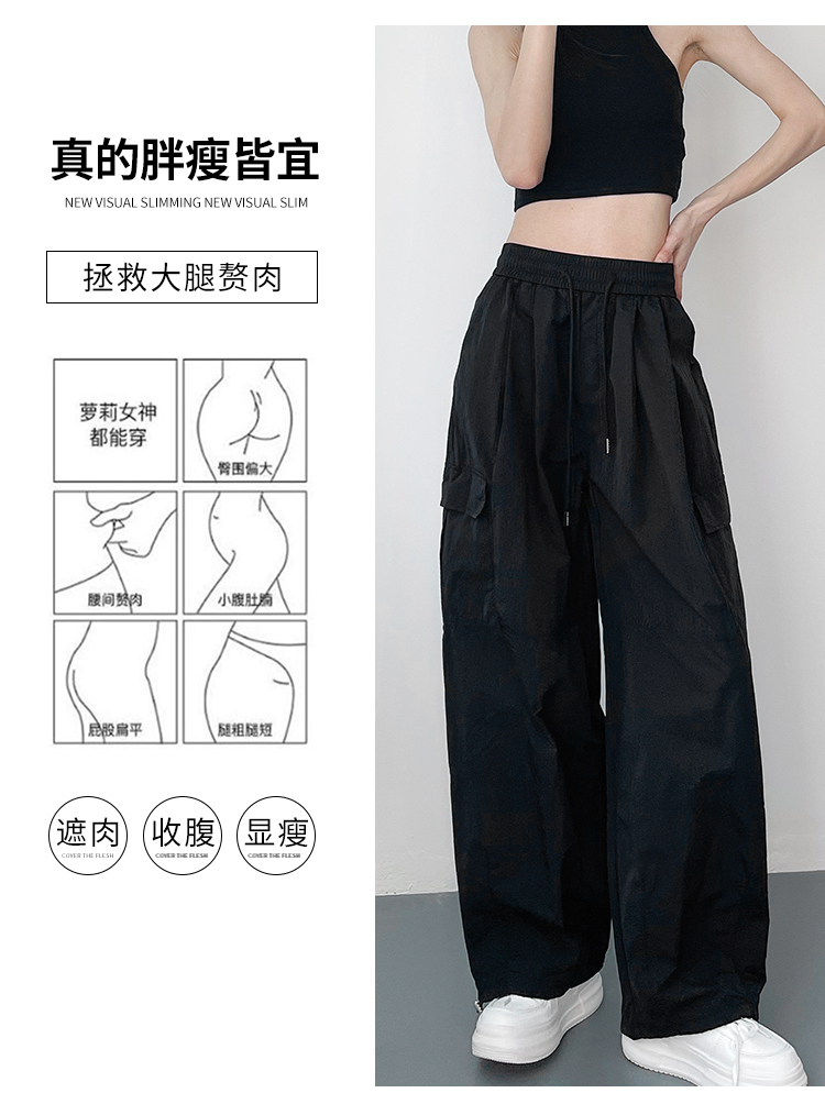 薄款工装阔腿裤女夏季大码胖mm宽松显瘦冰丝速干休闲裤运动直筒裤