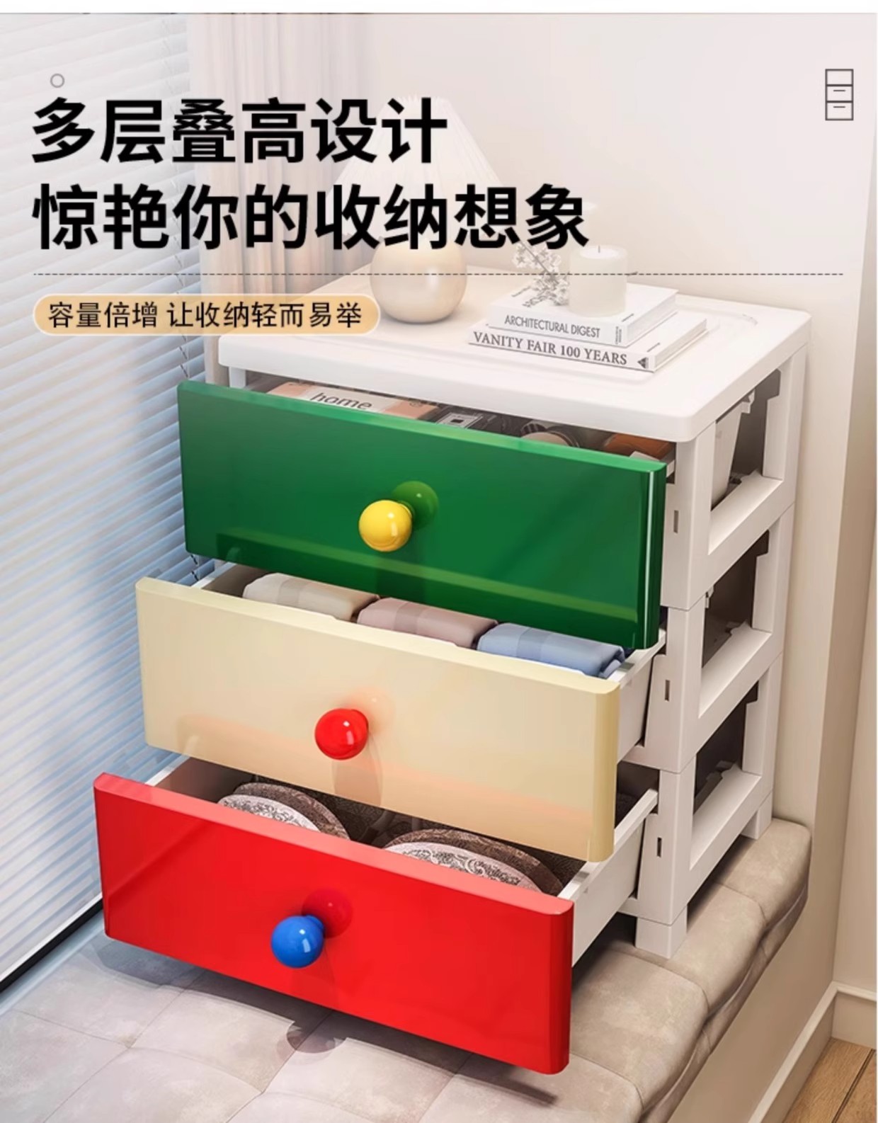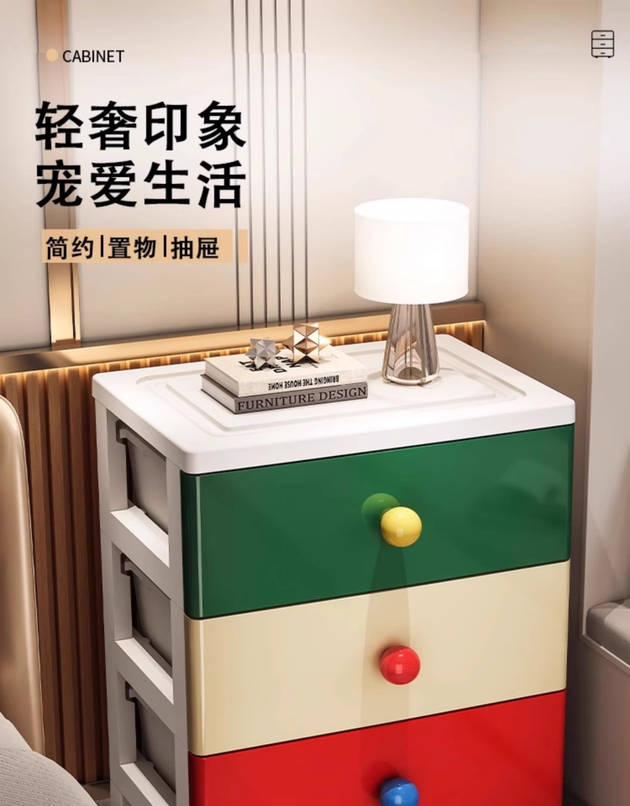 收纳柜抽屉式家用置物柜客厅窄缝柜儿童玩具储物柜卧室床头柜AD3
