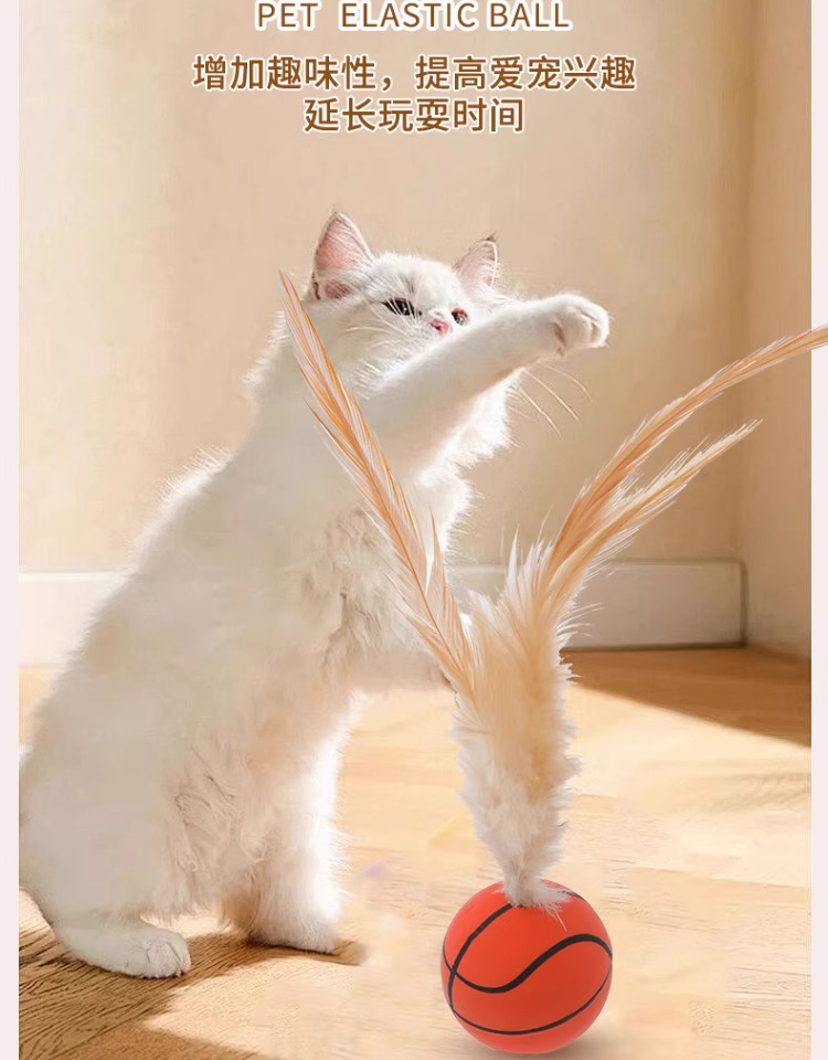 猫玩具弹力球自嗨解闷神器逗猫棒新款运动球带羽毛猫消耗体力用品