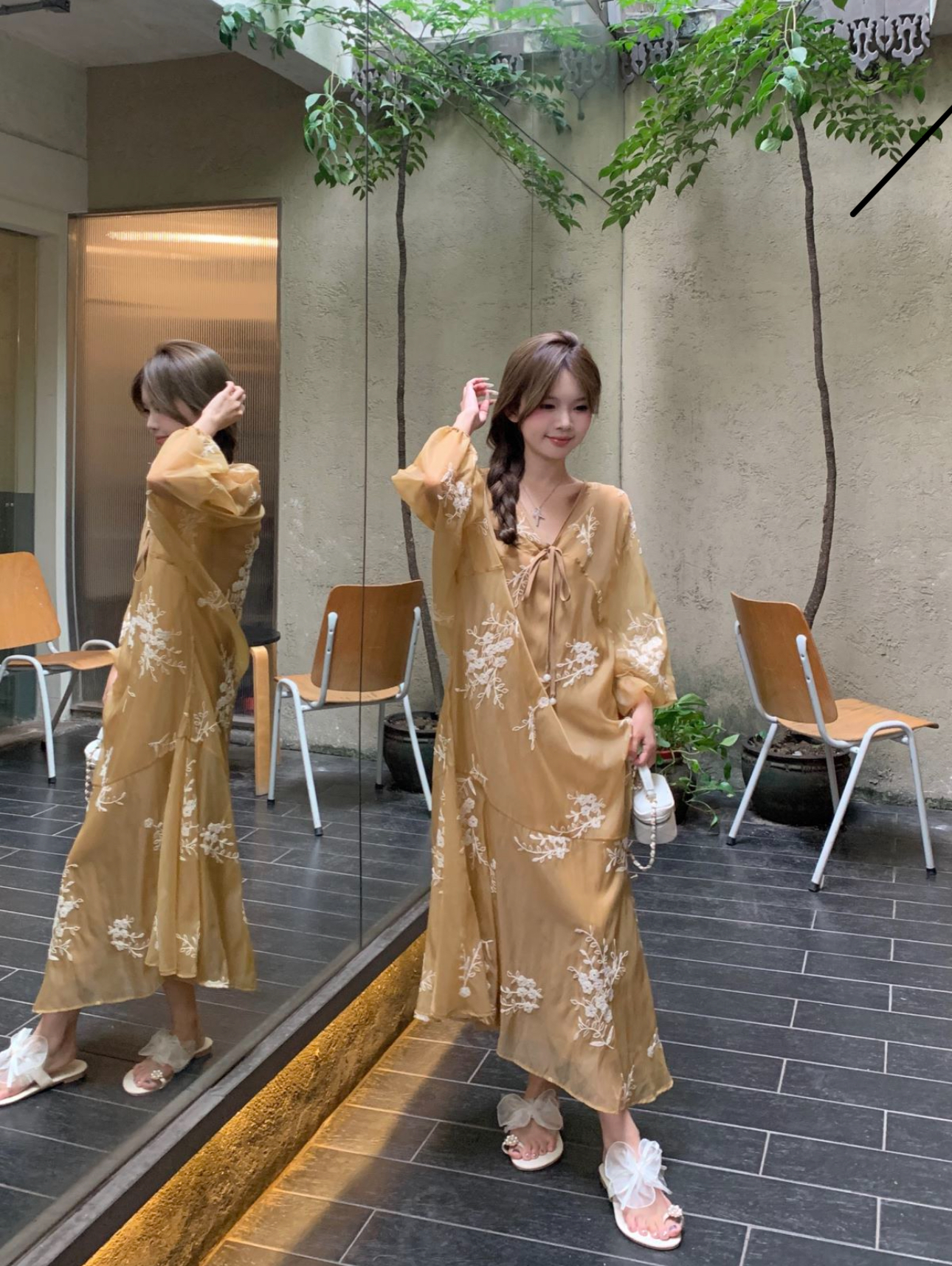 新中式孕妇连衣裙2025新款春夏装复古国风刺绣v领连衣裙百搭长裙