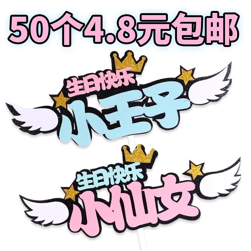 烘焙蛋糕装饰插件生日快乐小公主小王子男神女神兔耳朵萝卜插牌