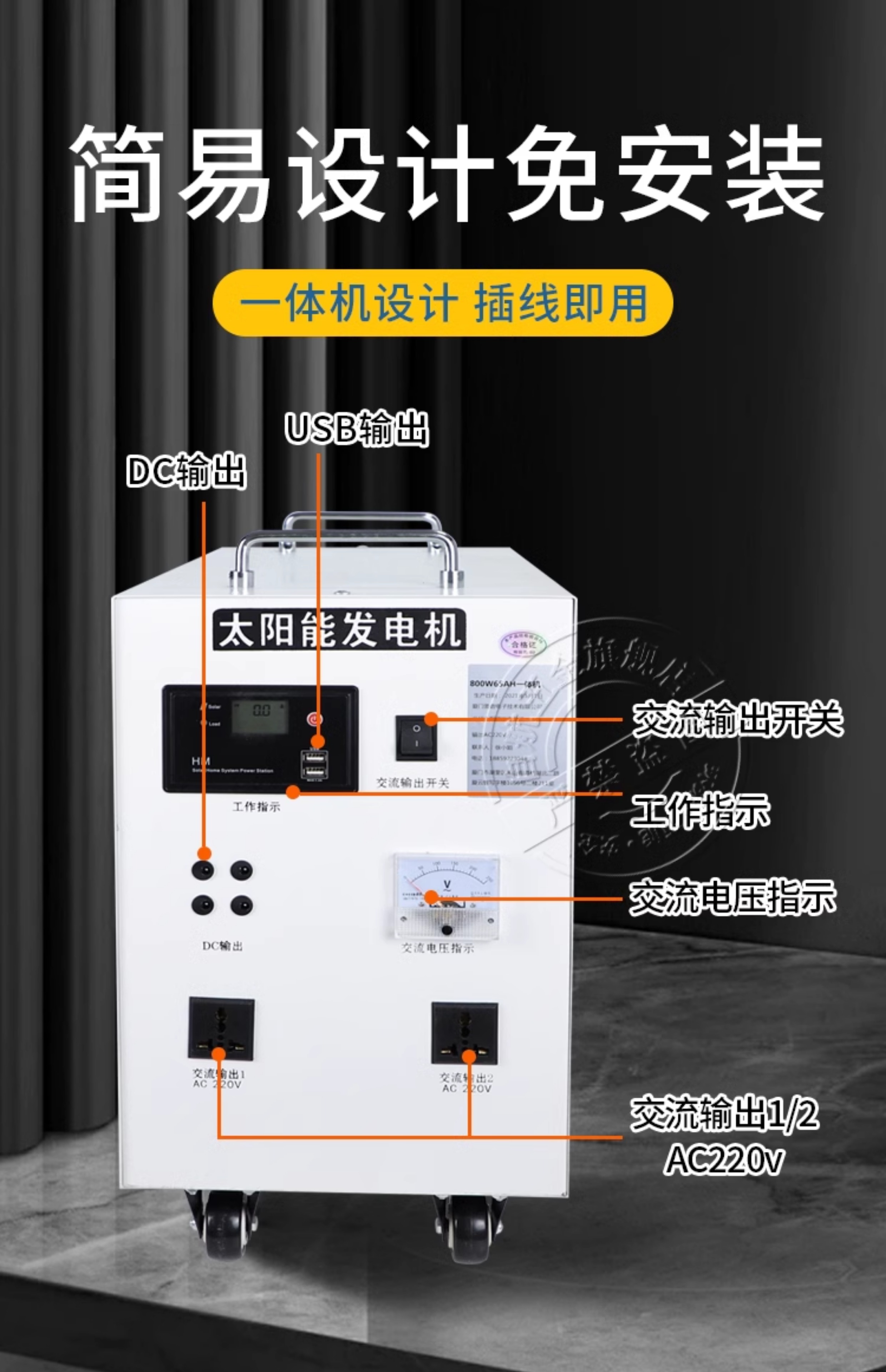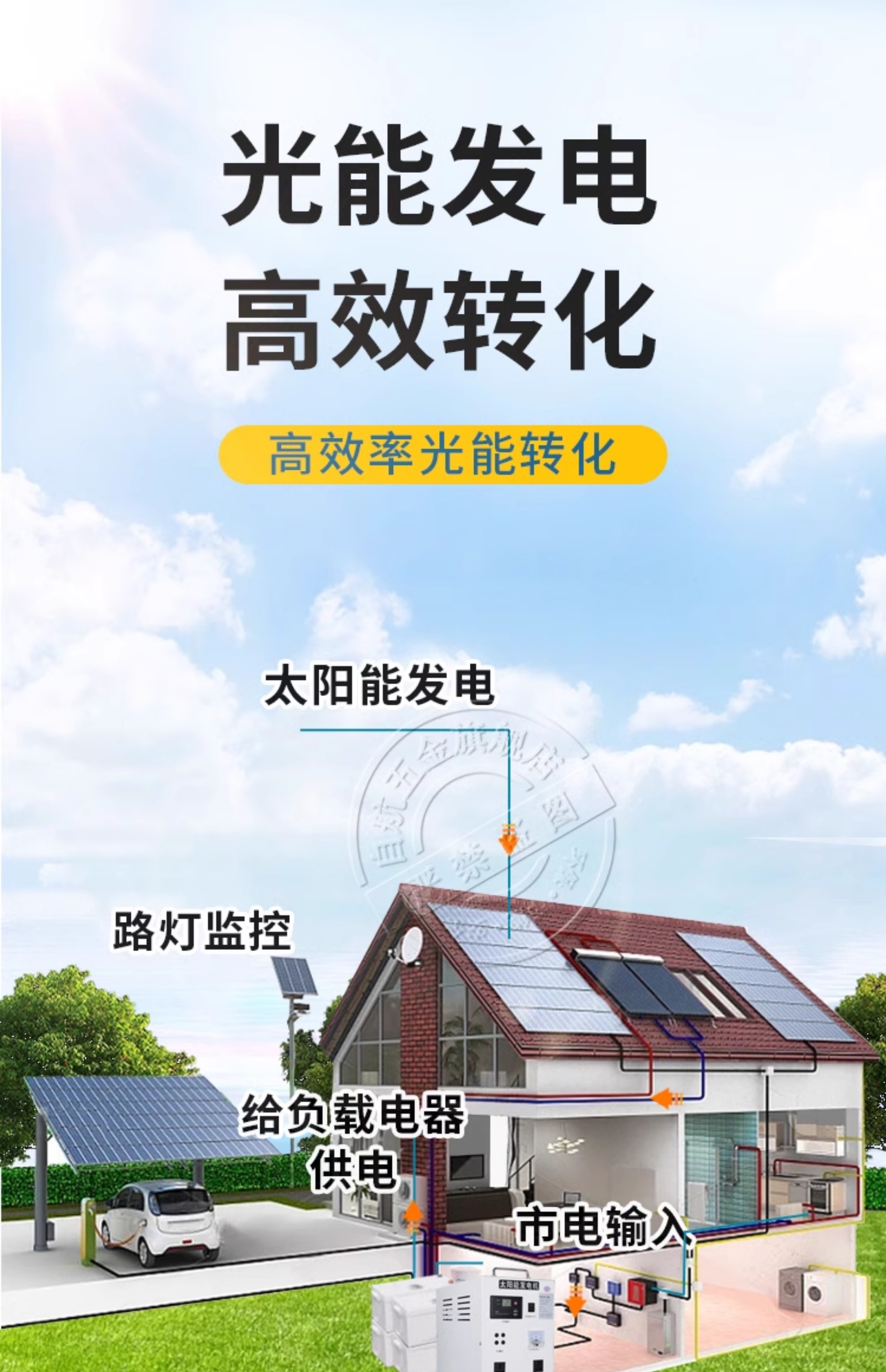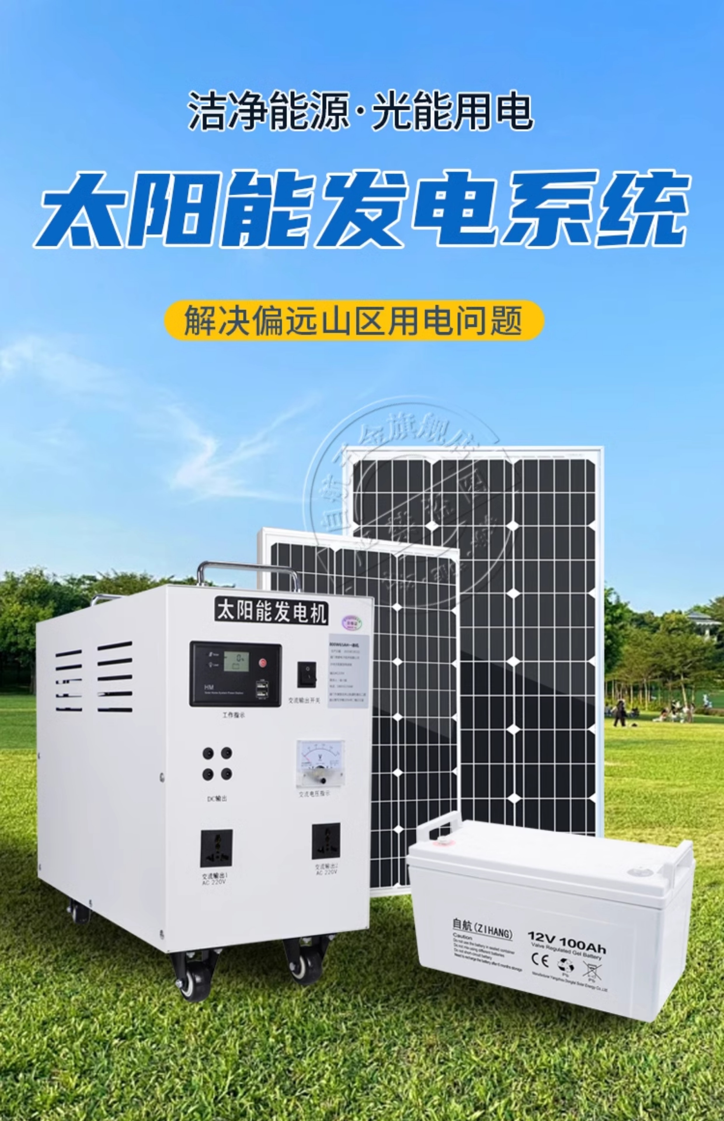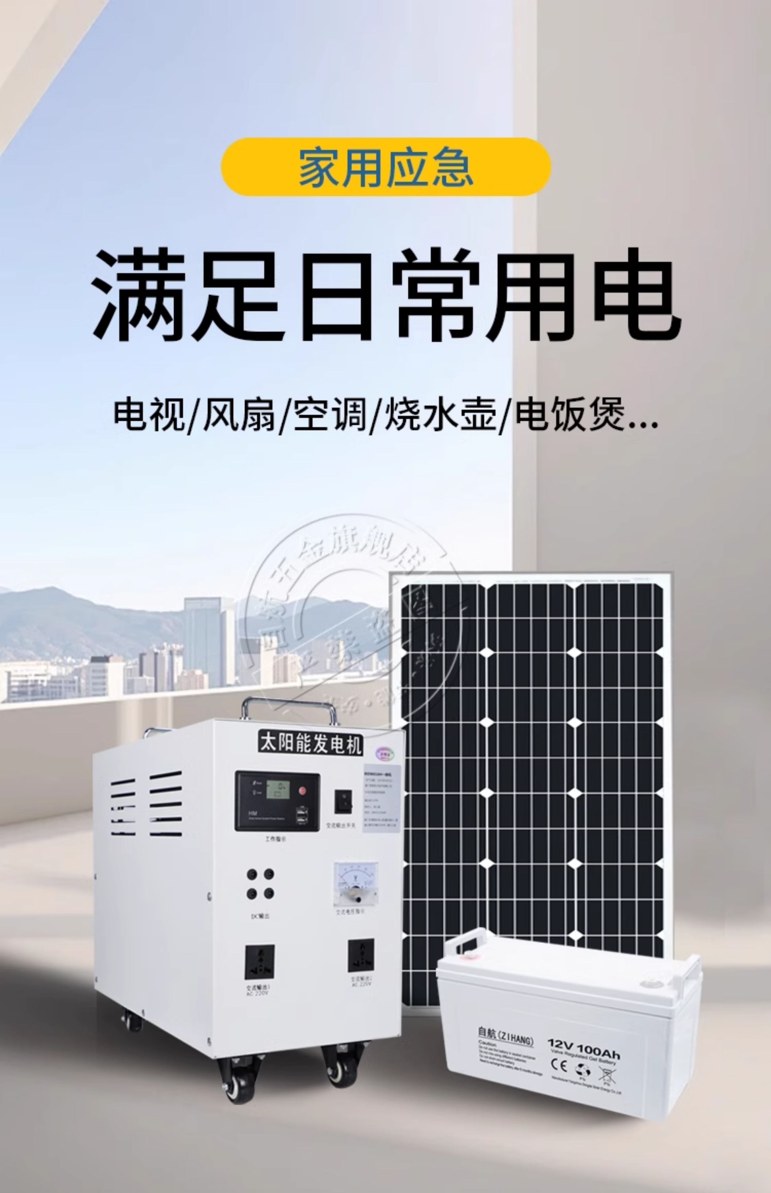 自航太阳能发电系统家用220v电池板光伏板全套大功率发电机一体机