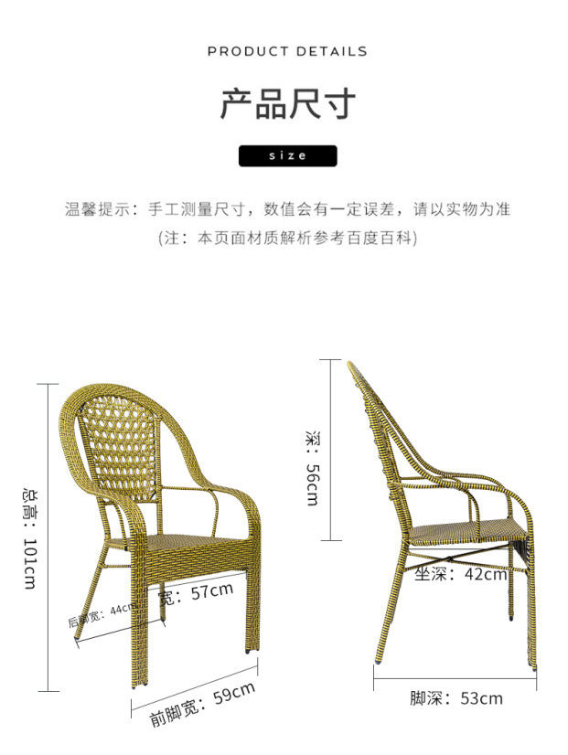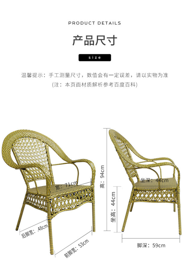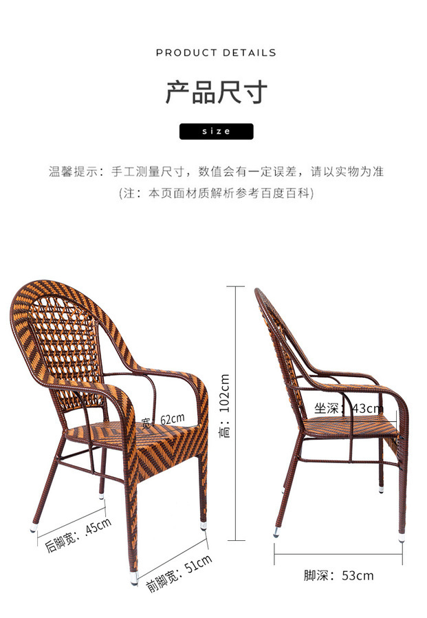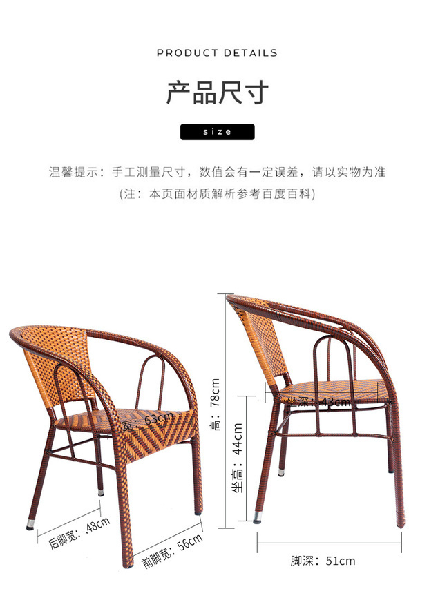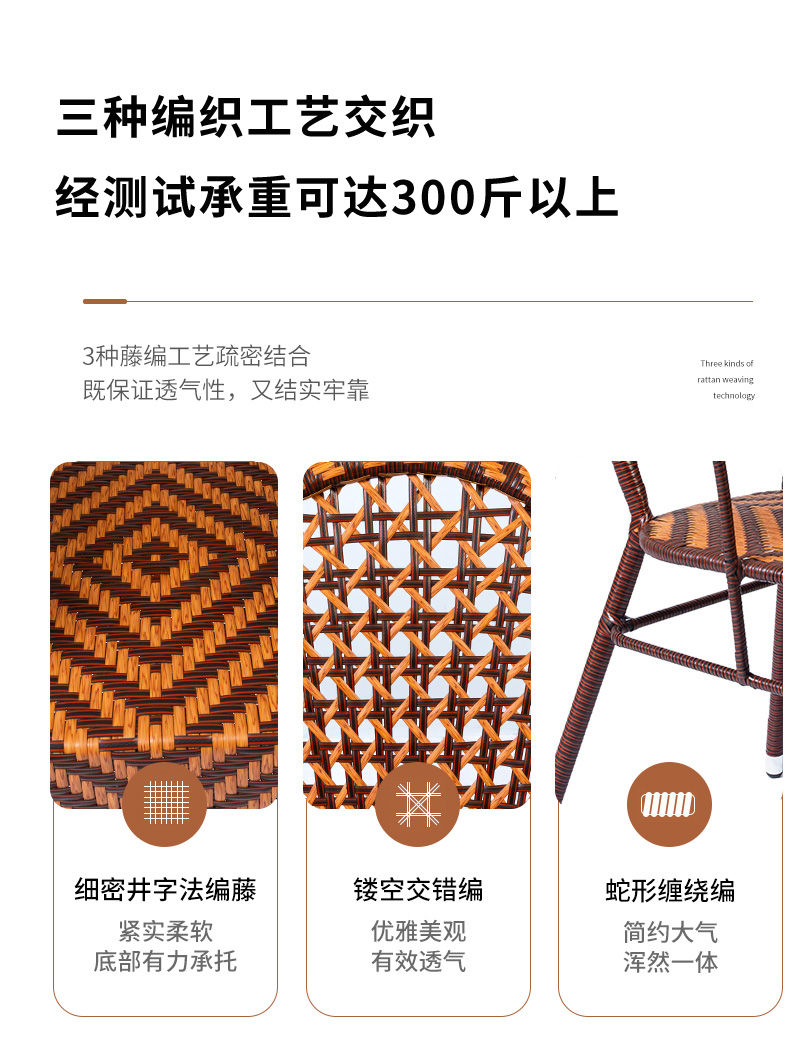 藤椅靠背椅铁艺藤椅子单人成人家用编织滕椅阳台户外椅子室外腾椅